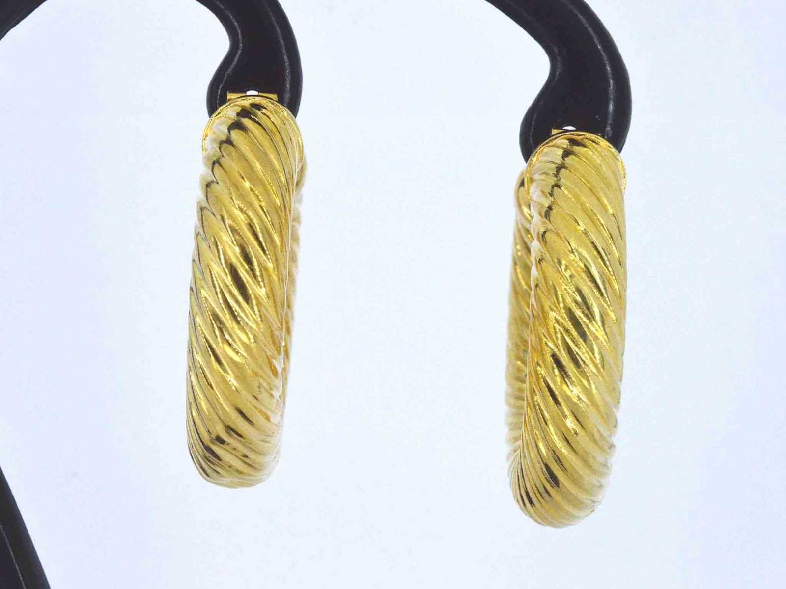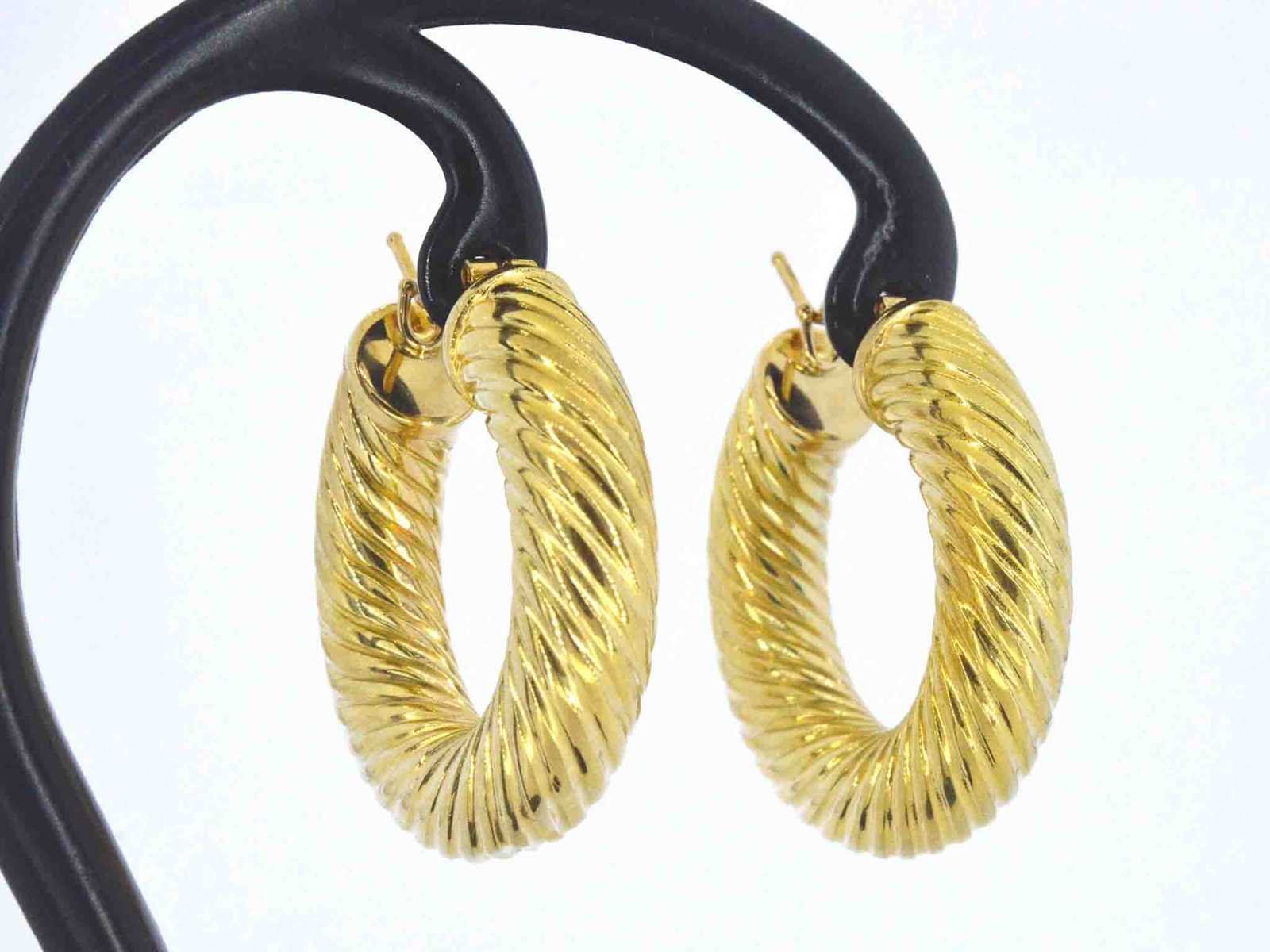 Samenvatting van gegevens Gouden oorbellen Juweel: Oorbellen; Gewicht: 12.1 gram; Afmetingen/lengte: 3.5 cm (diameter); Materiaal: 18K goud (750); Conditie: Zo goed als nieuw; Verpakking: Luxe sieradendoos; Toelichting: De kwaliteit is overgenomen van het rapport behorend bij item. De waardebepaling is een beoordeling van een gecertificeerde diamantair, gebaseerd op consumentenprijzen.; Consumentenprijs: € 7.875,- Within 14 days Materiaal: Goud Totaal gewicht: 12.1g Keurmerk: 750
