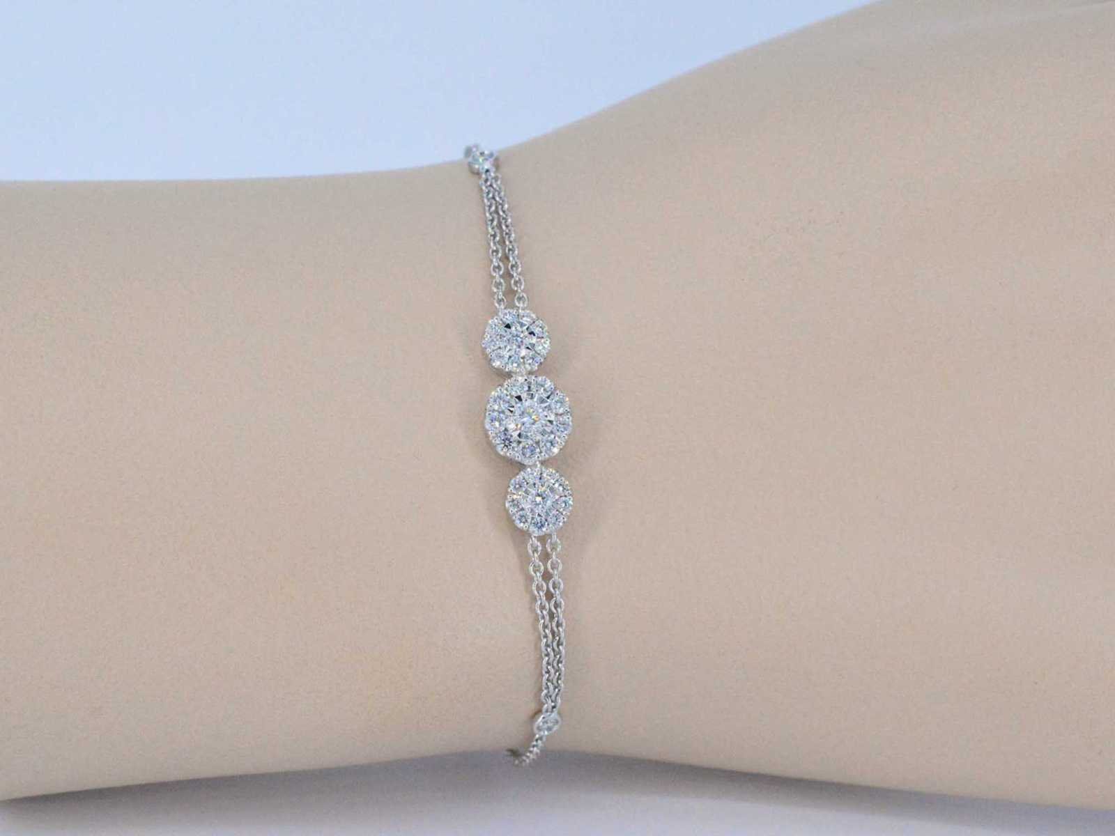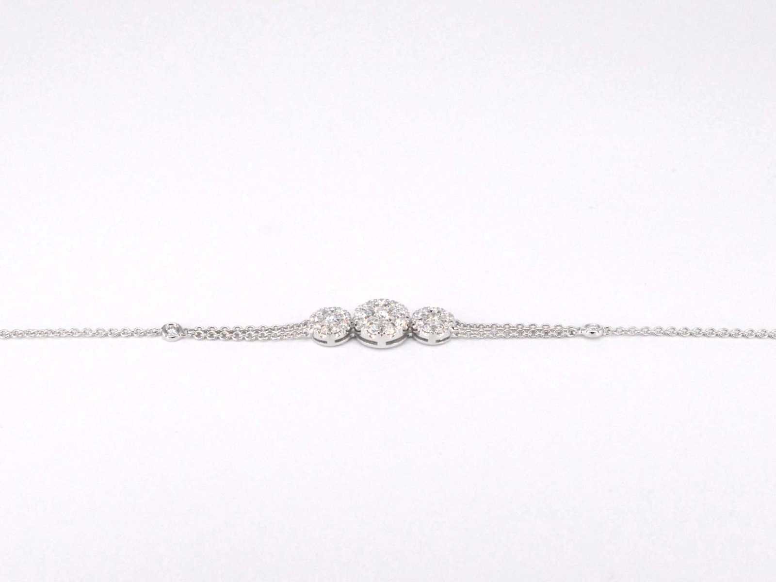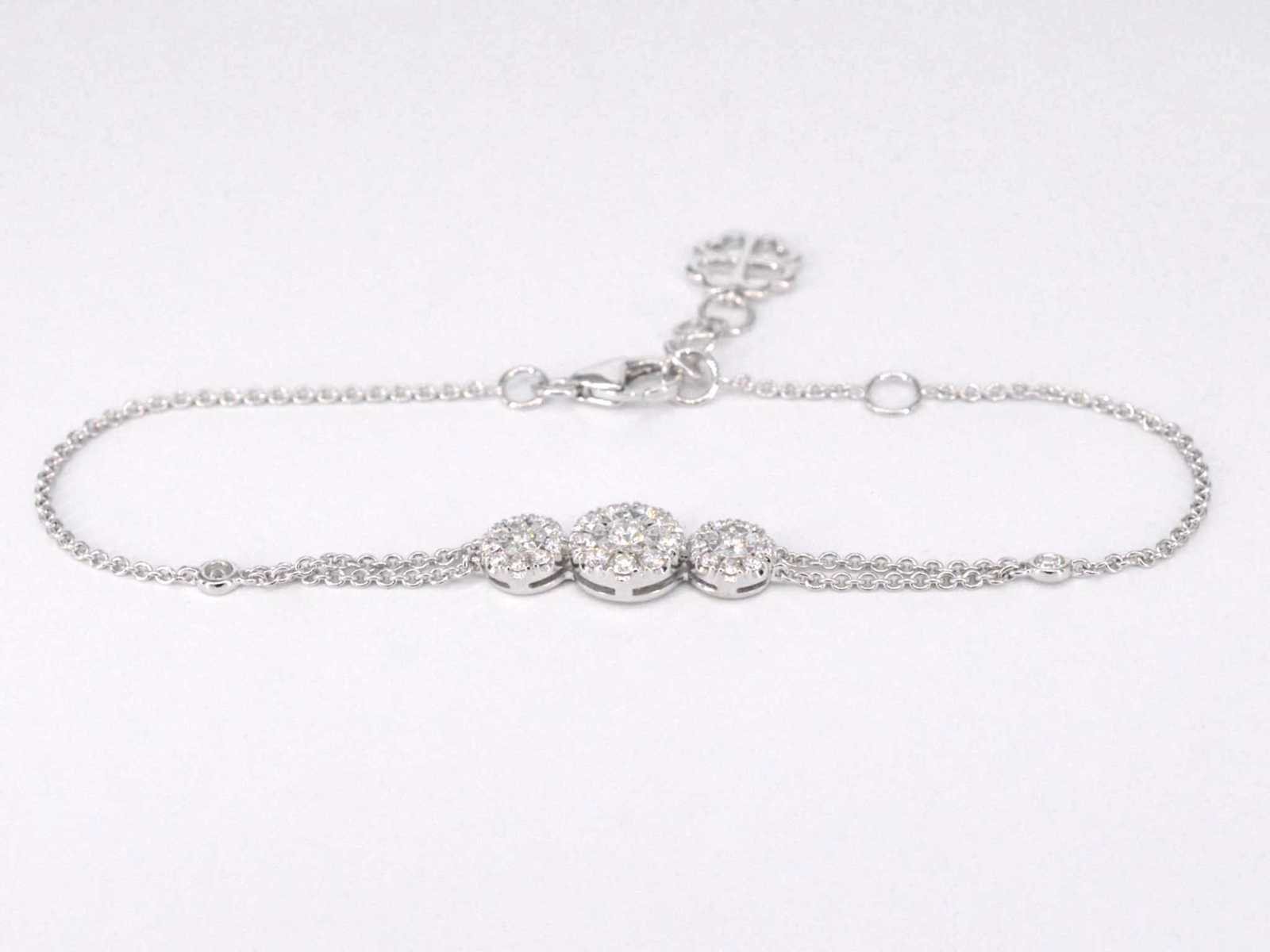 Samenvatting van gegevens Witgouden armband met diamanten Diamant: Natuurlijk; Slijpvorm: Briljant geslepen; Gewicht (carat): 0.60 carat; Kleur: F-G; Zuiverheid: VS; Slijpkwaliteit: Zeer mooi; Juweel: Armband; Gewicht: 3.9 gram; Afmetingen/lengte: 16, 5 - 19 cm (verstelbaar); Materiaal: 18K goud (750); Conditie: Nieuw; Verpakking: Luxe sieradendoos; Toelichting: De kwaliteit is overgenomen van het rapport behorend bij item. De waardebepaling is een beoordeling van een gecertificeerde diamantair, gebaseerd op consumentenprijzen.; Consumentenprijs: € 6.125,- Within 14 days Materiaal: Goud Voornaamste diamant: Natuurlijk Kleur diamant: F-G Gewicht diamant: 0.60ct Slijpvorm diamant: Briljant geslepen Slijpkwaliteit diamant: Zeer mooi Zuiverheidsgraad diamant: VS Totaal gewicht: 3.9g Keurmerk: 750