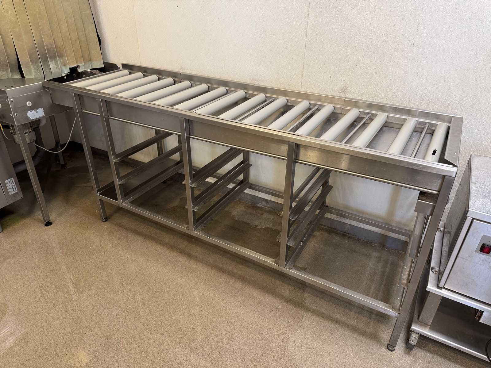 V.v. afvoertafel rollenbaan, debrasseermeubel met etagere, spoelbak en voorspoeldouche. LET OP! De dubbele spoeltafel in het midden van de spoelkeuken behoort niet tot de kavel. De koper is zelf verantwoordelijk voor het professioneel demonteren van de kavel. Kavel kan aangesloten zijn op het elektra-, water- en/of gasleidingnetwerk. Bekabeling en/of leidingen dienen netjes afgedopt en ordelijk achter gelaten te worden. Schade aan het pand of andere zaken zal op de koper worden verhaald. Wij adviseren u gebruik te maken van de kijkdag om een plan voor demontage op te stellen. Merk: Rhima Type: WD-243 Rvs: true Tunnelmodel: true Digitaal: true Totale afmeting L: 4700mm Totale afmeting Breedte: 2900mm Totale afmeting Hoogte: 1700mm