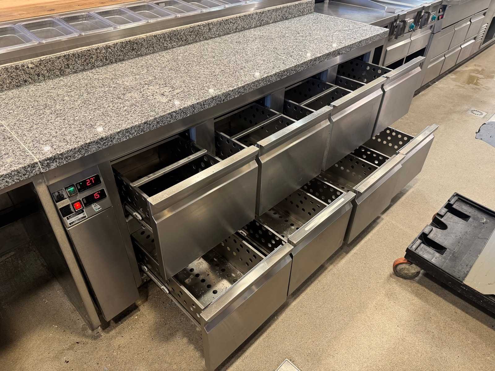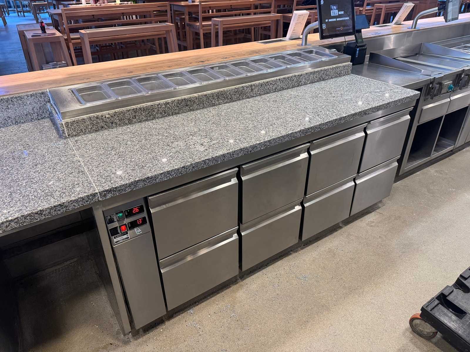 LET OP! Deze kavel maakt onderdeel uit van een combinatie kavel (kavel 9 en 10). De kavel blijft onder gunning totdat de combinatie kavel gesloten is. LET OP! Kavel betreft een apparaat wat aangesloten is op een centraal koelsysteem. Kavel heeft geen eigen koelcompressor. Het centrale koelsysteem is reeds professioneel leeg gepompt. Hiervoor zijn de additionele kosten van toepassing. De koper is zelf verantwoordelijk voor het professioneel demonteren van de kavel. Kavel kan aangesloten zijn op het elektra-, water- en/of gasleidingnetwerk. Bekabeling en/of leidingen dienen netjes afgedopt en ordelijk achter gelaten te worden. Schade aan het pand of andere zaken zal op de koper worden verhaald. Wij adviseren u gebruik te maken van de kijkdag om een plan voor demontage op te stellen. Totale afmeting L: 200cm Totale afmeting Breedte: 90cm Totale afmeting Hoogte: 80cm Digitale uitlezing: true Rvs: true