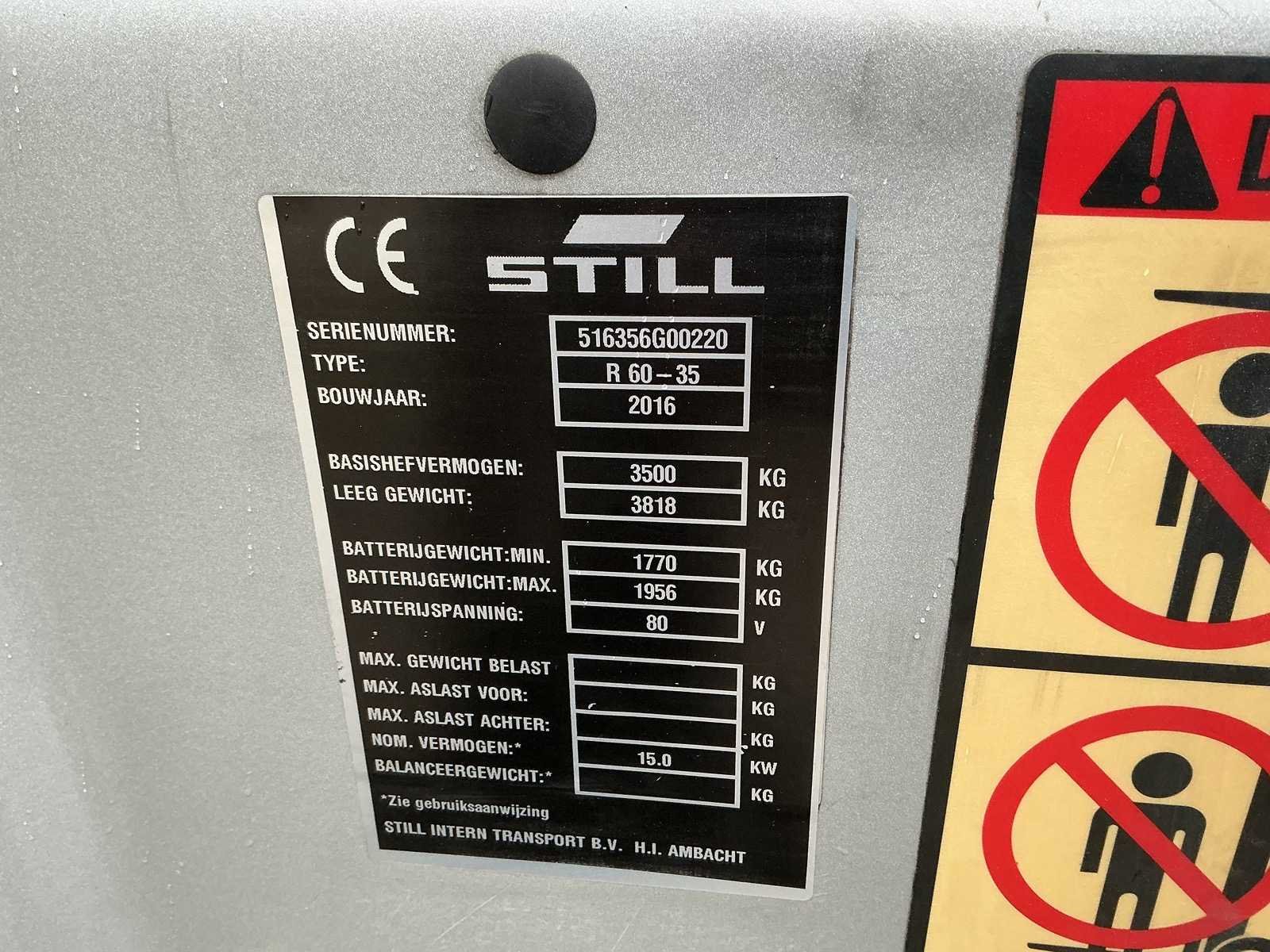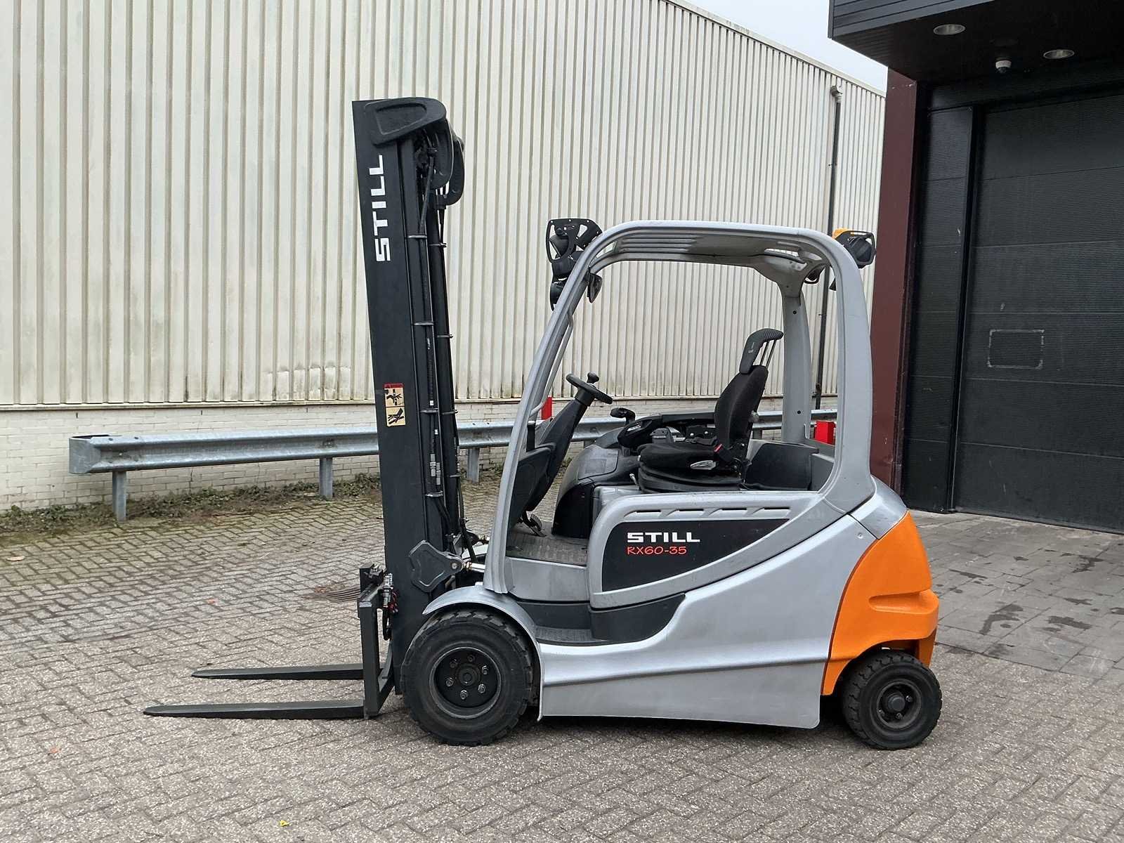 Merk: STILL Type: RX60-35 Bouwjaar: 2016 Serienummer: 516356G00220 Mast: Duplex Aantal wielen: 4 Afgelezen urenstand: 12631 Duplex mast: true Hefvermogen: 2500kg Lepellengte: 1000mm Hefhoogte: 4120mm Minimale doorrijhoogte: 2920mm