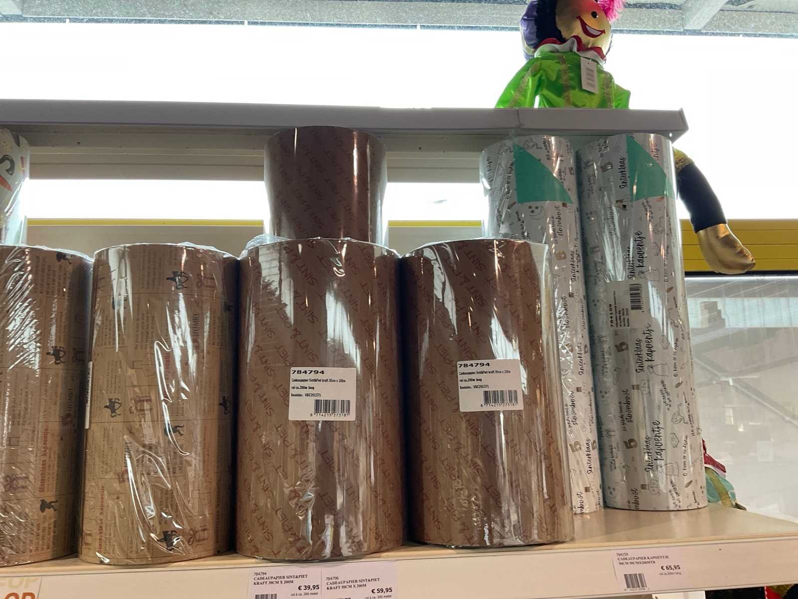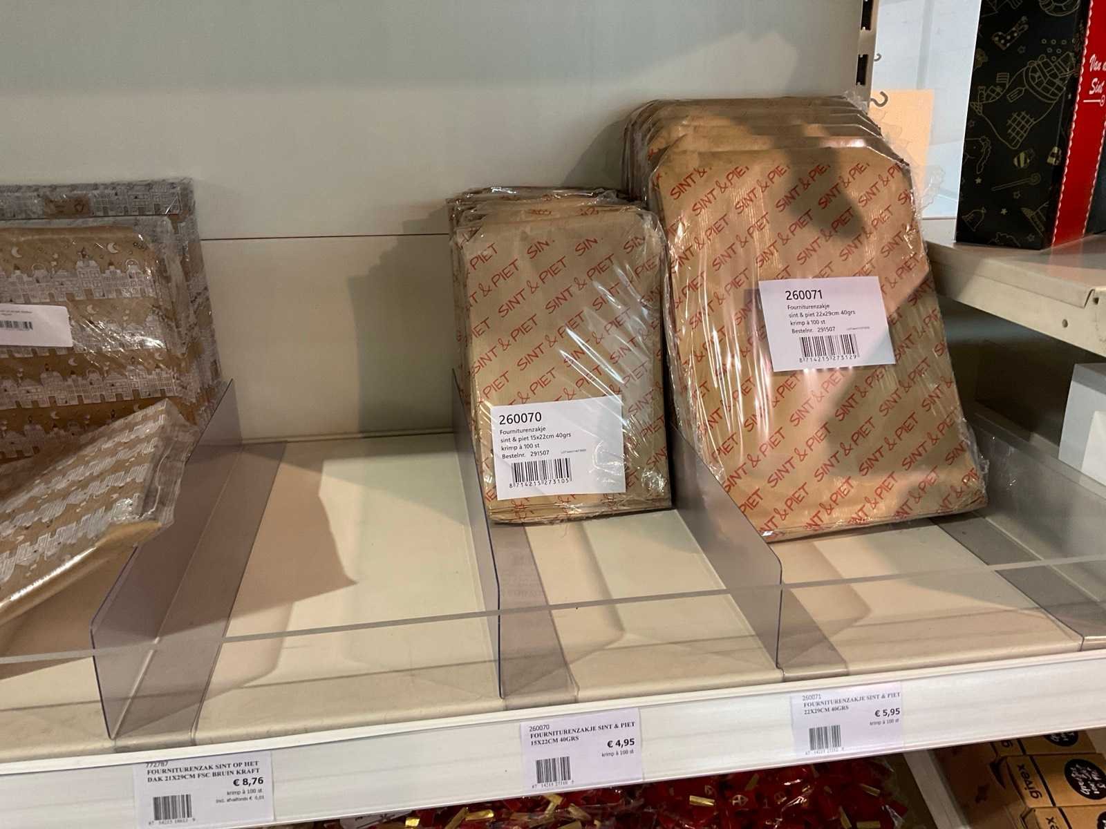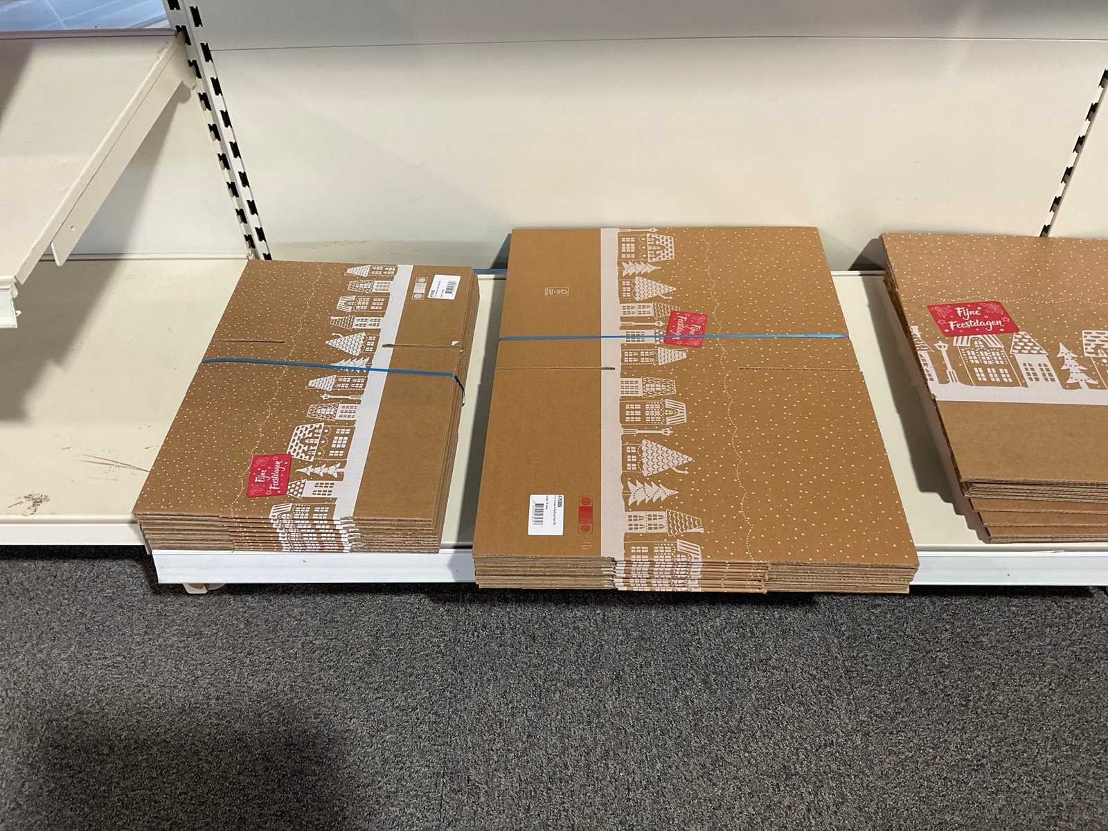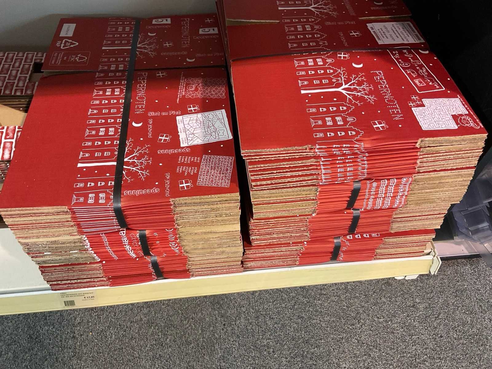 Bestaande uit, stickers, linten, strik op clips, fourniturenzakken, inpakpapier, verpakkingsdozen. Thema kerst en sinterklaas. Exclusief stelling.