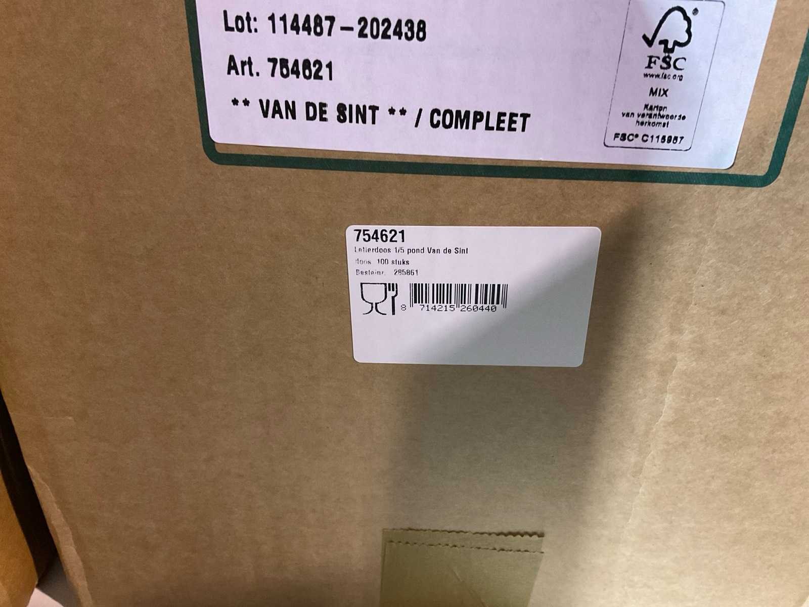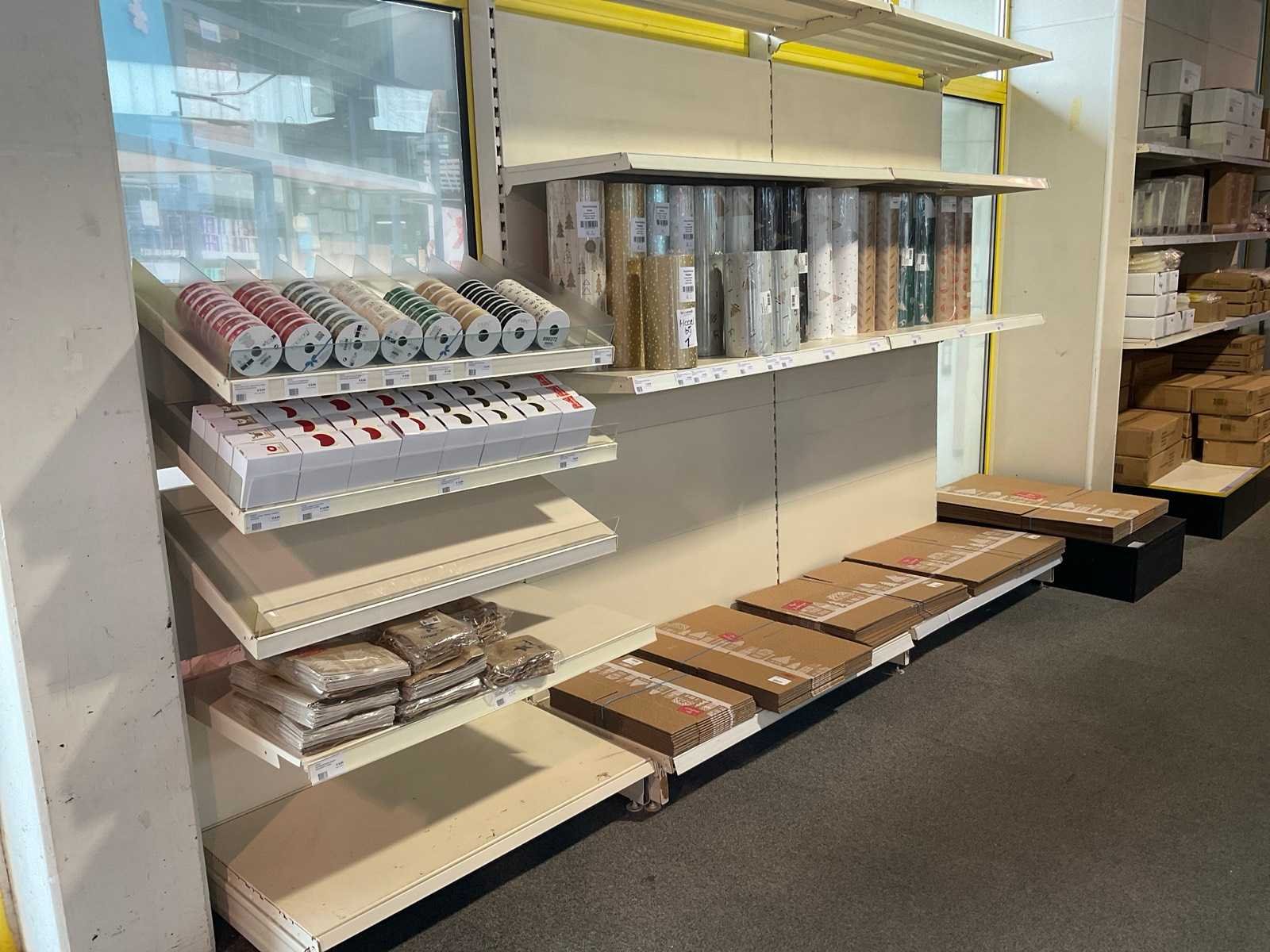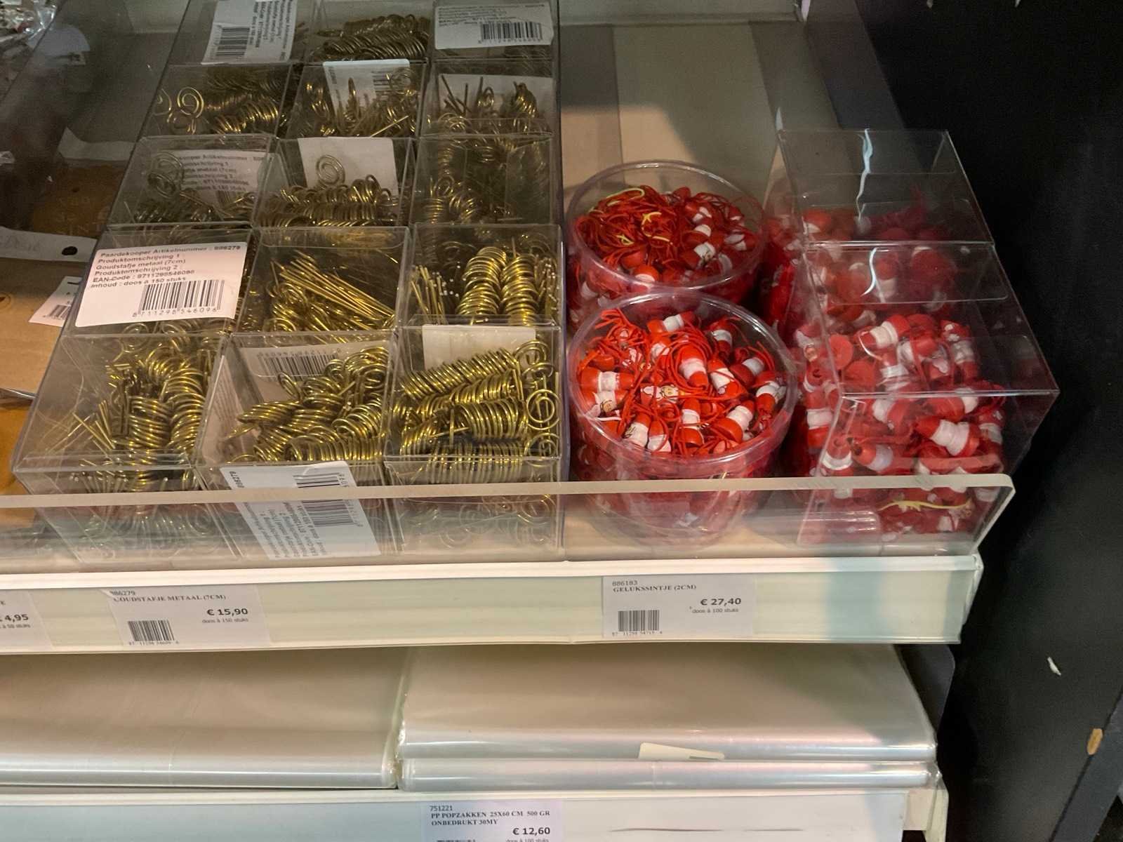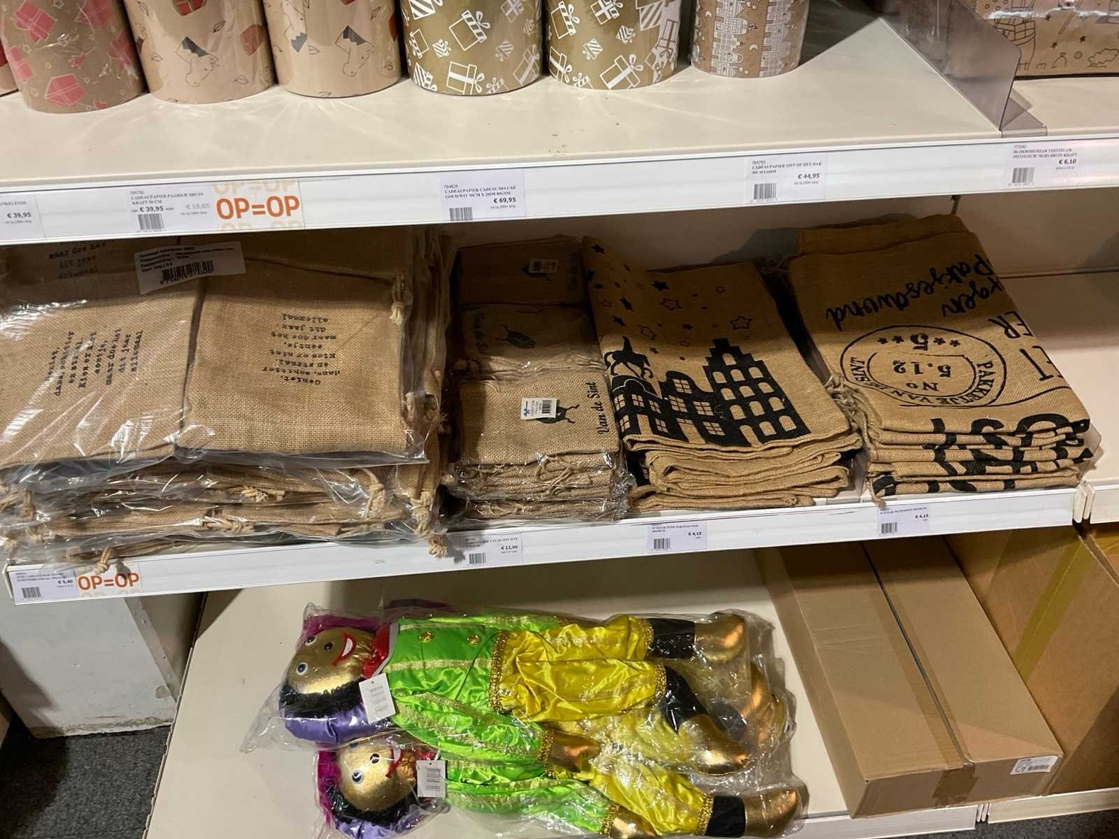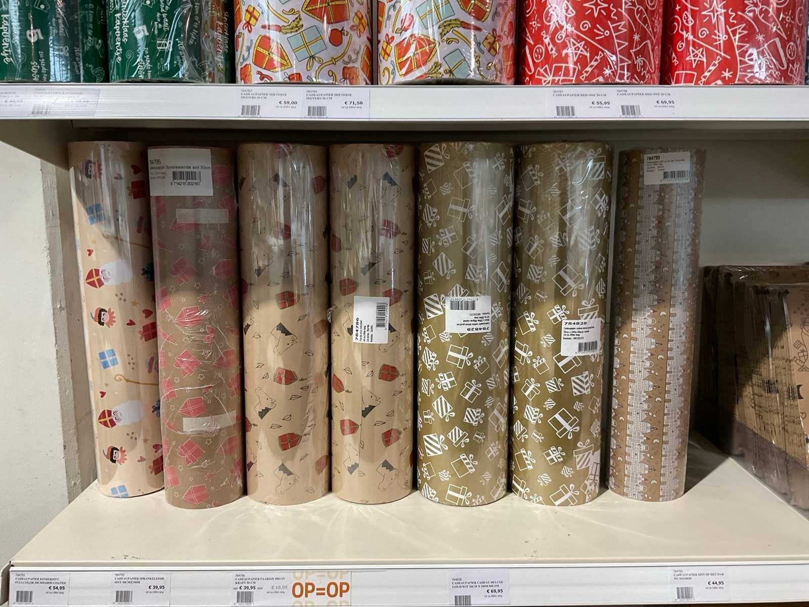 Bestaande uit, stickers, linten, strik op clips, fourniturenzakken, inpakpapier, verpakkingsdozen. Thema kerst en sinterklaas. Exclusief stelling.