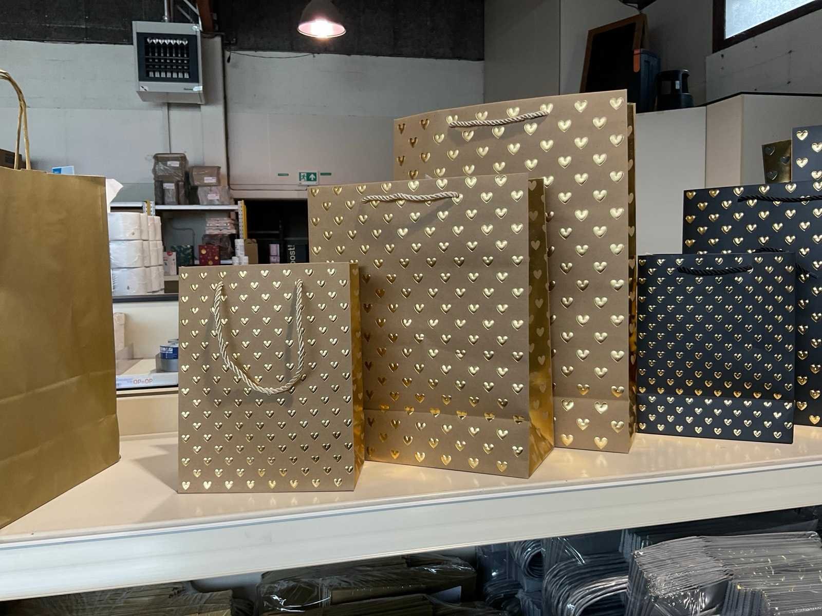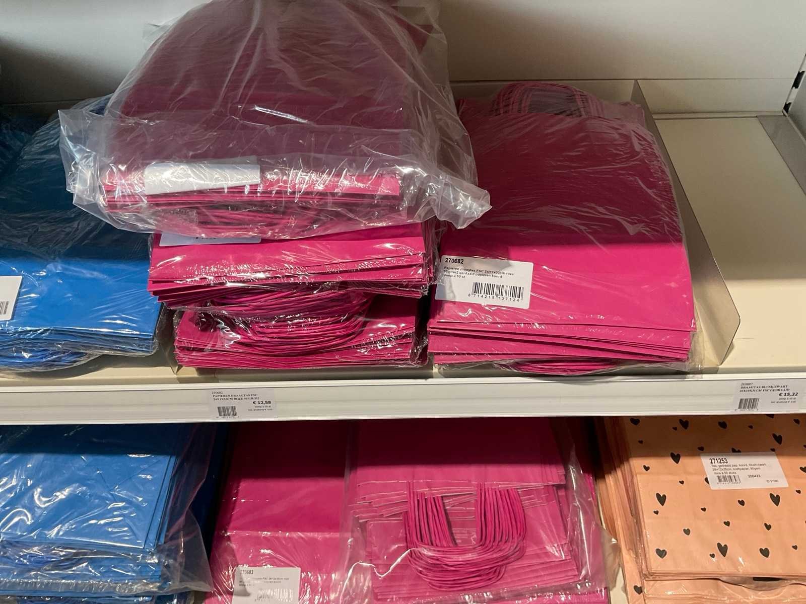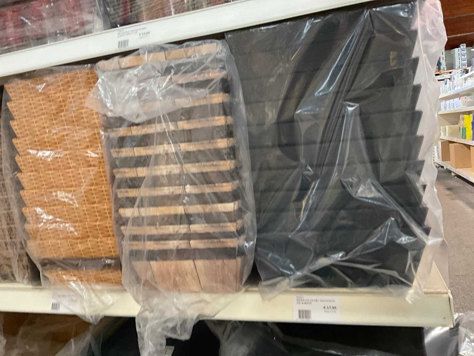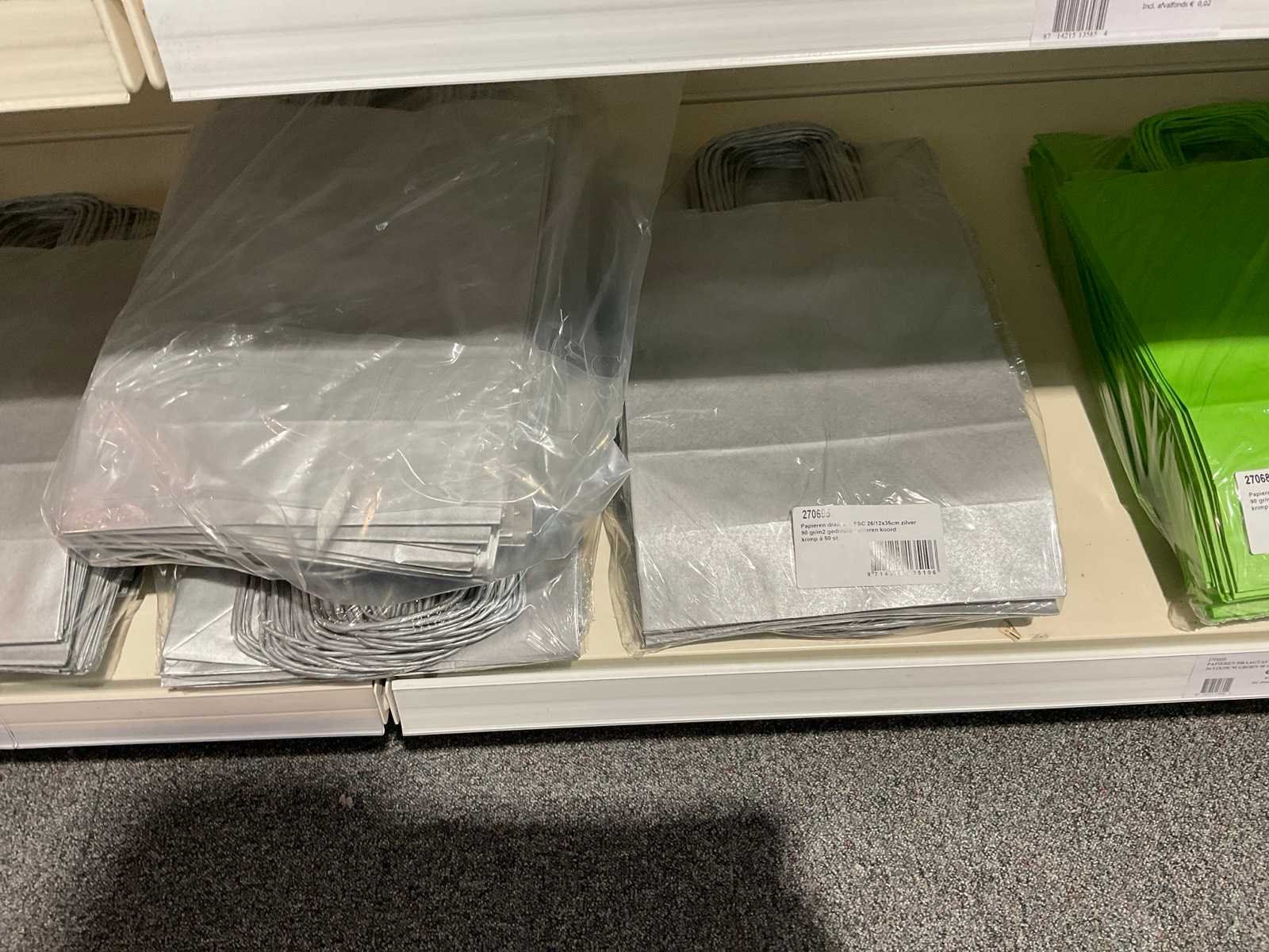Bestaande uit verschillende soorten en maten papieren draagtassen, biertassen, biertrays, kartonnen biermanden, houten bierwagen. Exclusief stelling.