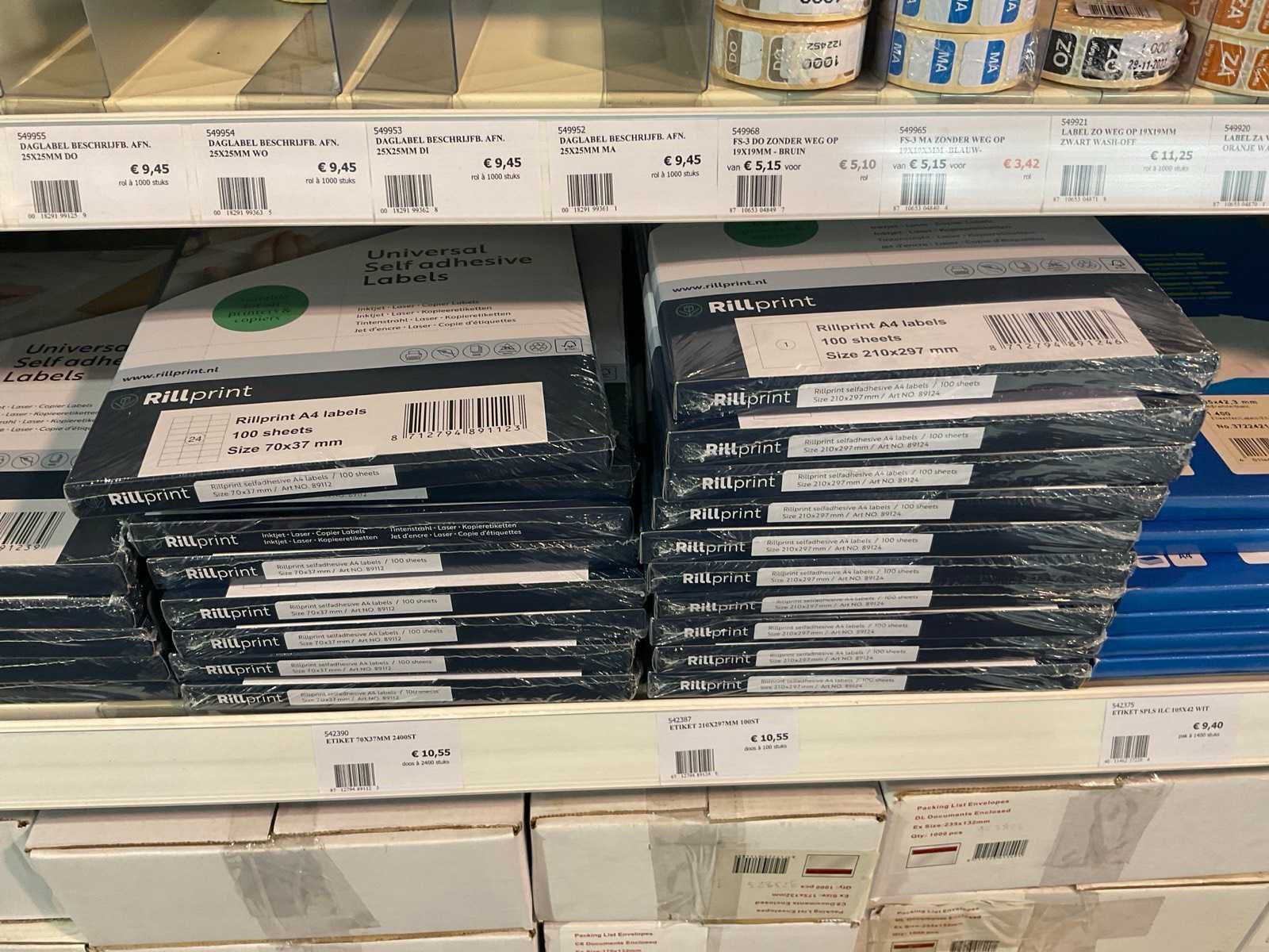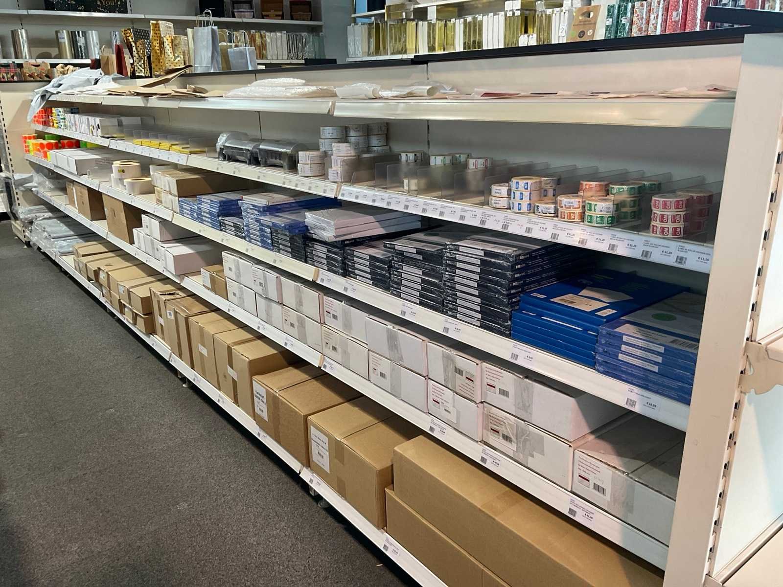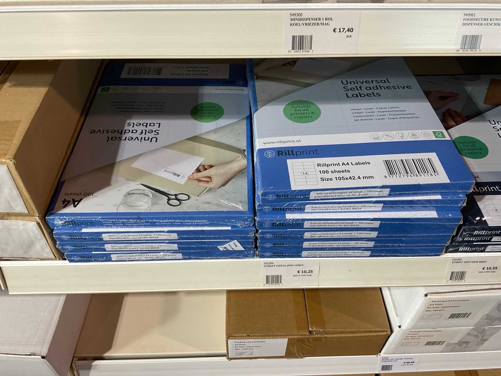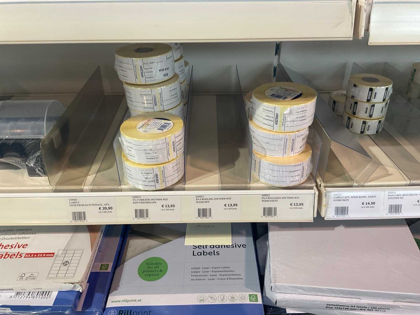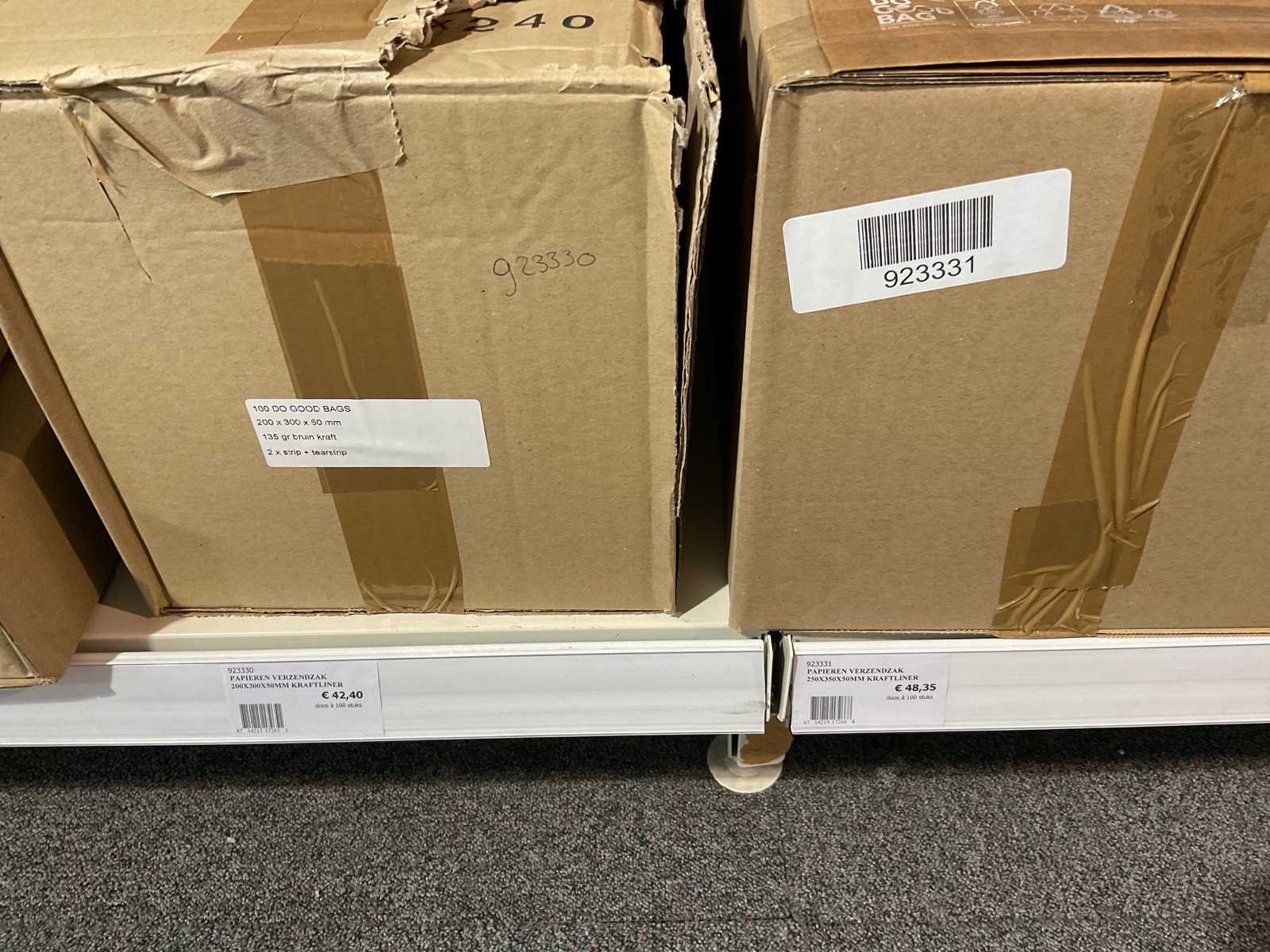 Inhoud 1 zijde van stelling, bestaande uit labels, packinglist enveloppen, papieren verzendzakken, loonzakjes, sluitetiketten,, exclusief stelling.