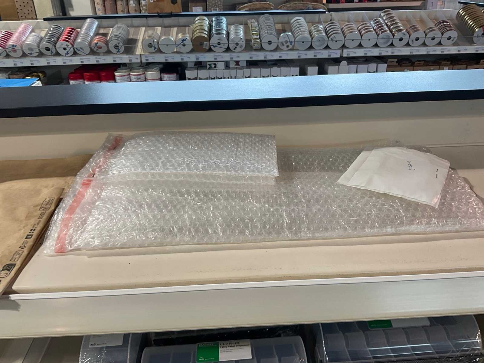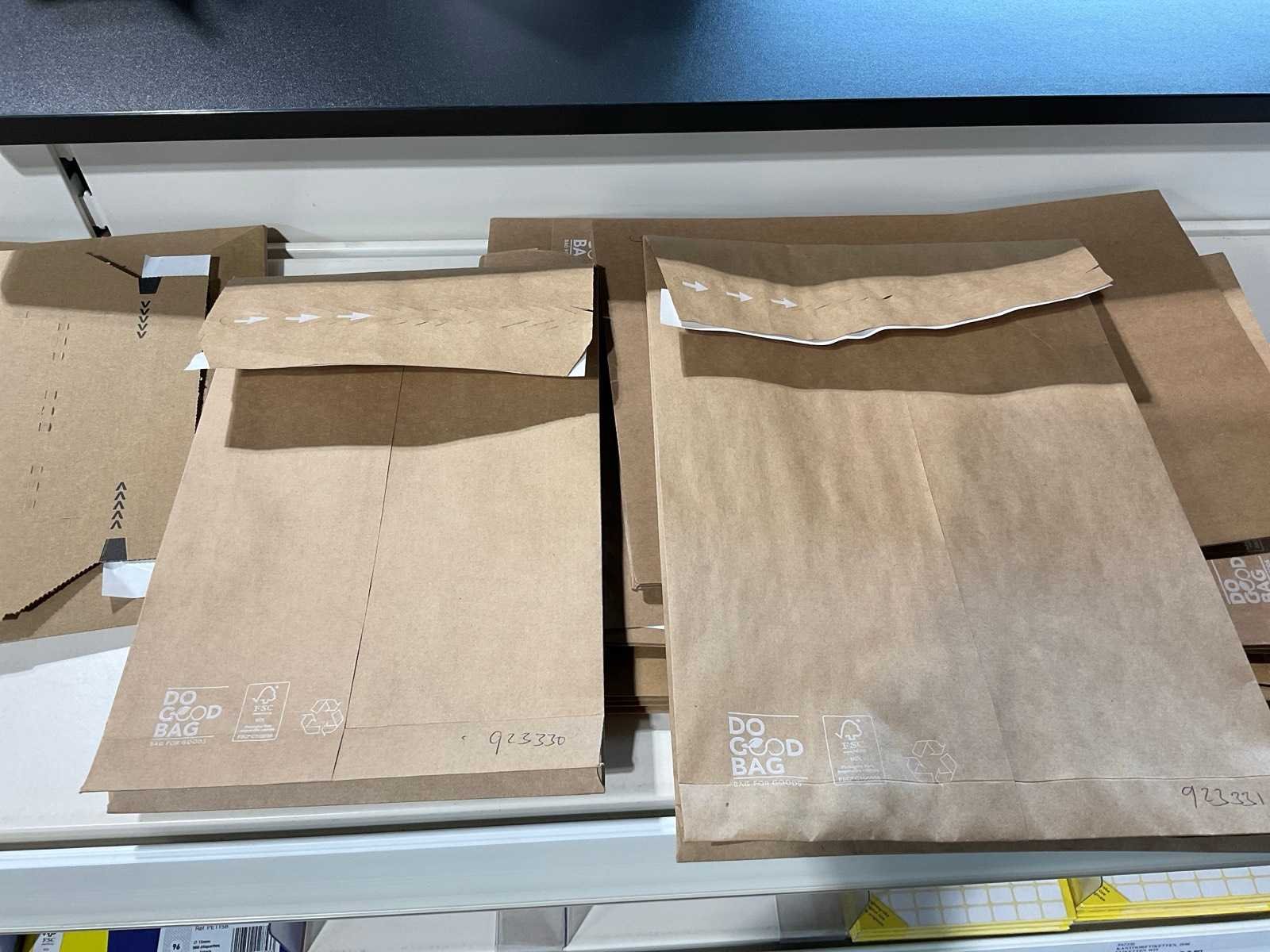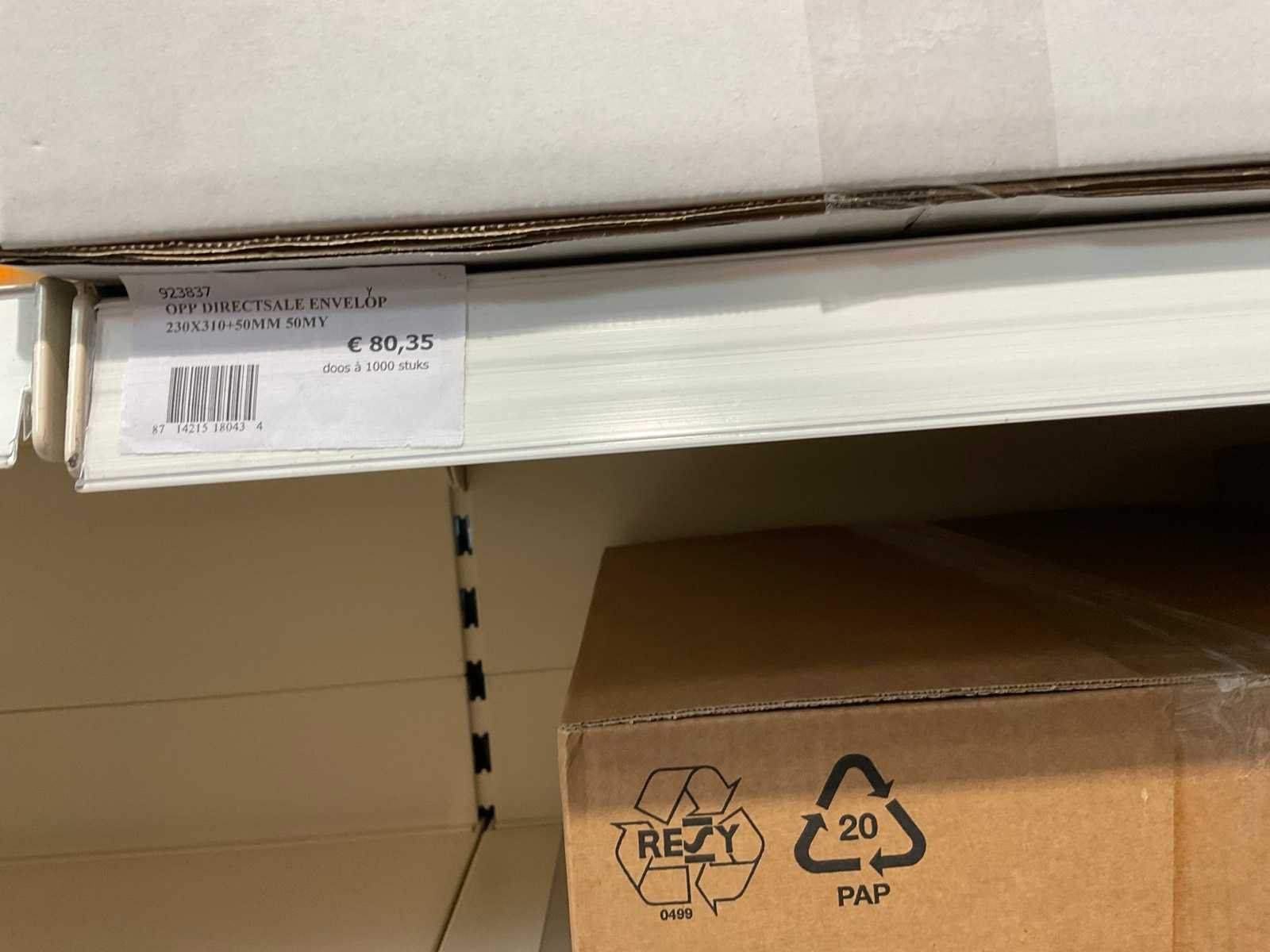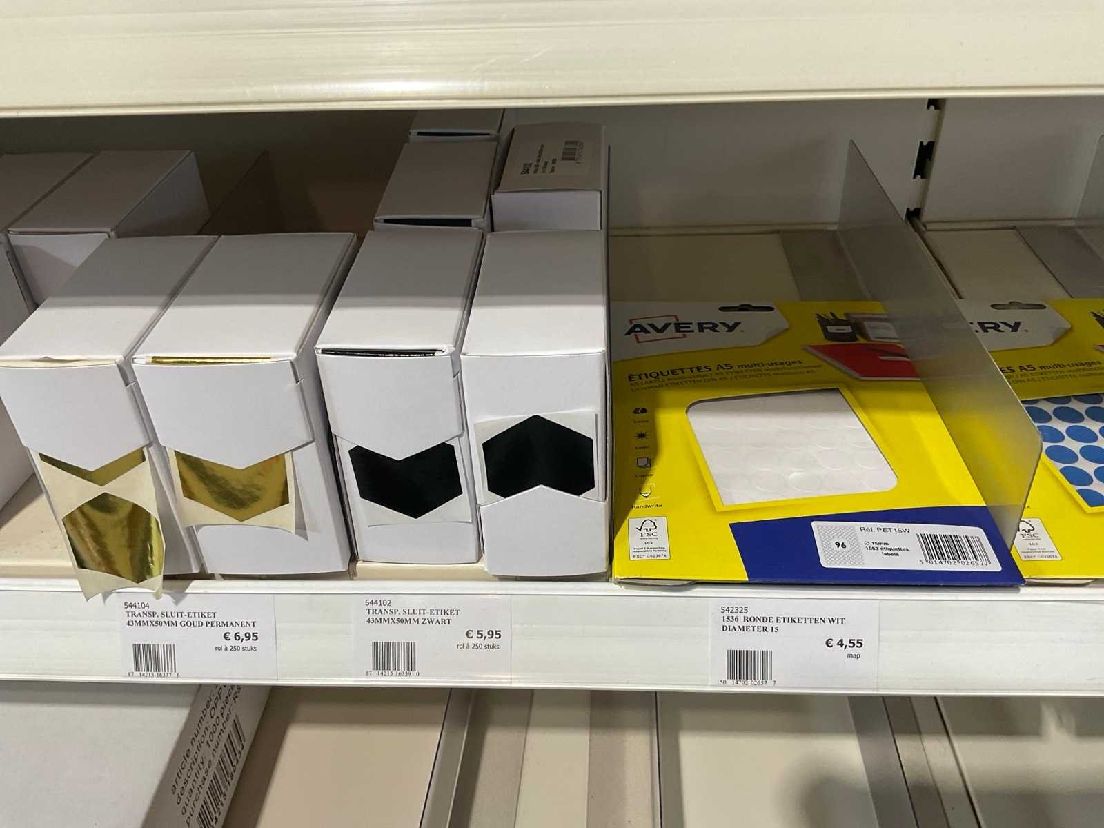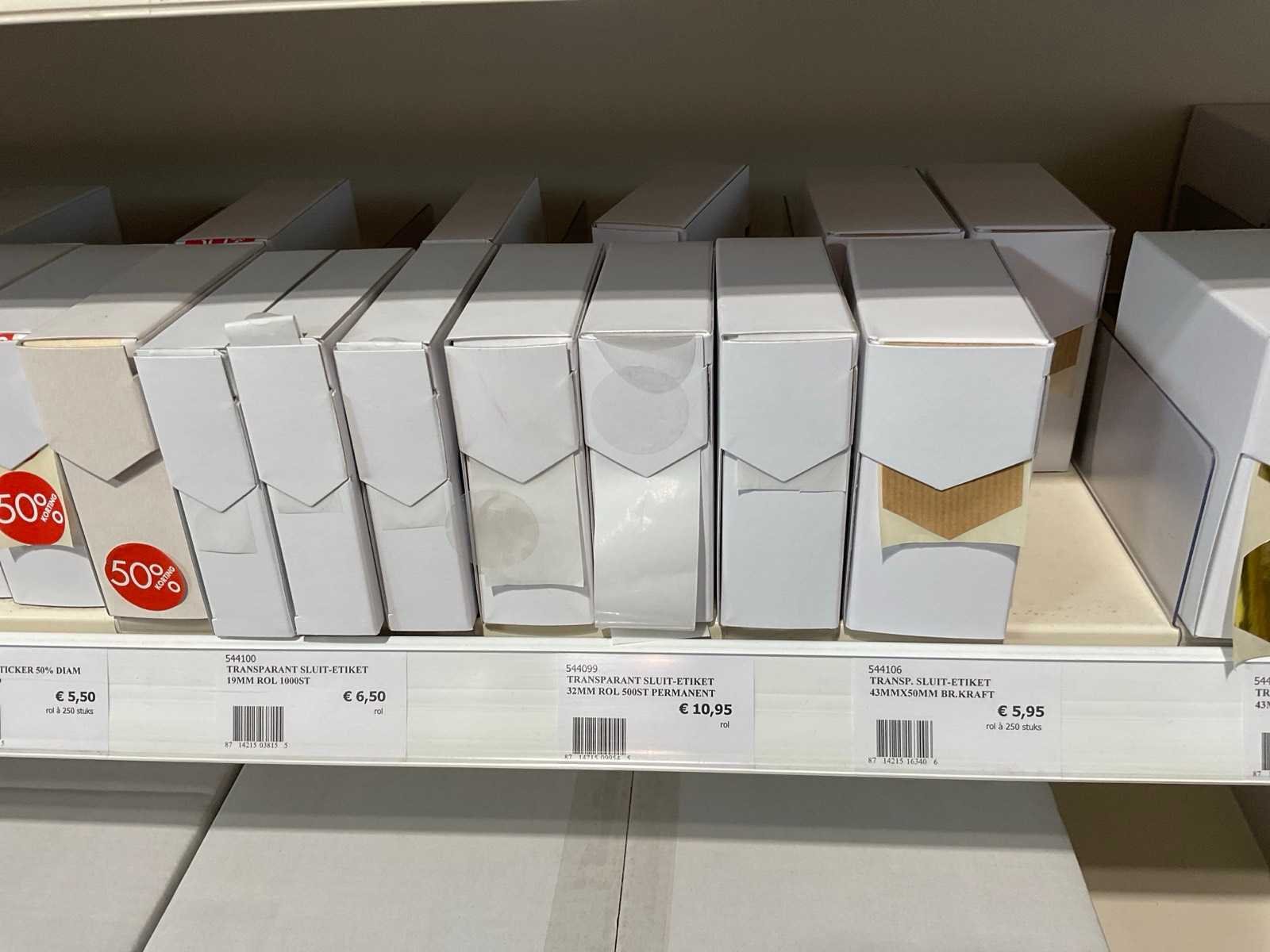 Inhoud 1 zijde van stelling, bestaande uit labels, packinglist enveloppen, papieren verzendzakken, loonzakjes, sluitetiketten,, exclusief stelling.