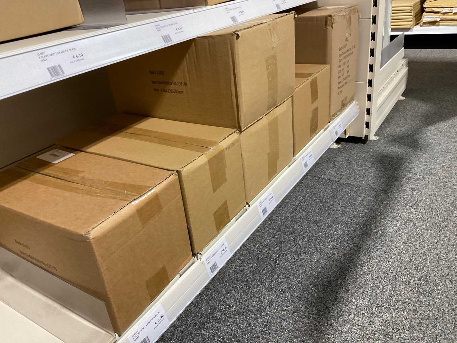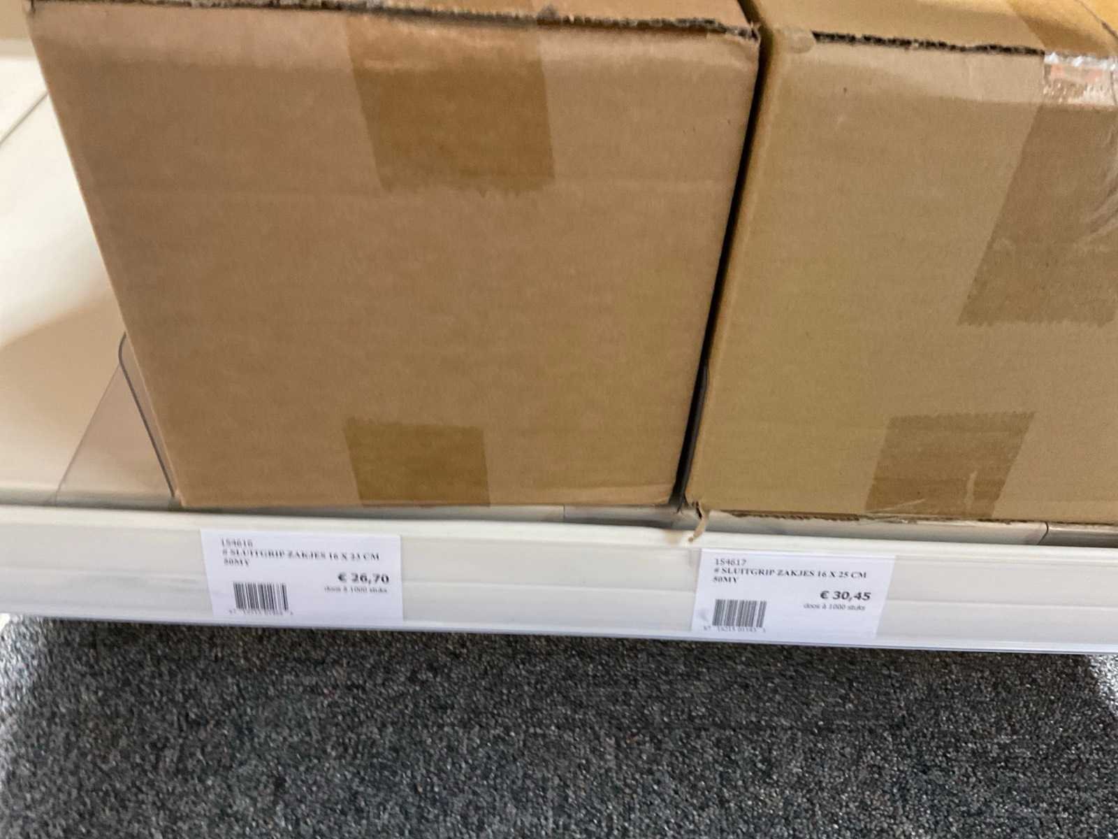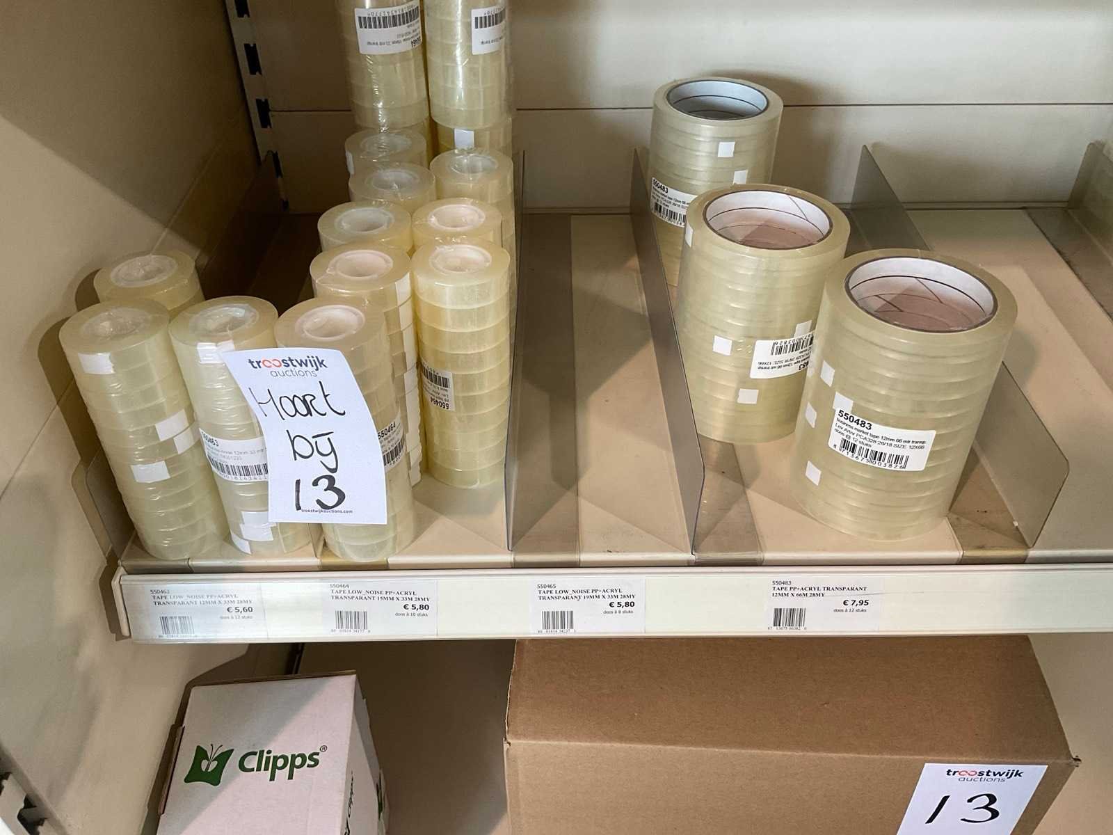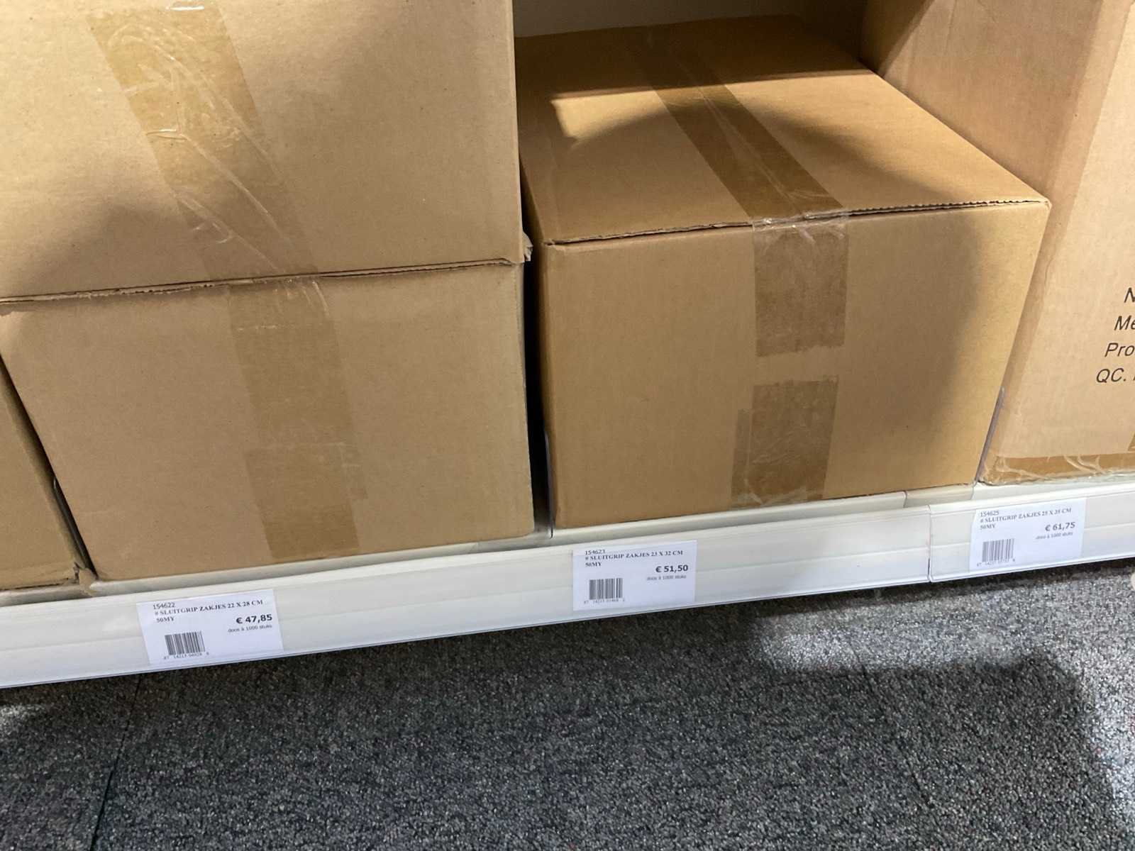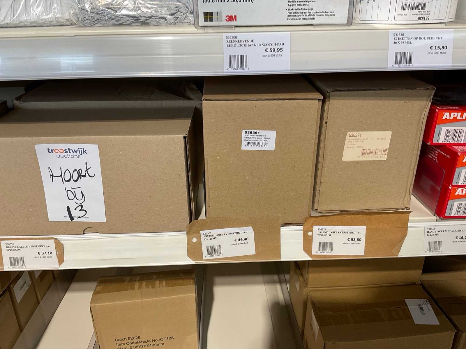 Exclusief stelling Bestaande uit: Tape, zakkensluit, clipps, tapeafrollers, etiketten, elastiekjes, wikkelstrips, hangetiketten.