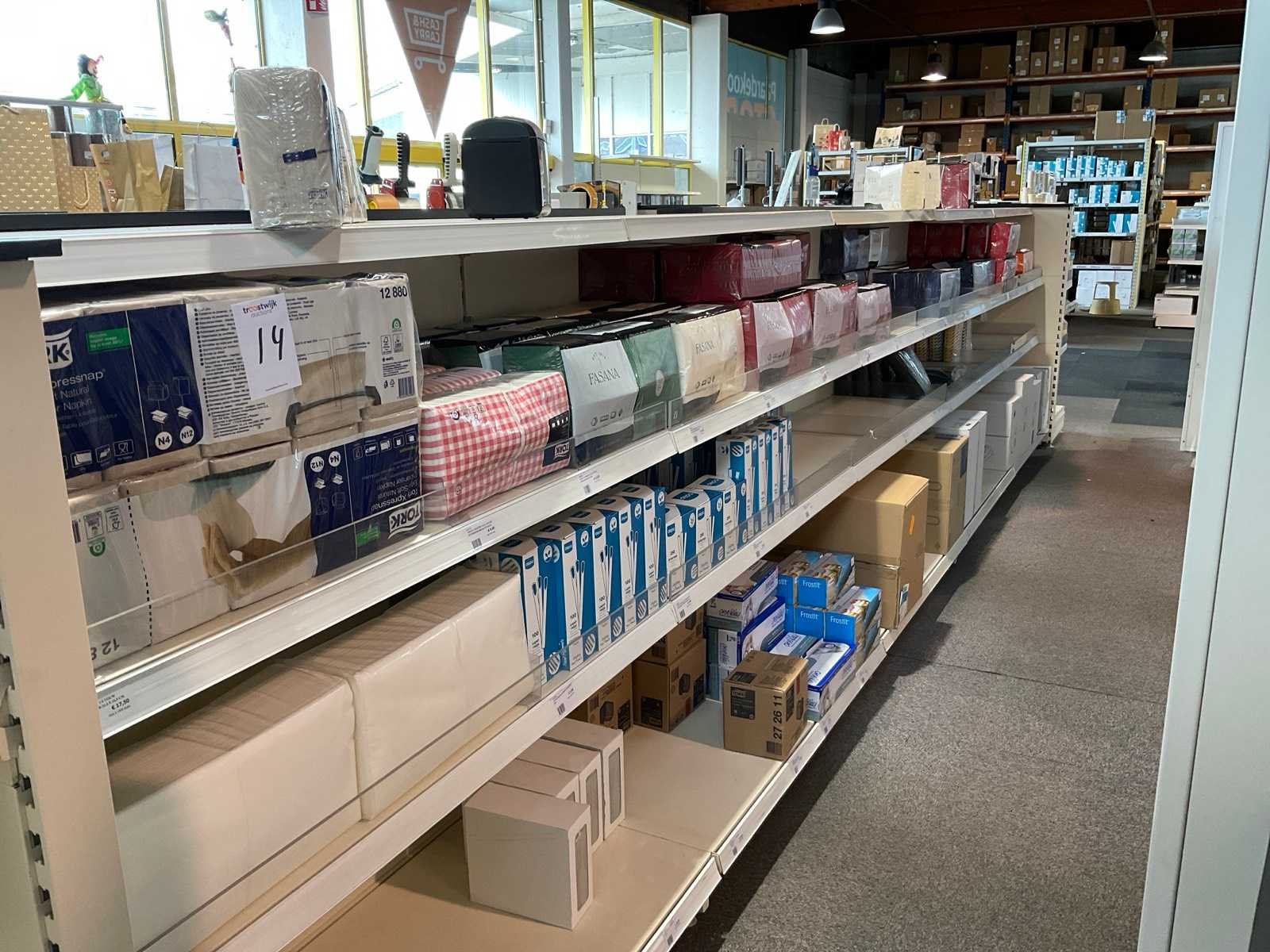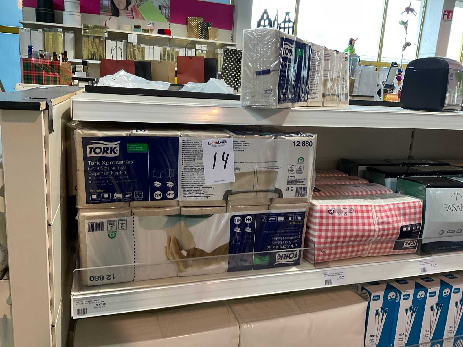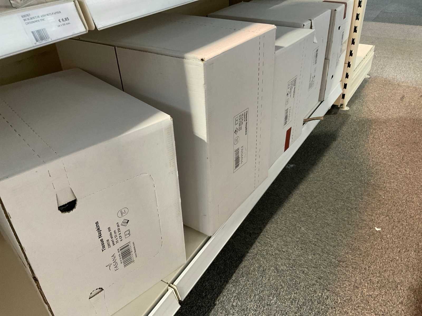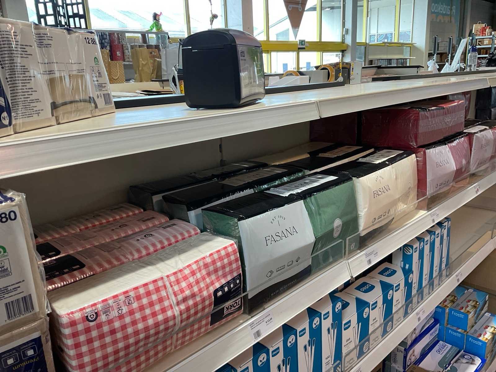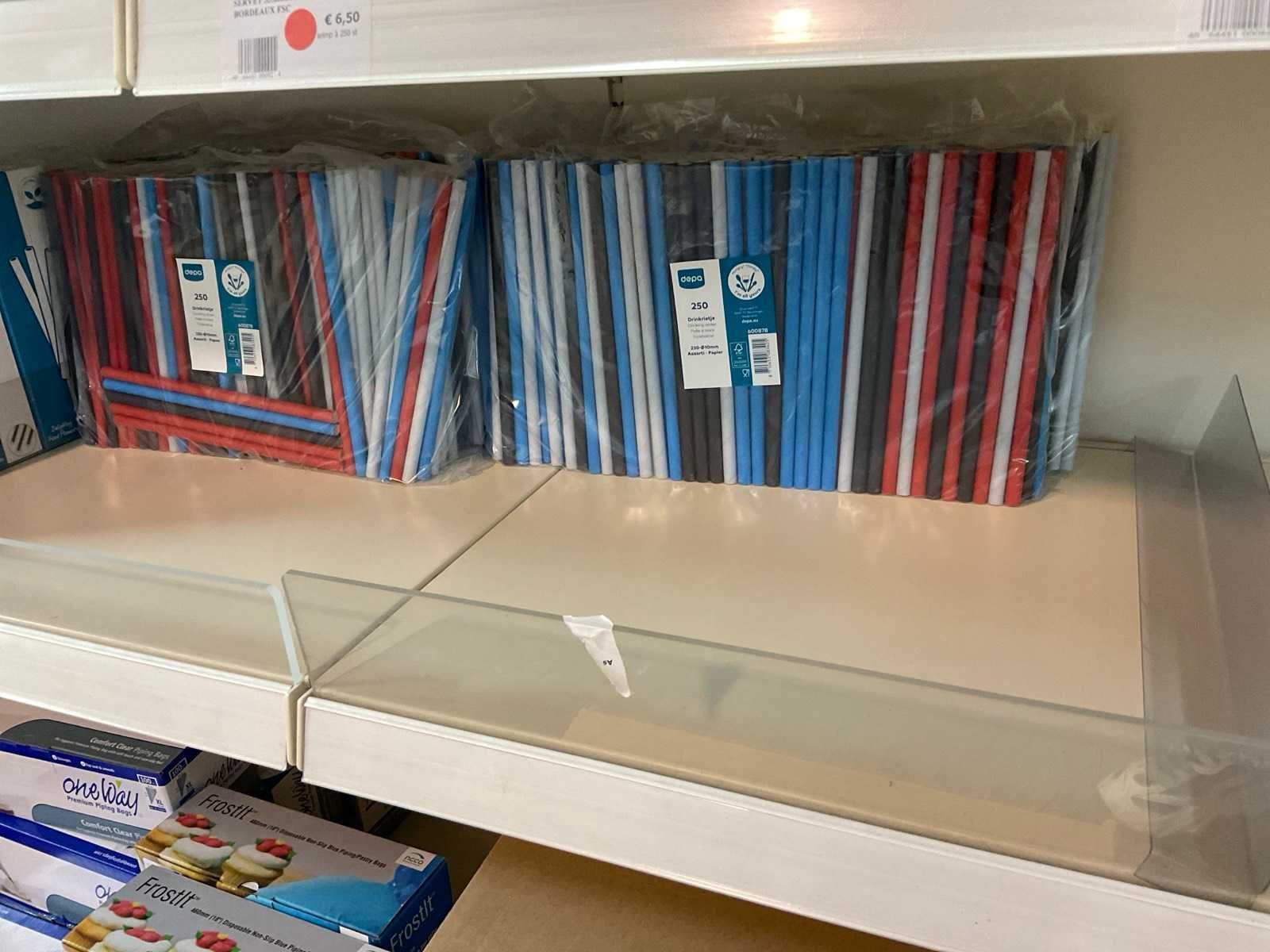 Inhoud 1 zijde van stelling, bestaande uit servetten, rietjes, tissues, spuitzakken, lepelrietjes. Exclusief stelling.