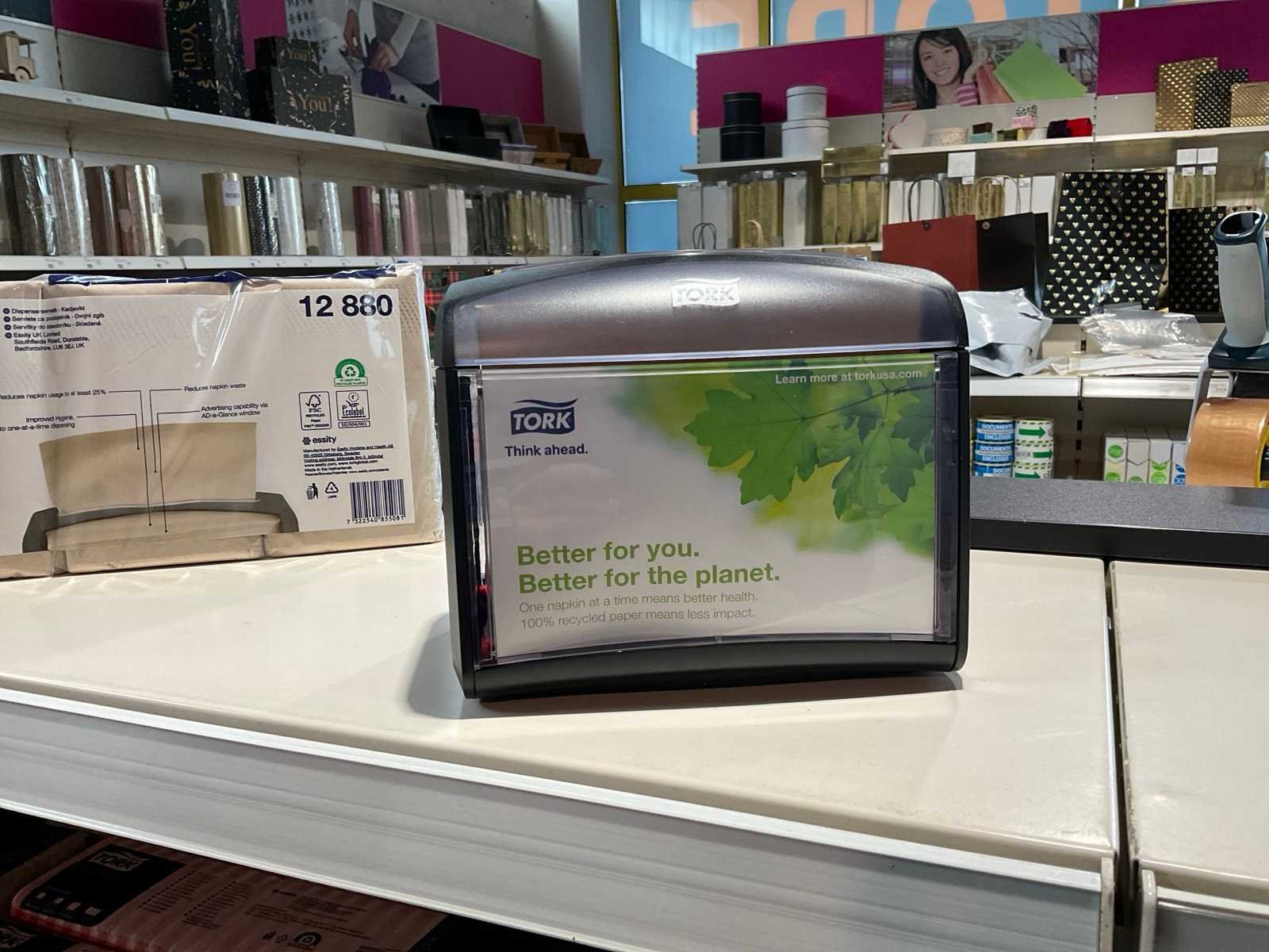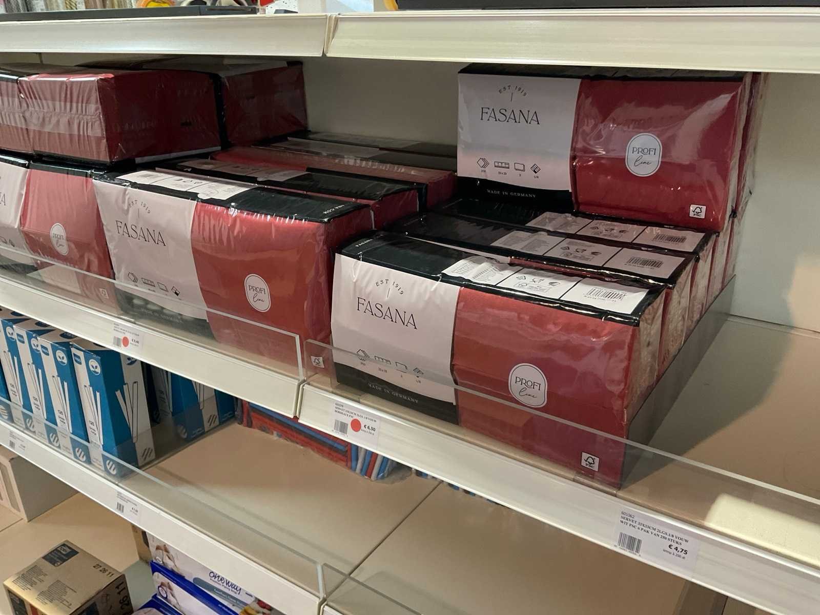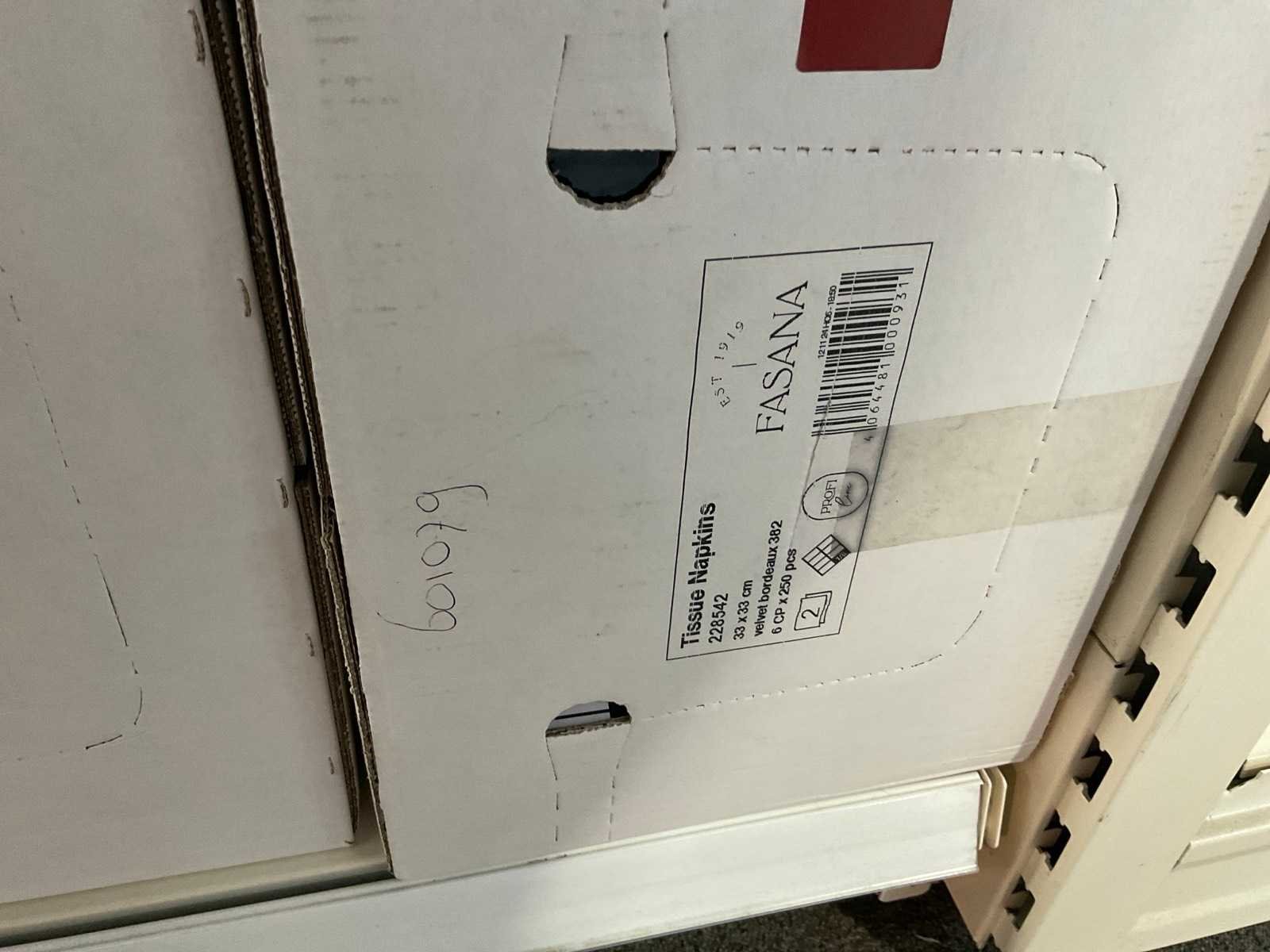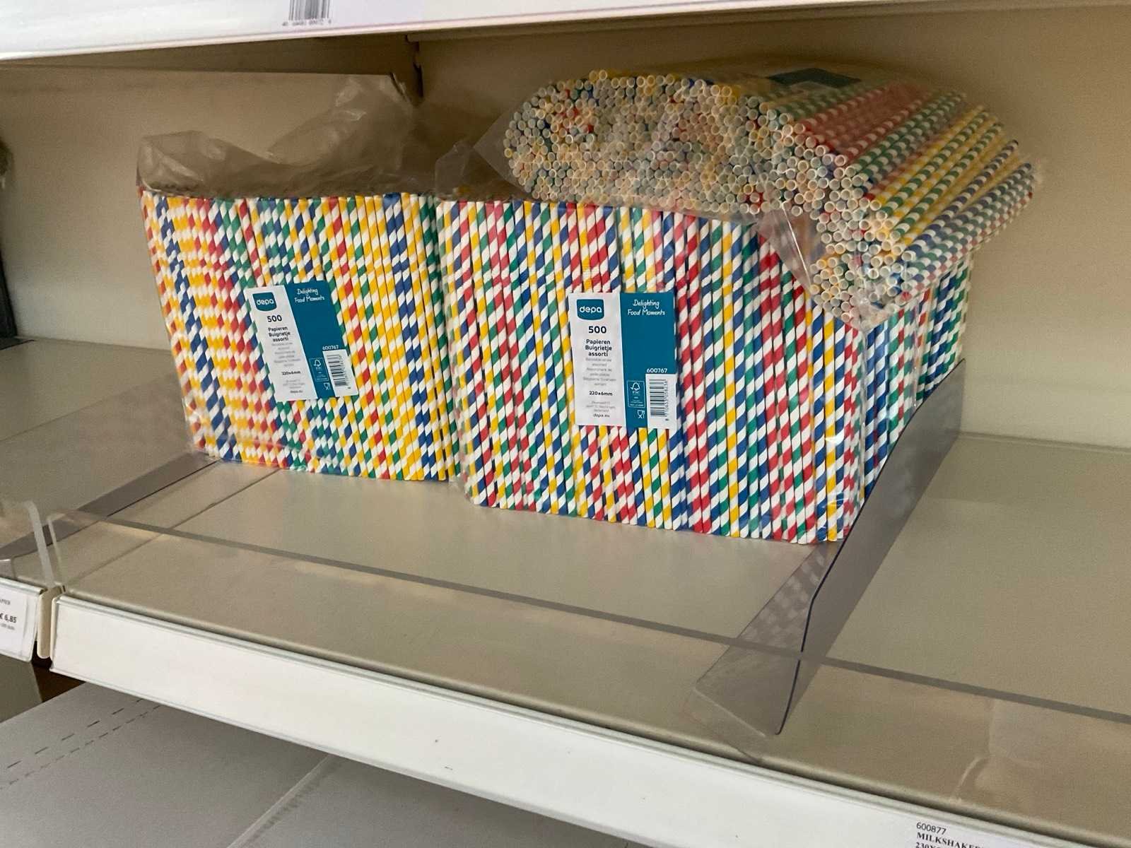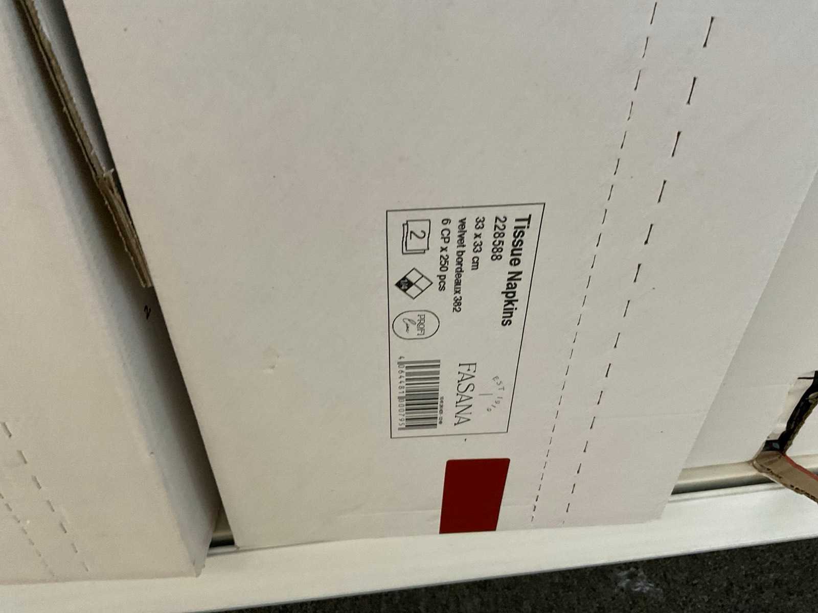 Inhoud 1 zijde van stelling, bestaande uit servetten, rietjes, tissues, spuitzakken, lepelrietjes. Exclusief stelling.