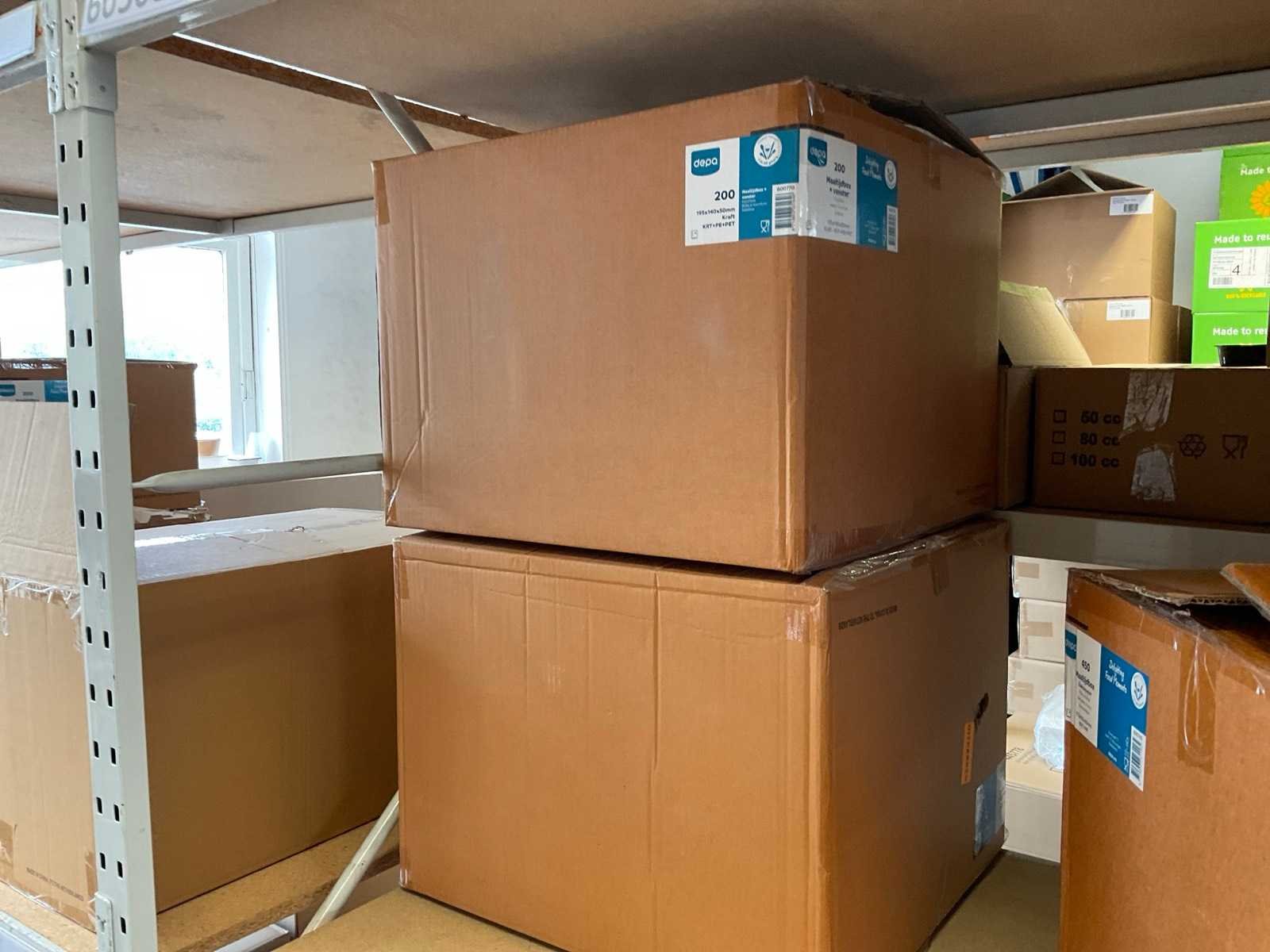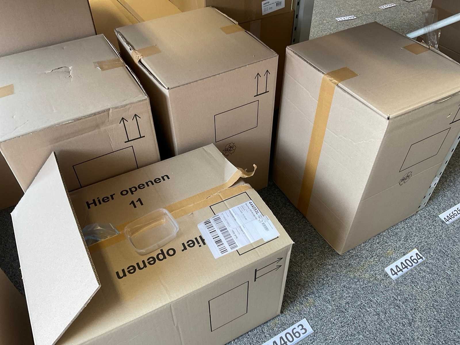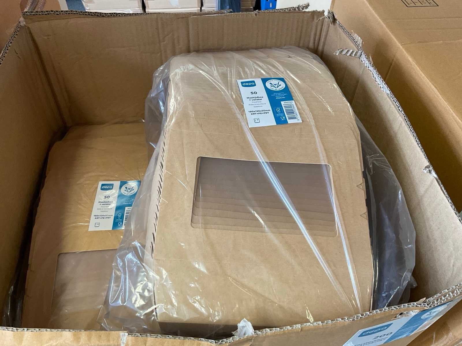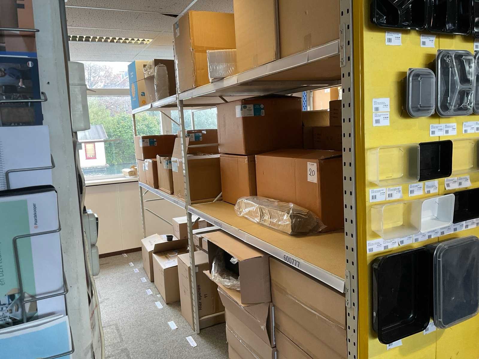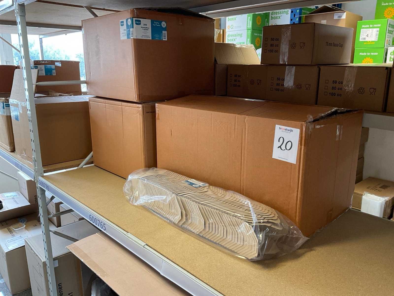 Inhoud 1 zijde stelling, bestaande uit maaltijboxen, soepbekers, hamburgerboxen, schalen, bakjes, exclusief stelling. Merk: Depa
