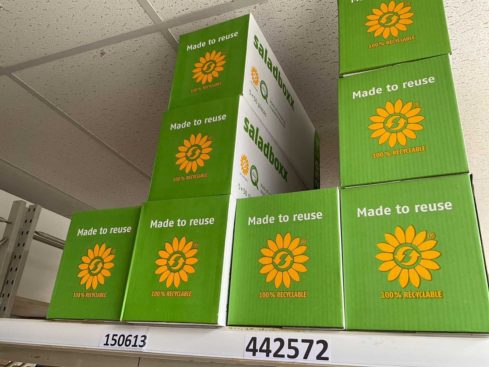 Inhoud 2 zijden van stelling, bestaande uit saladebakjes, 3 vaksbakjes. Exclusief stelling. Merk: Faerch