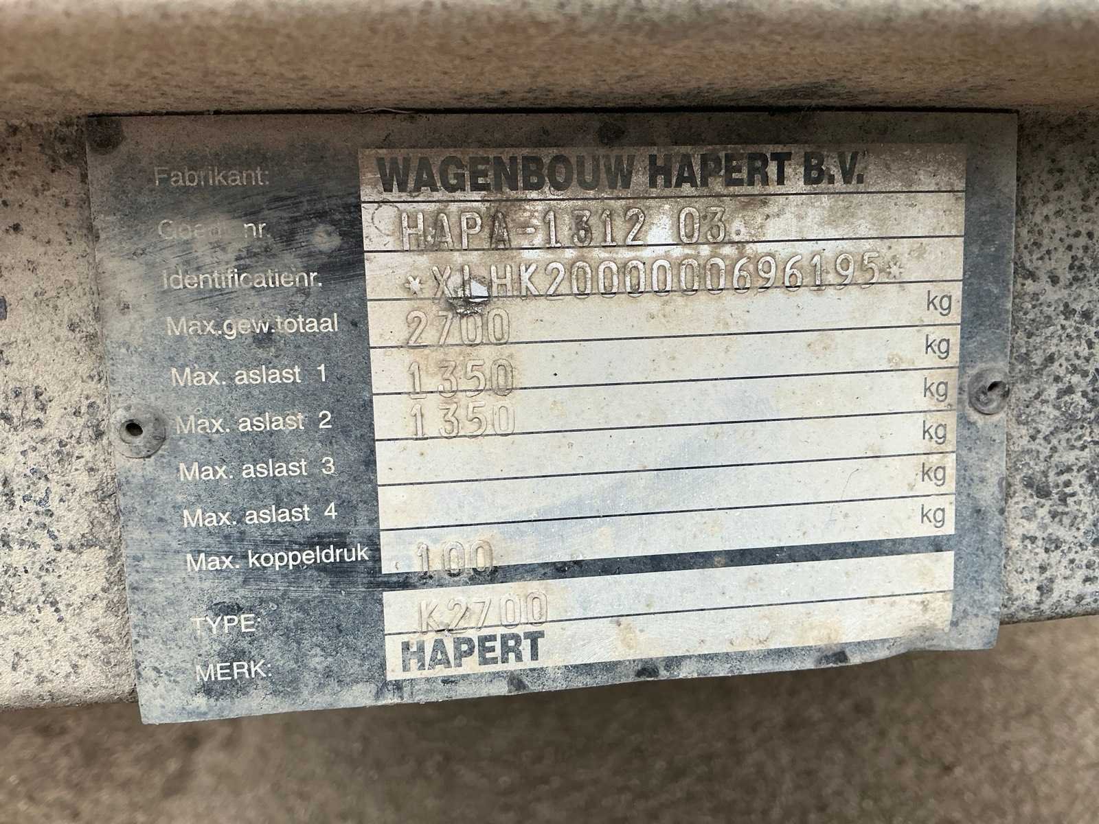 INGERSOLL RAND R1220F 1458 compressor bouwjaar 2005, 3108 uur, Maximaal 15,5 Bar, HONDA GX270 Benzine motor met ATLAS COPCO HYDRAULIC LP 9-20 P Merk: Hapert Type: K2700 Bouwjaar: 2008 Chassisnummer: XLHK2000000696195 Aantal assen: 2 Ledig gewicht: 341kg Laadvermogen: 2359kg Datum eerste toelating: 2008-09-15 Datum eerste toelating (NL): 2008-09-15 Kenteken: WZ-LX-62 Hoogte: 1800cm Lengte: 4000cm Breedte: 2100cm Nationaliteit documenten: Nederland