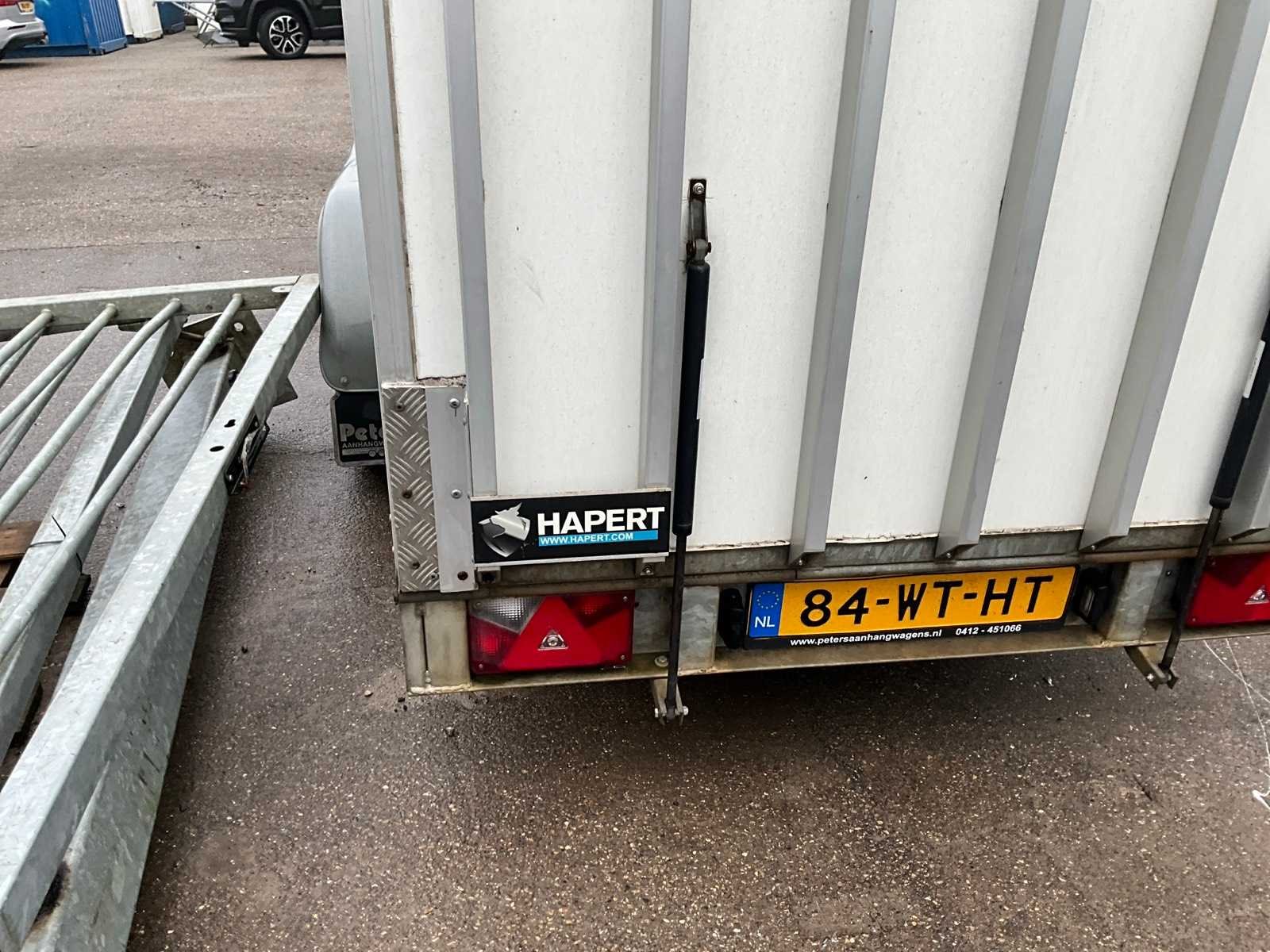 Merk: Hapert Chassisnummer niet afleesbaar: true Aantal assen: 2 Laadbak afmeting l: 406cm Laadbak afmeting b: 140cm Ledig gewicht: 836kg Laadvermogen: 2664kg Gesloten opbouw: true Datum eerste toelating: 2018-12-20 Datum eerste toelating (NL): 2018-12-20 Kenteken: 84-WT-HT Hoogte: 285cm Lengte: 540cm Breedte: 190cm