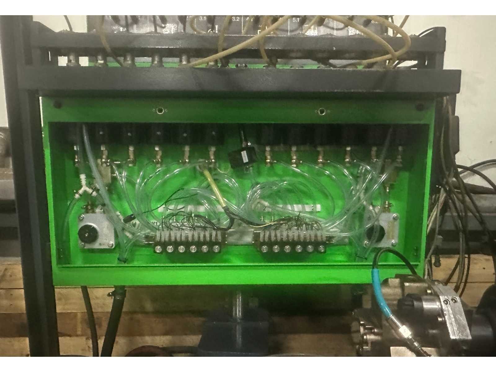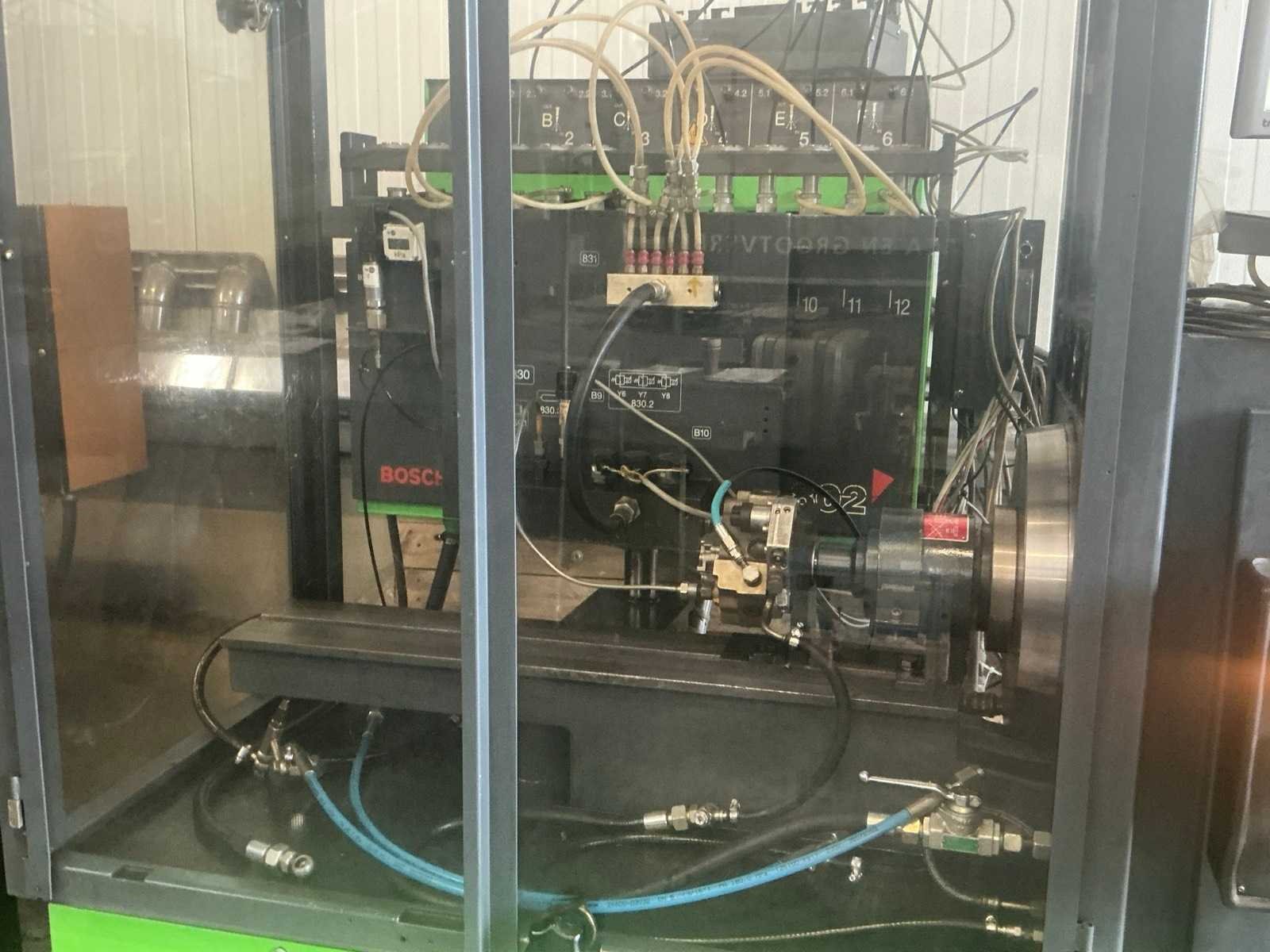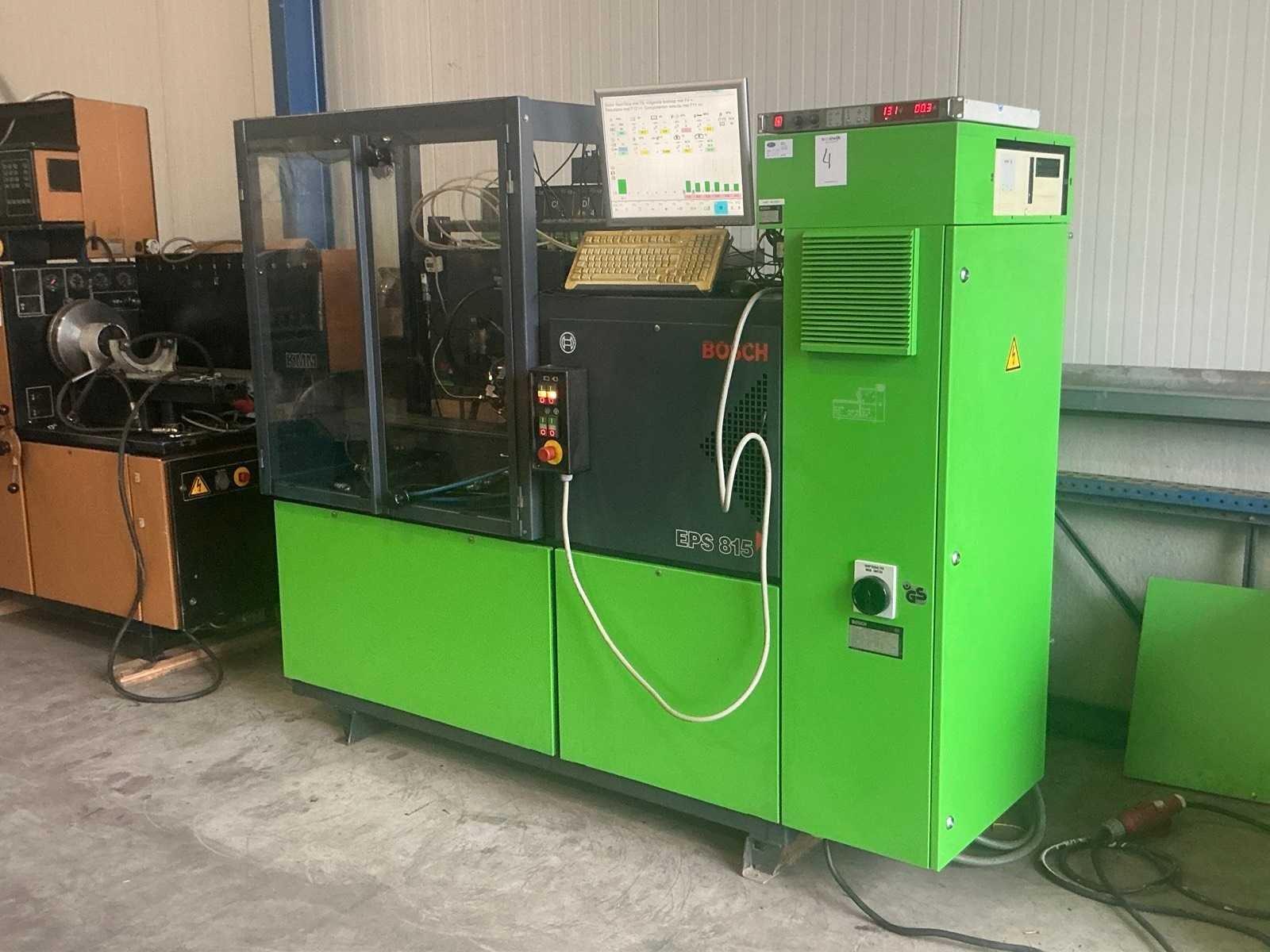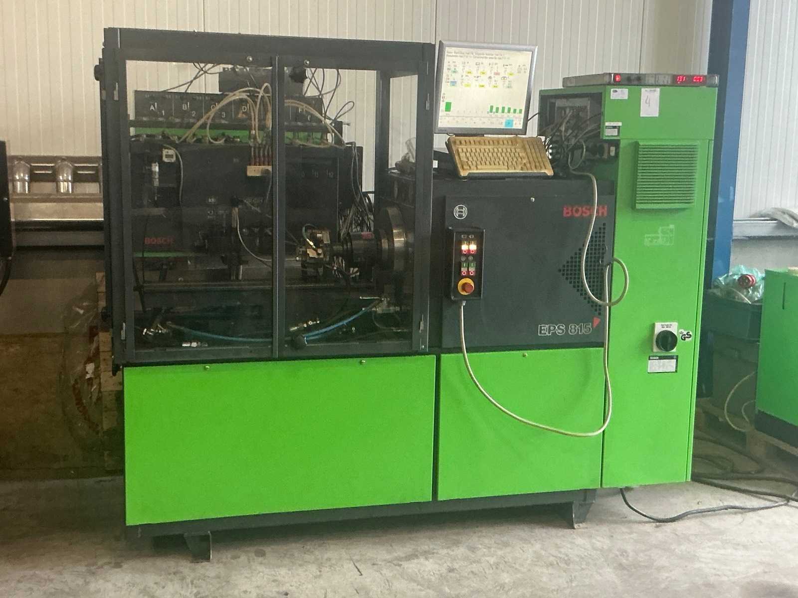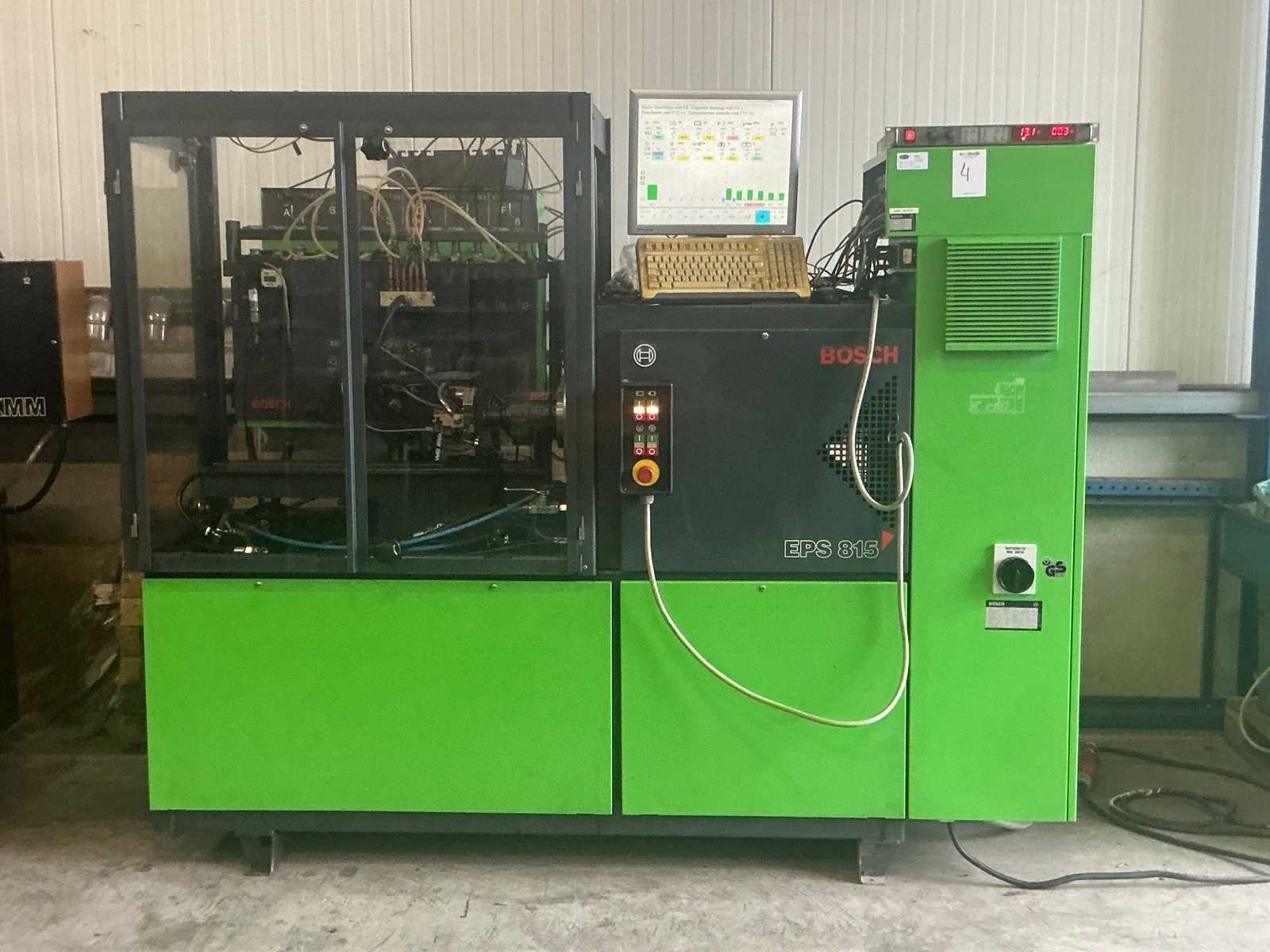 Met speciaal gereedschap en toebehoren; 1800 bar Cr pomp met injector; Testbank met 15 kW vermogen, 12 meetpunten, doorstroomwaterkoeling; KMA flowmeetsysteem met 2 flowmeters. De testbank heeft een aparte smeeroliepomp met smeerolietoevoer Toerentalbereik van 0 tot 4000 f/min. De testbank heeft een aparte smeeroliepomp met smeerolietoevoer Apparatuur: - Bosch Cr pompbesturingstest - Bosch magneetspoelinjector testen, codering - optioneel testen van piëzo-injectoren - optie voor reparatie en testen van CP2-pompen Het testen en coderen wordt uitgevoerd met behulp van Bosch fabriekssoftware en -database. Bosch Esi-abonnement vereist. De testbank is in goede staat en is regelmatig gekalibreerd; onlangs pas onderhoud gehad. Merk: Bosch Type: EPS 815 Bouwjaar: 2001 Aansluiting: 380V Totale afmeting L: 2400mm Totale afmeting Breedte: 1550mm Totale afmeting Hoogte: 1900mm