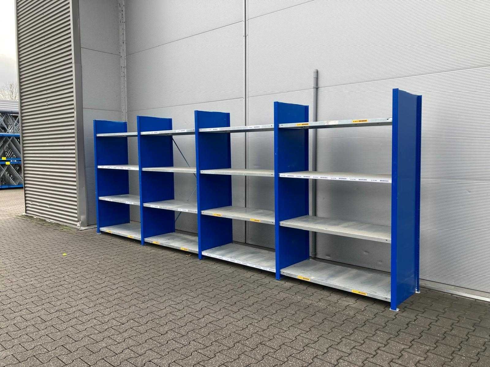 Legbord 1300x600mm; staander 2500x600mm; Gebruikt; gebundeld voor transport; 8227*6 / 8226* 40 Merk: META Aantal secties: 5 Sectie afm. b: 1300mm Sectie diepte: 600mm Sectie afm. h: 2500mm Aantal staanders: 6 Aantal legborden: 40
