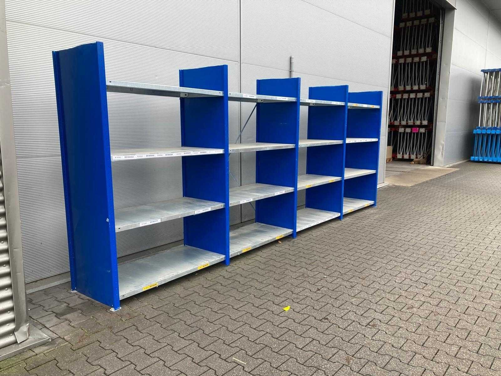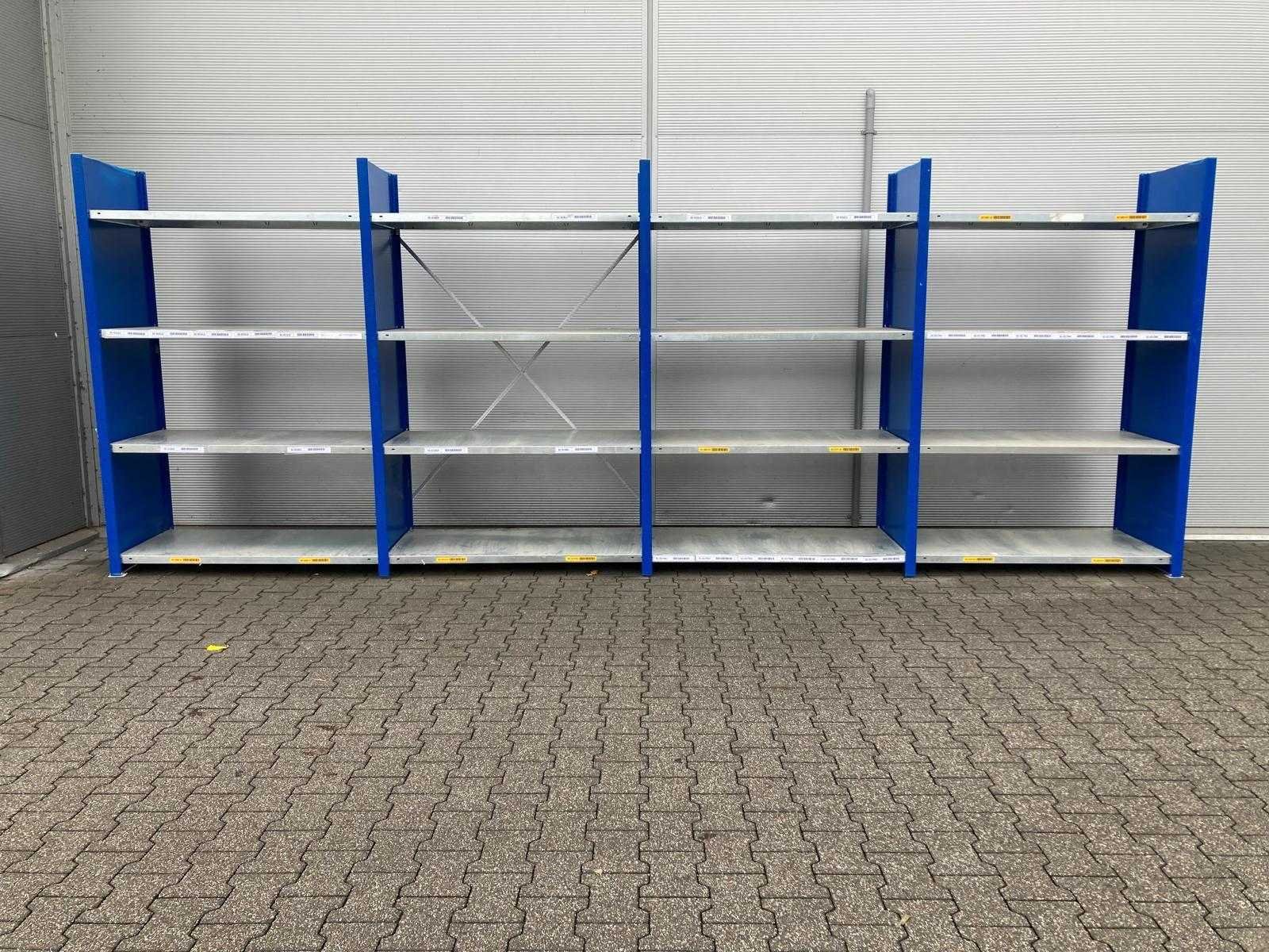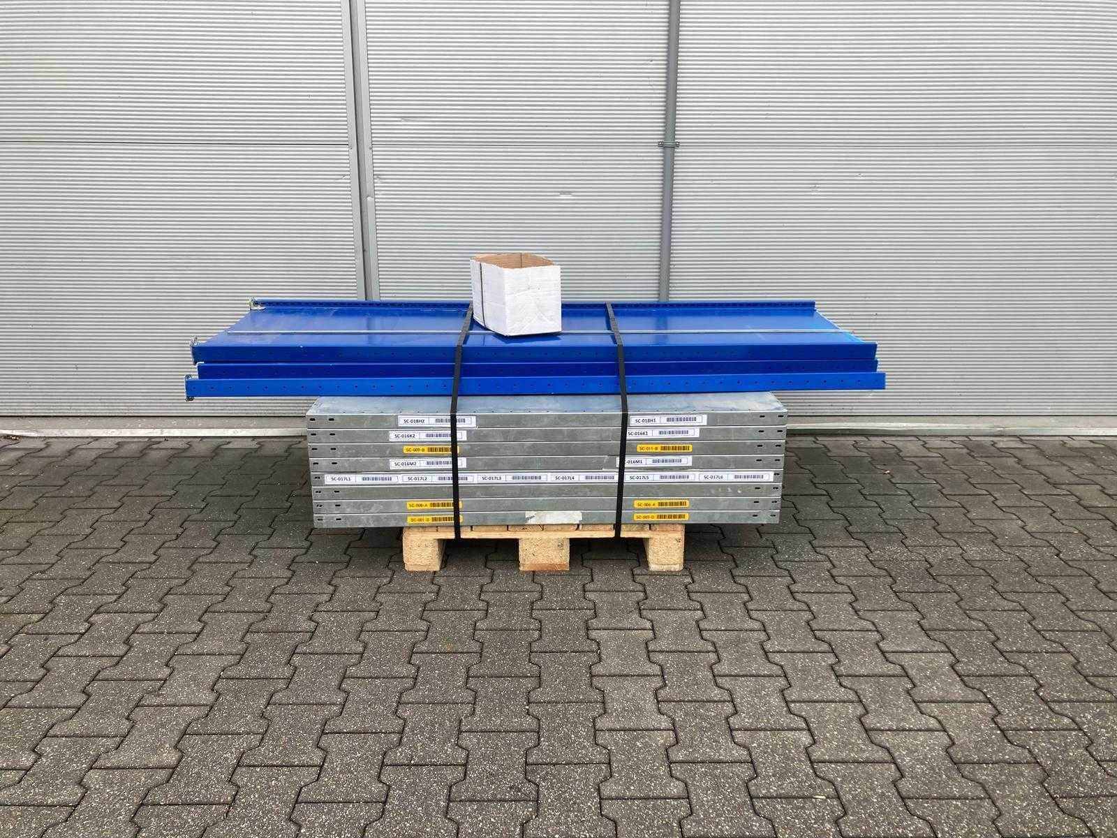 Legbord 1300x600mm; staander 2500x600mm; Gebruikt; gebundeld voor transport; 8227*6 / 8226* 40 Merk: META Aantal secties: 5 Sectie afm. b: 1300mm Sectie diepte: 600mm Sectie afm. h: 2500mm Aantal staanders: 6 Aantal legborden: 40