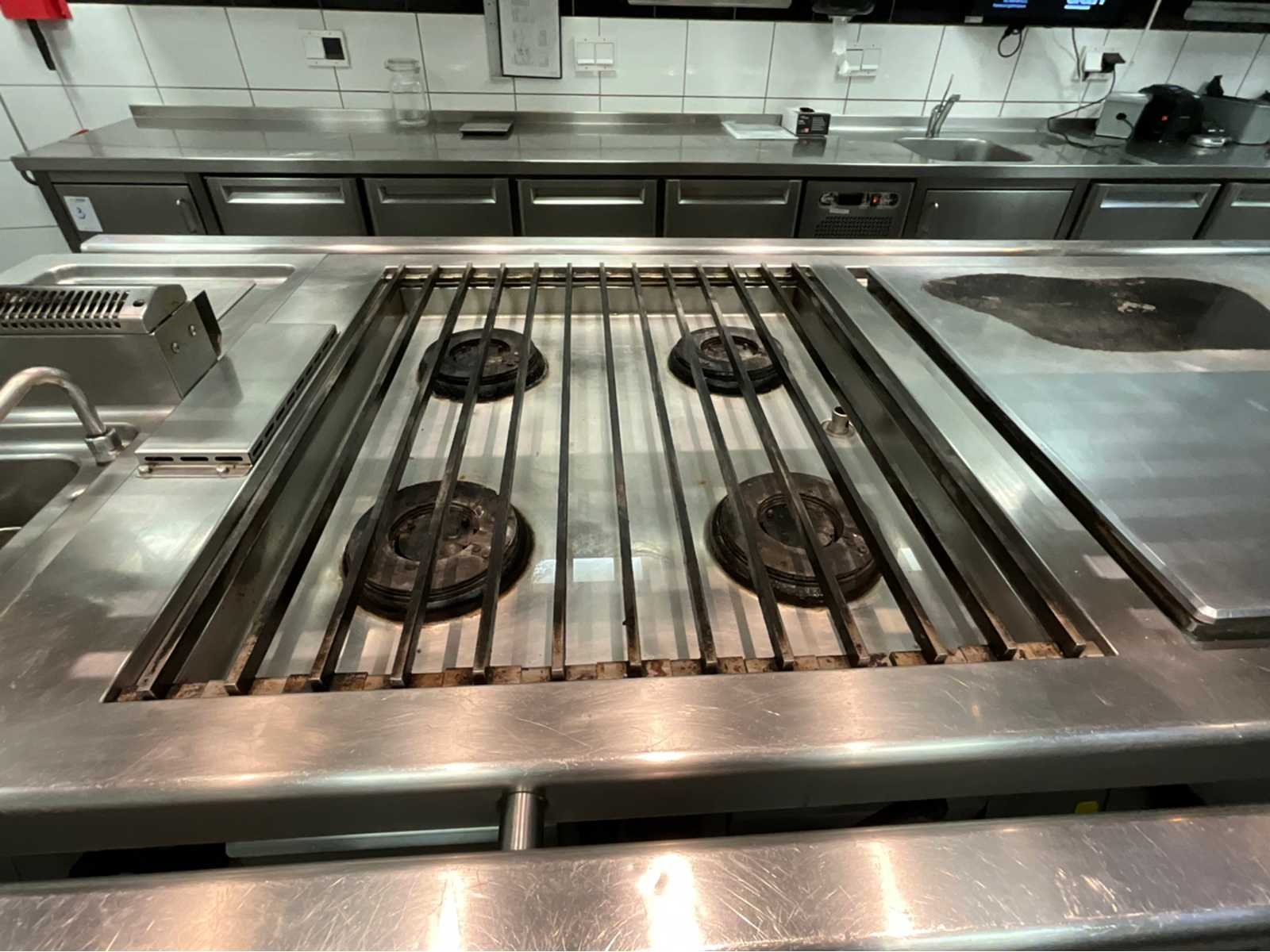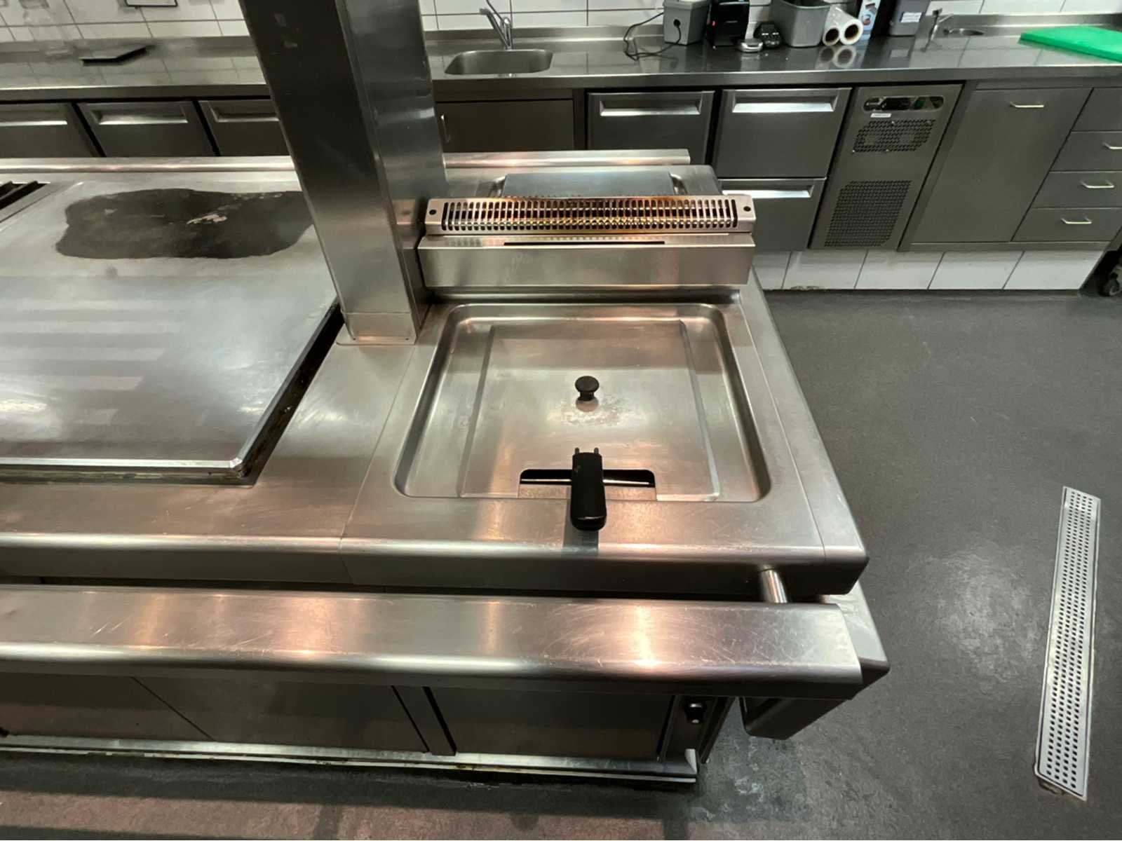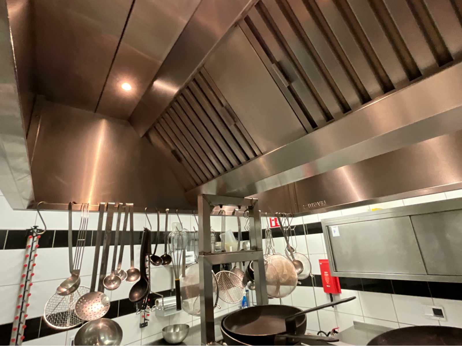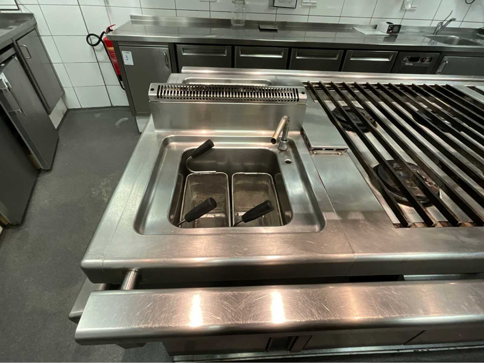 Voorzien van friteuse (met olie), bakplaat, 4-pits gasfornuis, pastakoker en Leventi afzuigkap (3500x1600x700 mm) Zonder keukengerei. Totale afmeting Breedte: 1350mm Totale afmeting L: 3300mm Totale afmeting Hoogte: 970mm