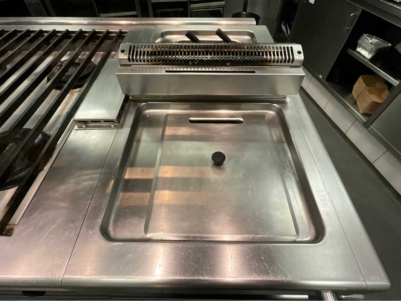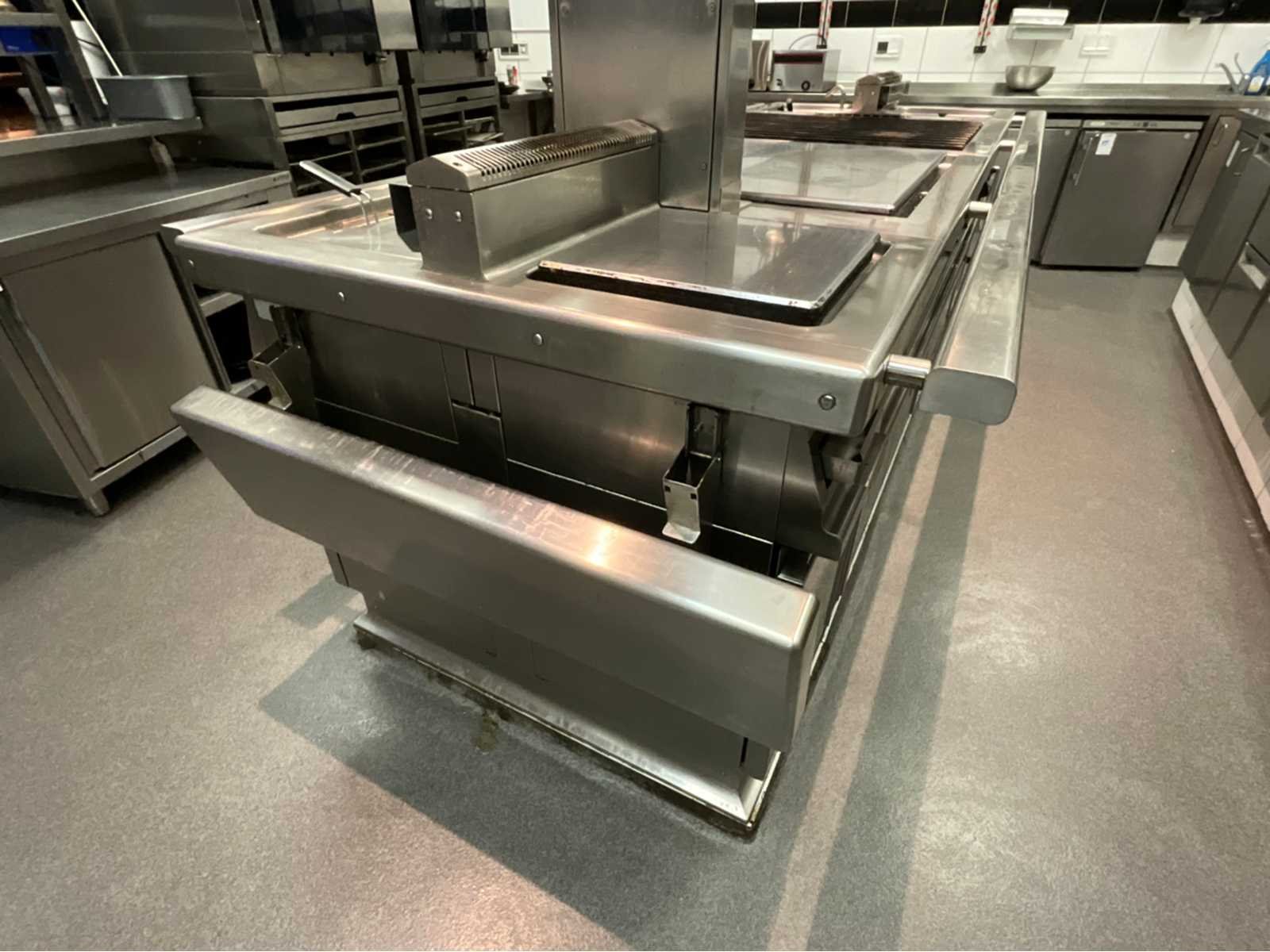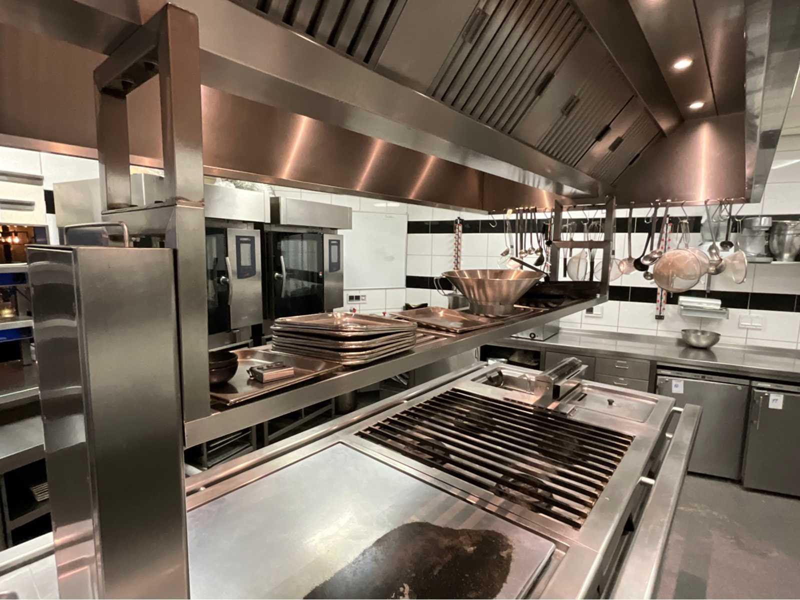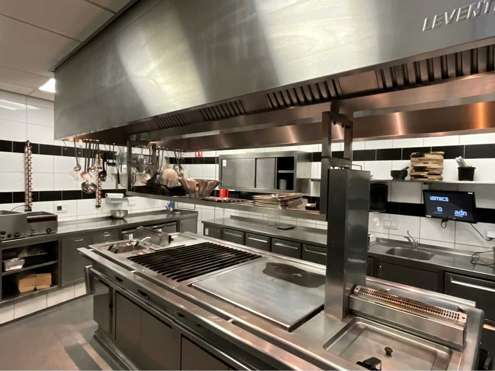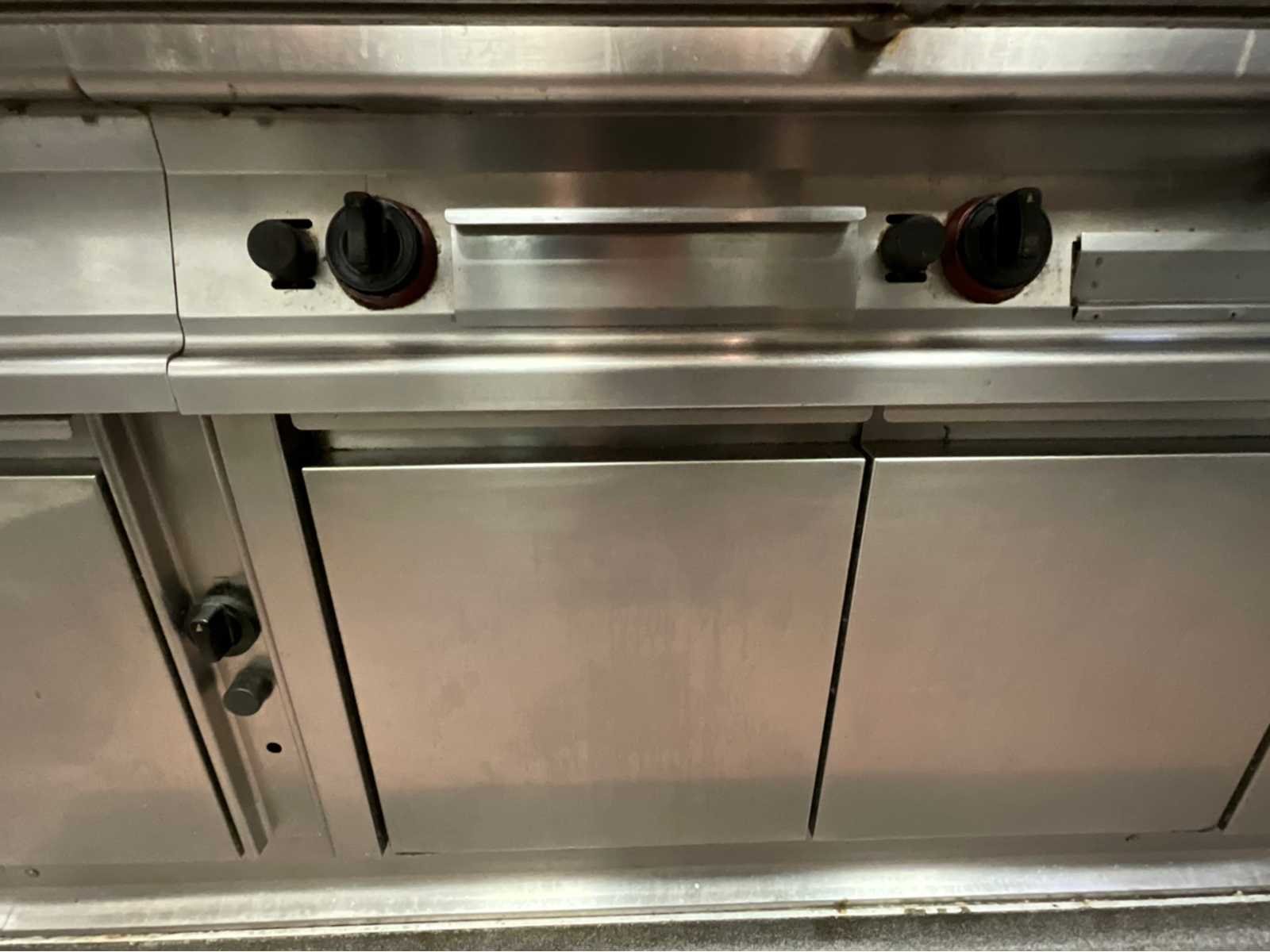 Voorzien van friteuse (met olie), bakplaat, 4-pits gasfornuis, pastakoker en Leventi afzuigkap (3500x1600x700 mm) Zonder keukengerei. Totale afmeting Breedte: 1350mm Totale afmeting L: 3300mm Totale afmeting Hoogte: 970mm