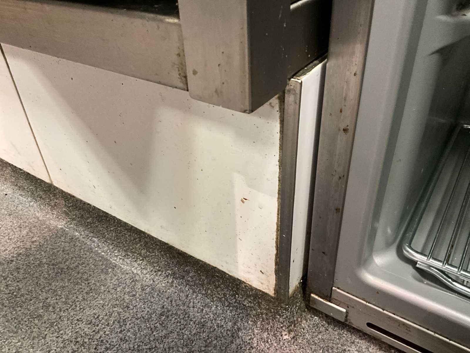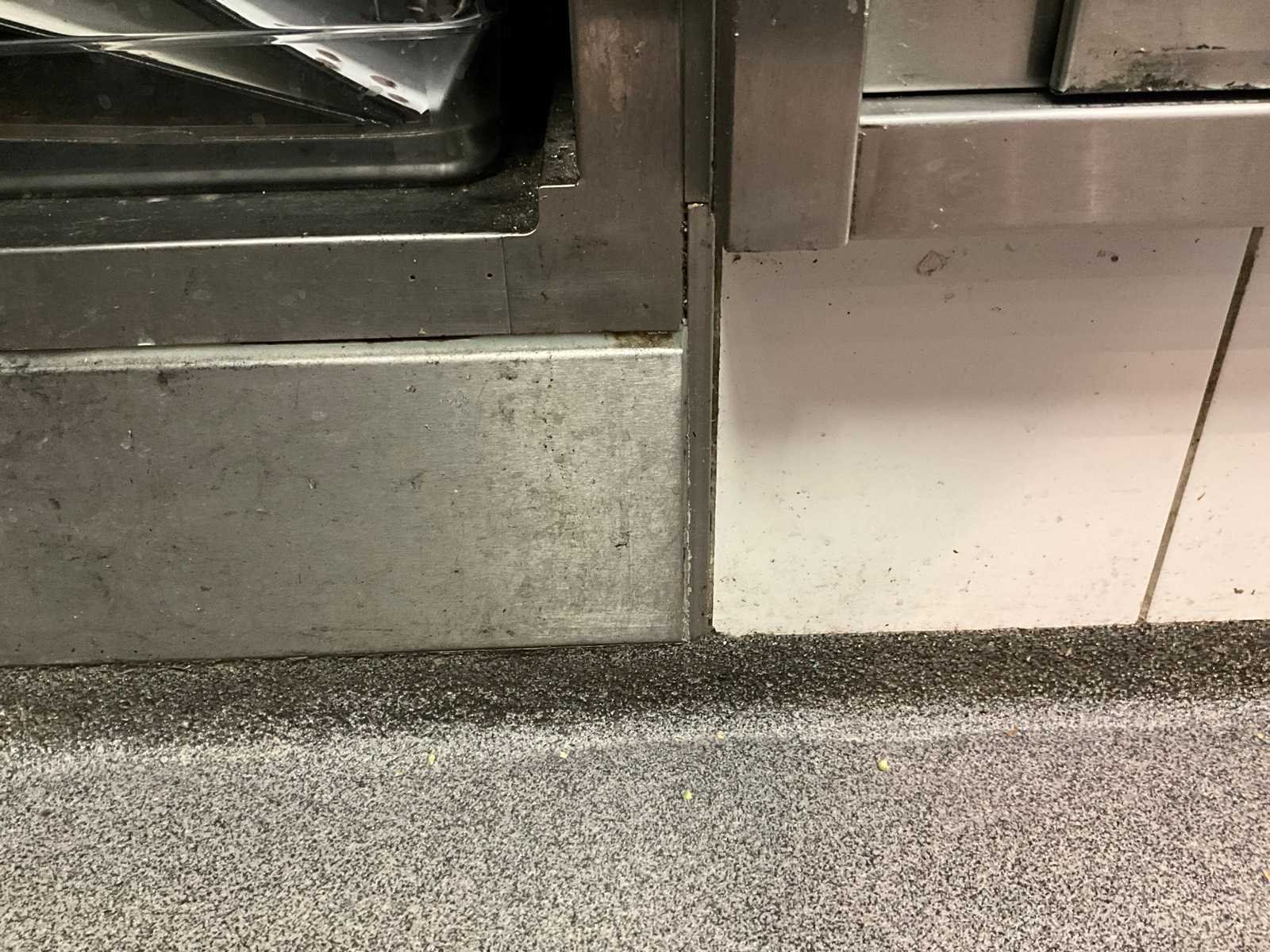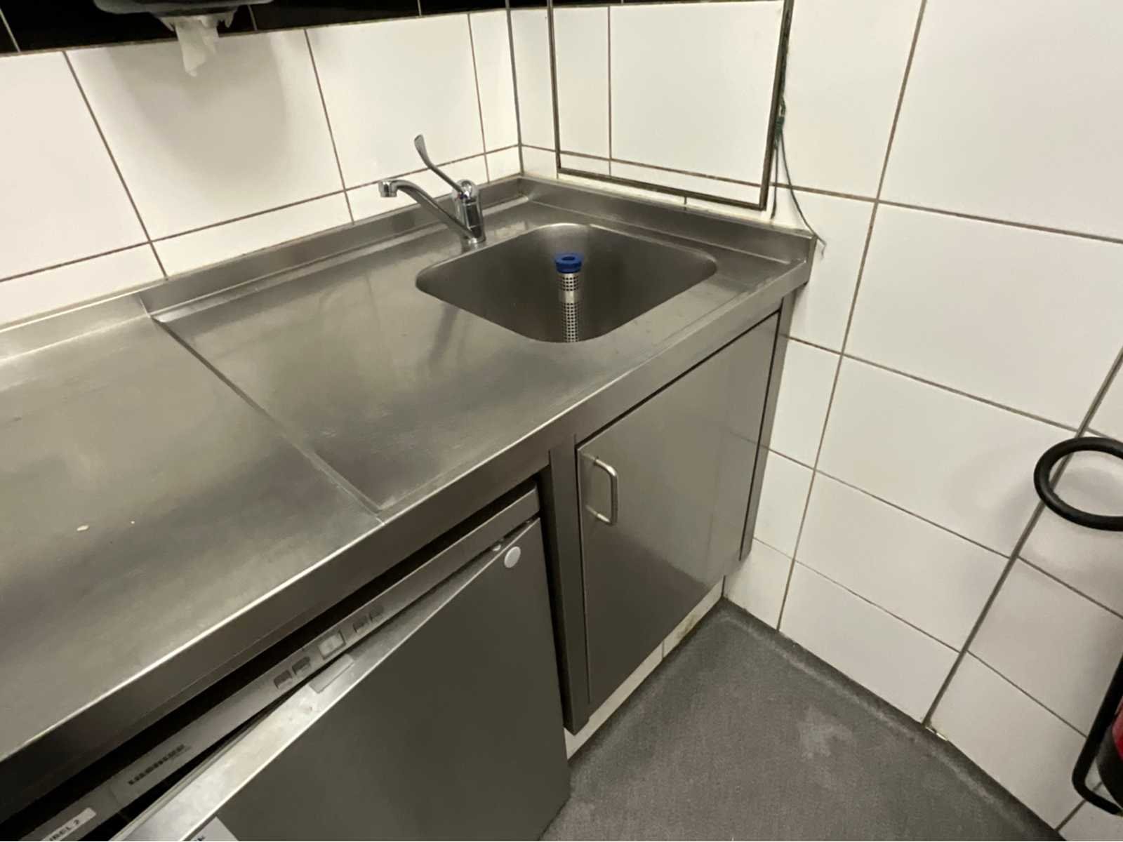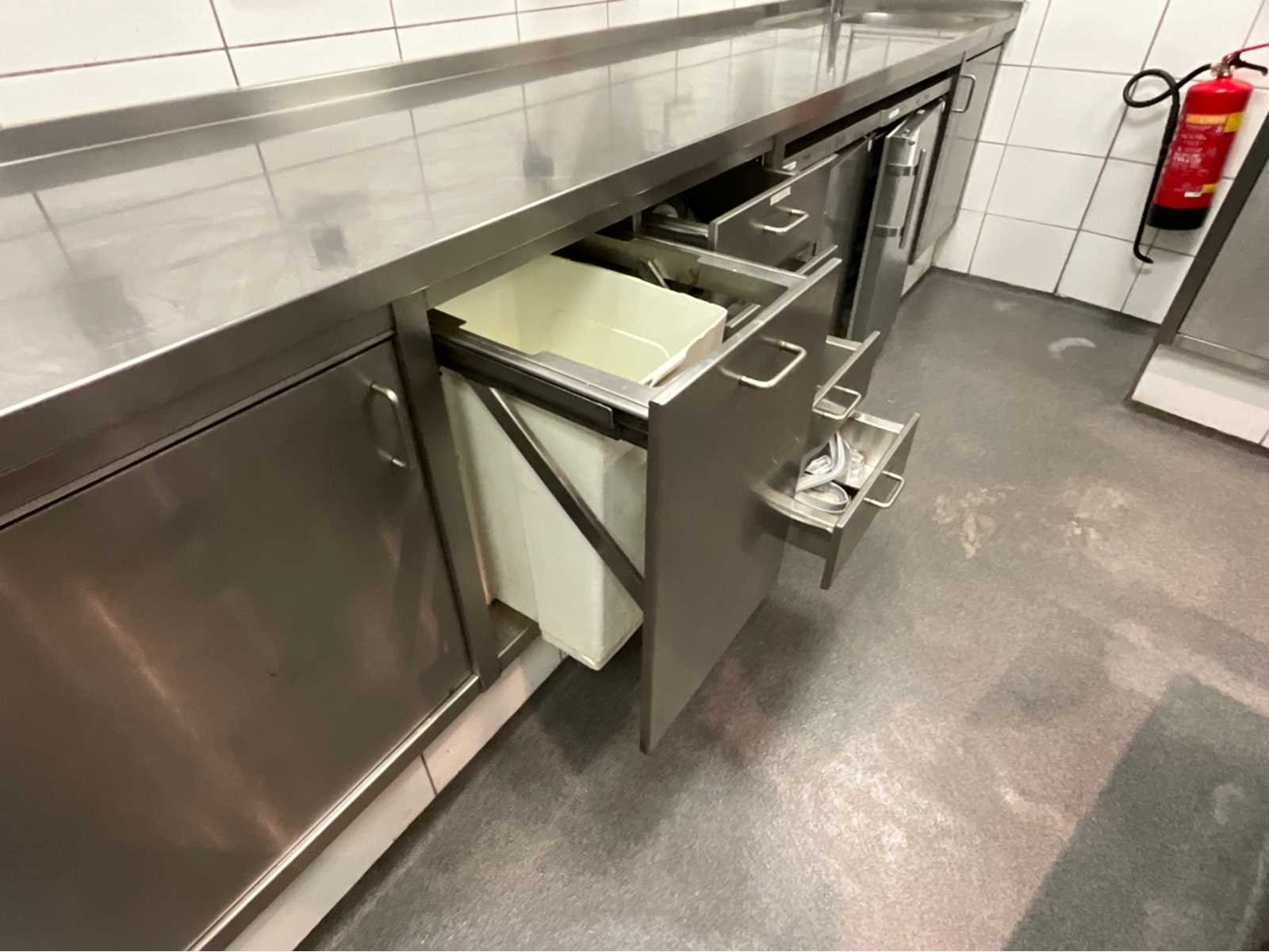 Voorzien van gasfriteuse, schuifdeuren, 4 lades, prullenbak en 1 kastdeur. Koelkasten niet inbegrepen. Gemonteerd op stenen en afgekit. Materiaal: RVS Totale afmeting Breedte: 4400mm Totale afmeting L: 700mm Totale afmeting Hoogte: 700mm