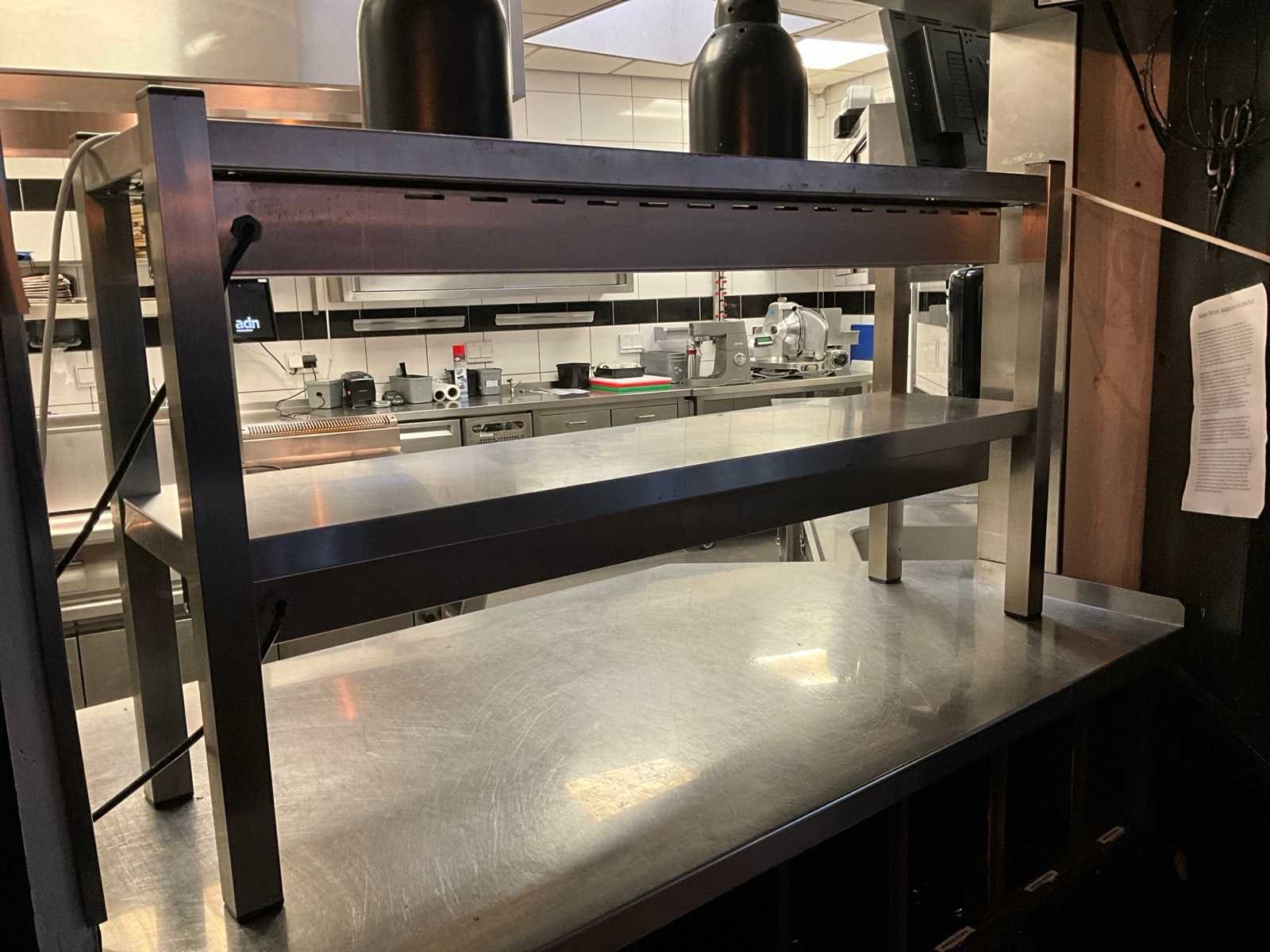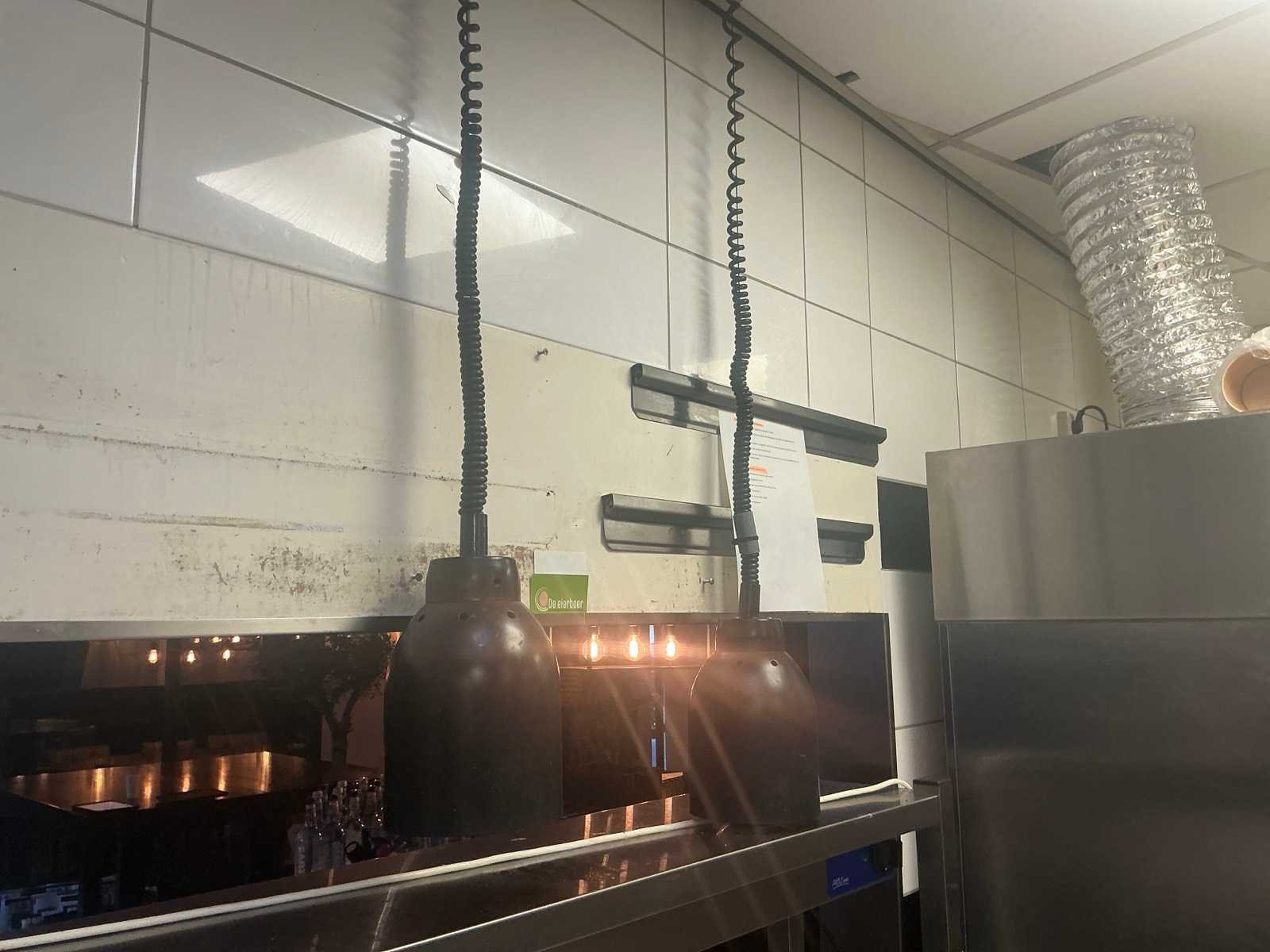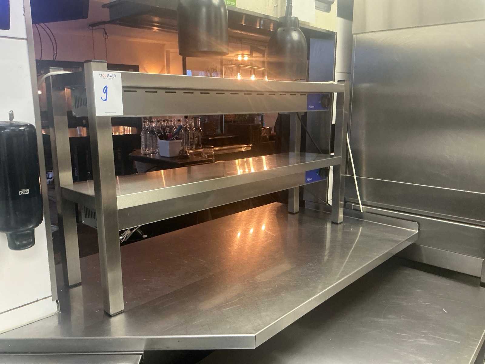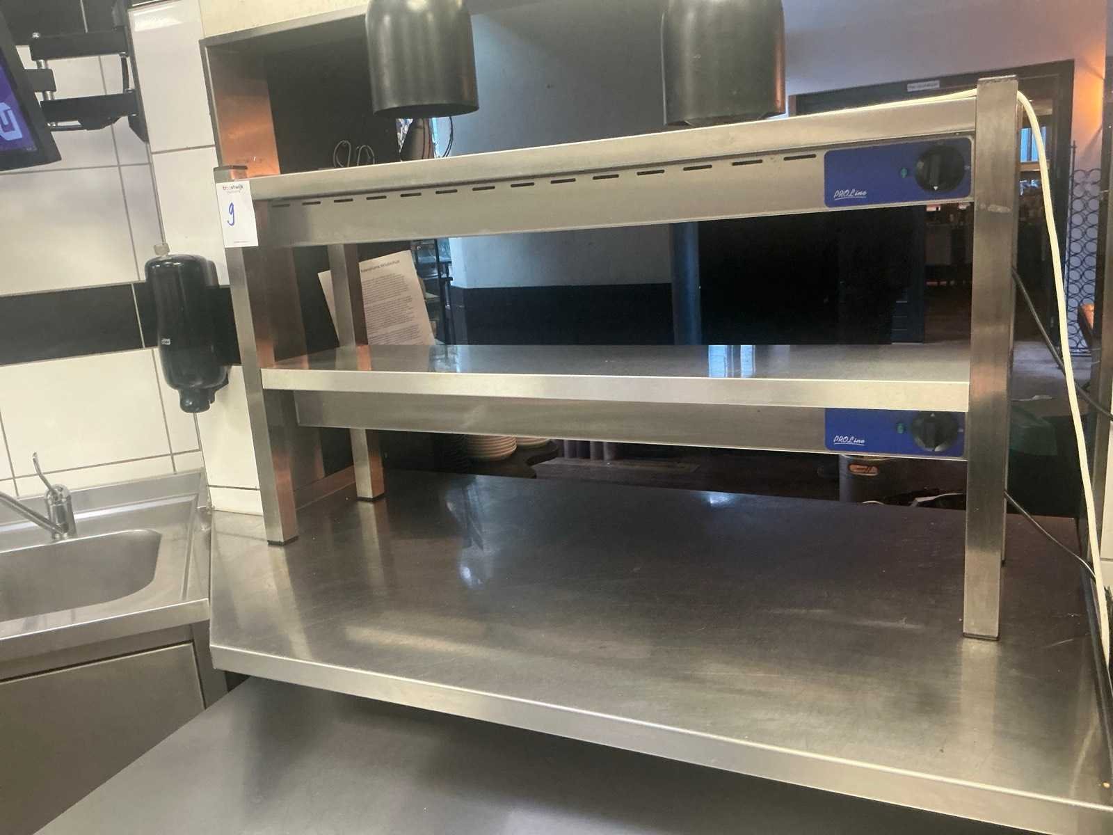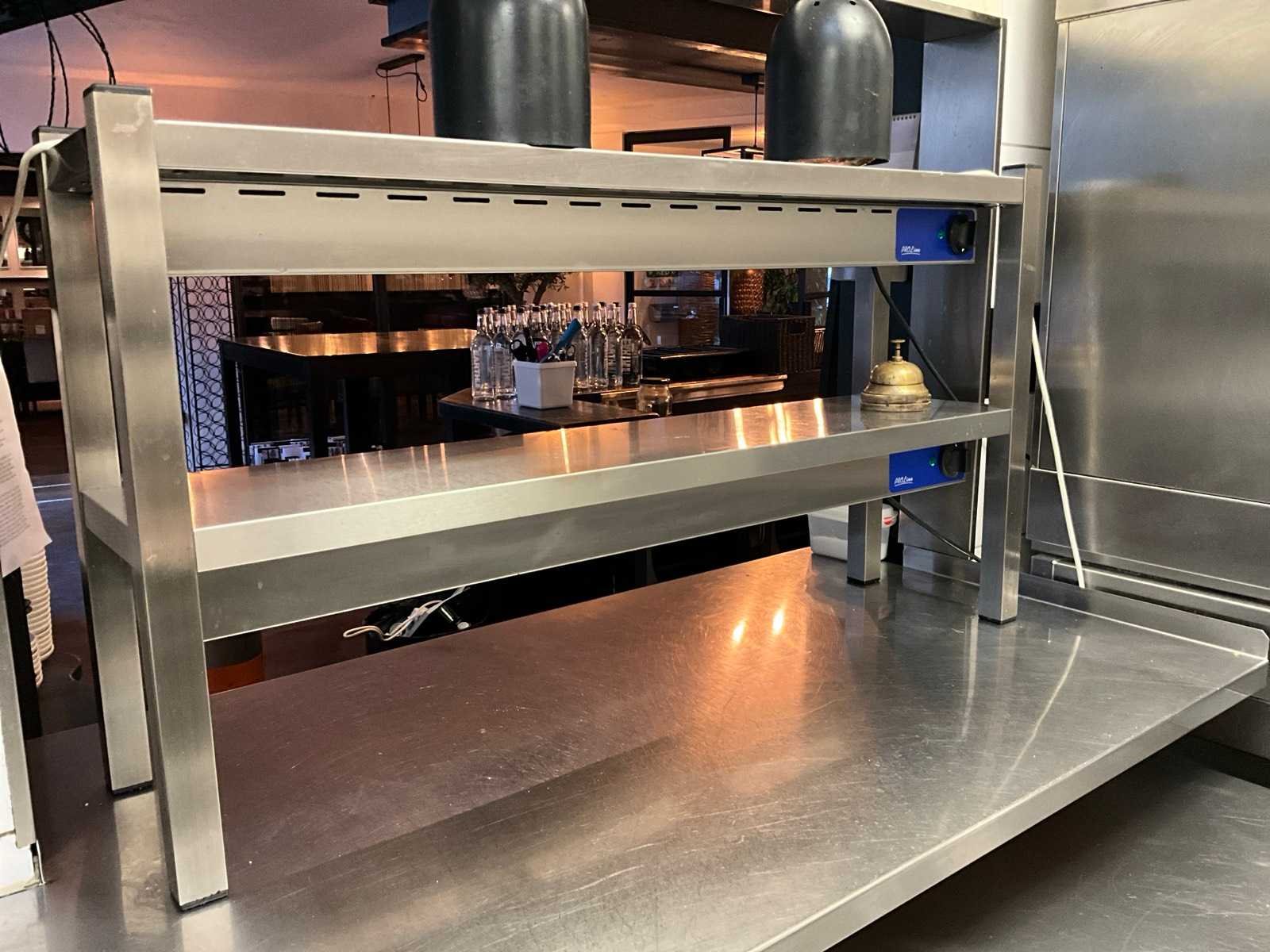 Met 2x opwarm lampen Merk: Pro Line Totale afmeting L: 30cm Totale afmeting Breedte: 120cm Totale afmeting Hoogte: 66cm Aansluiting: 230V Rvs: true