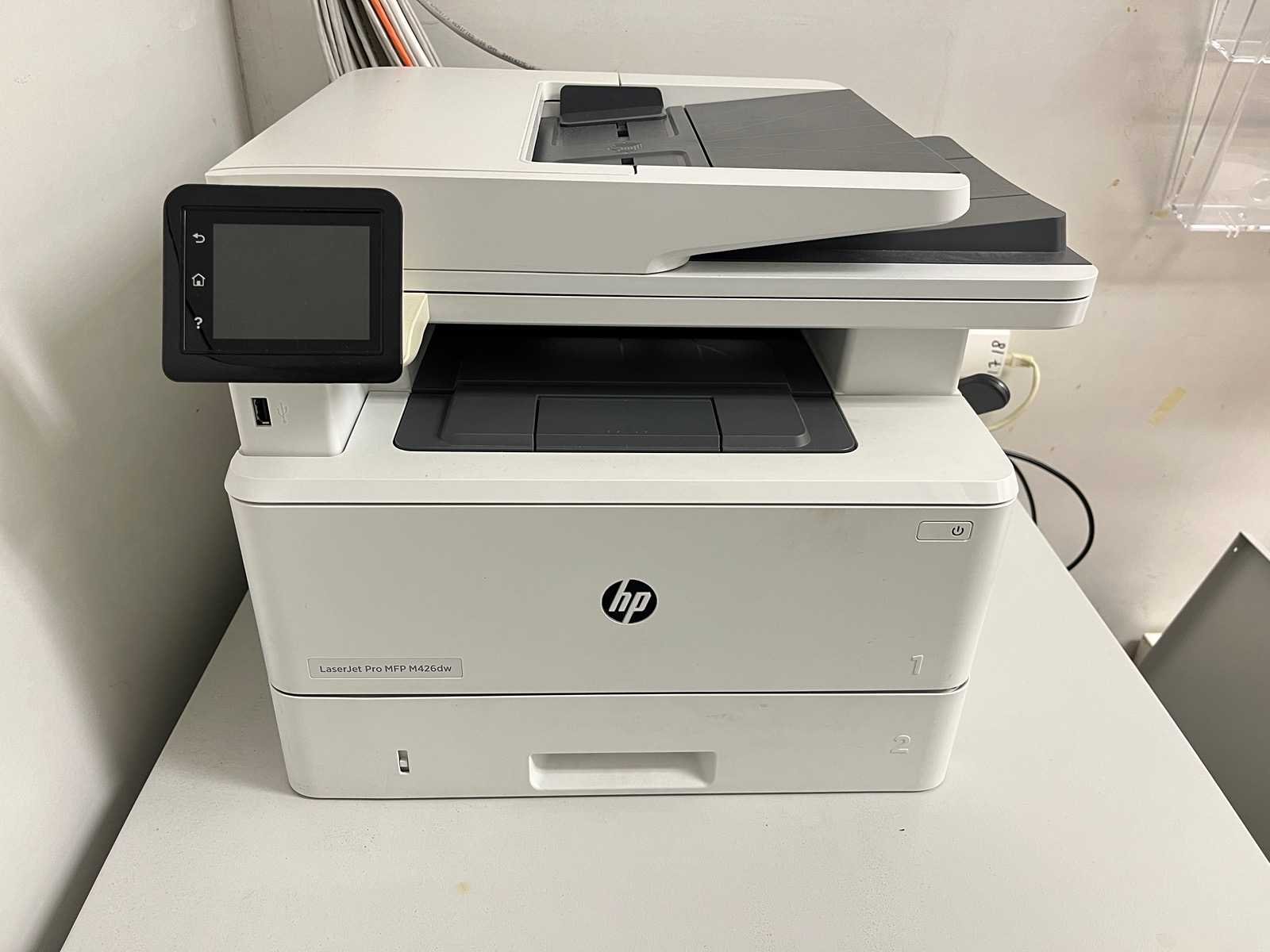 Printer voor printen, kopiëren, scannen en faxen, Automatische documentinvoer voor 50 vellen; Dubbelzijdig printen; Dubbelzijdig scannen Merk: HP Type: MFP M426dw Lengte: 43cm Breedte: 40cm Hoogte: 33cm