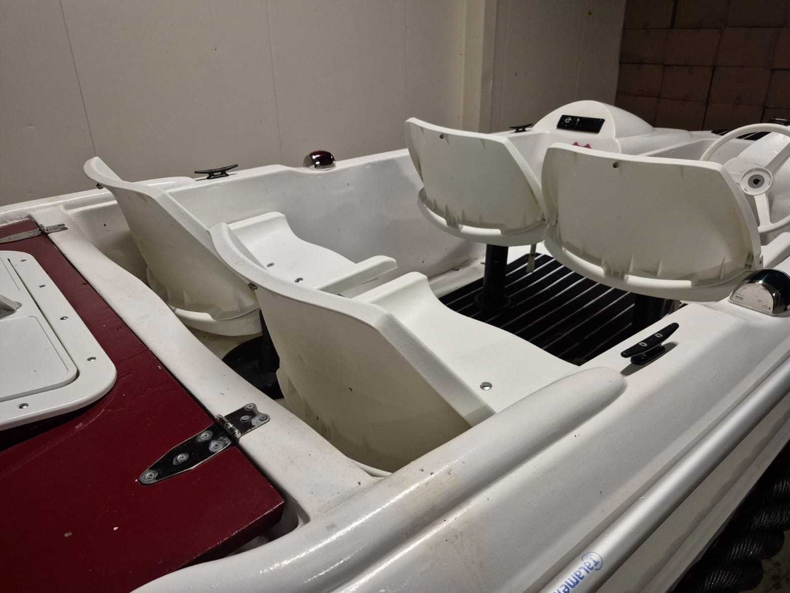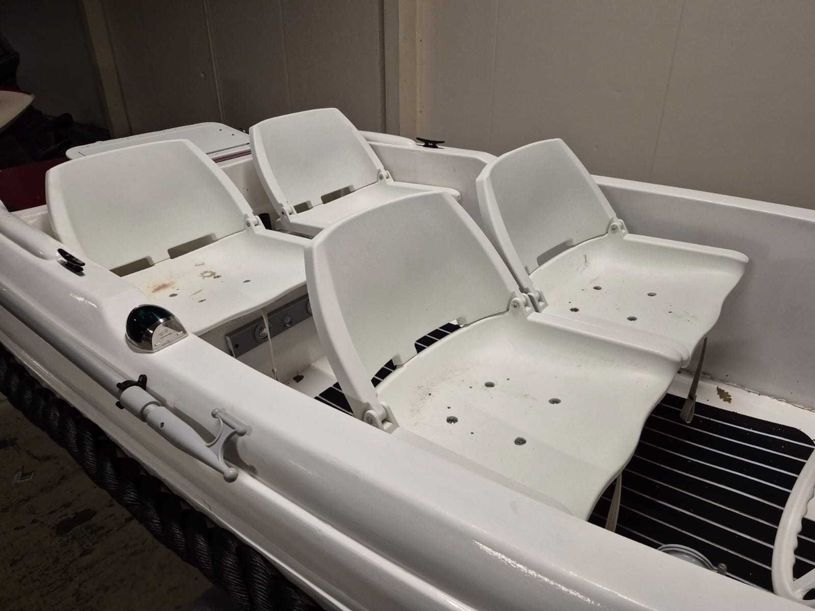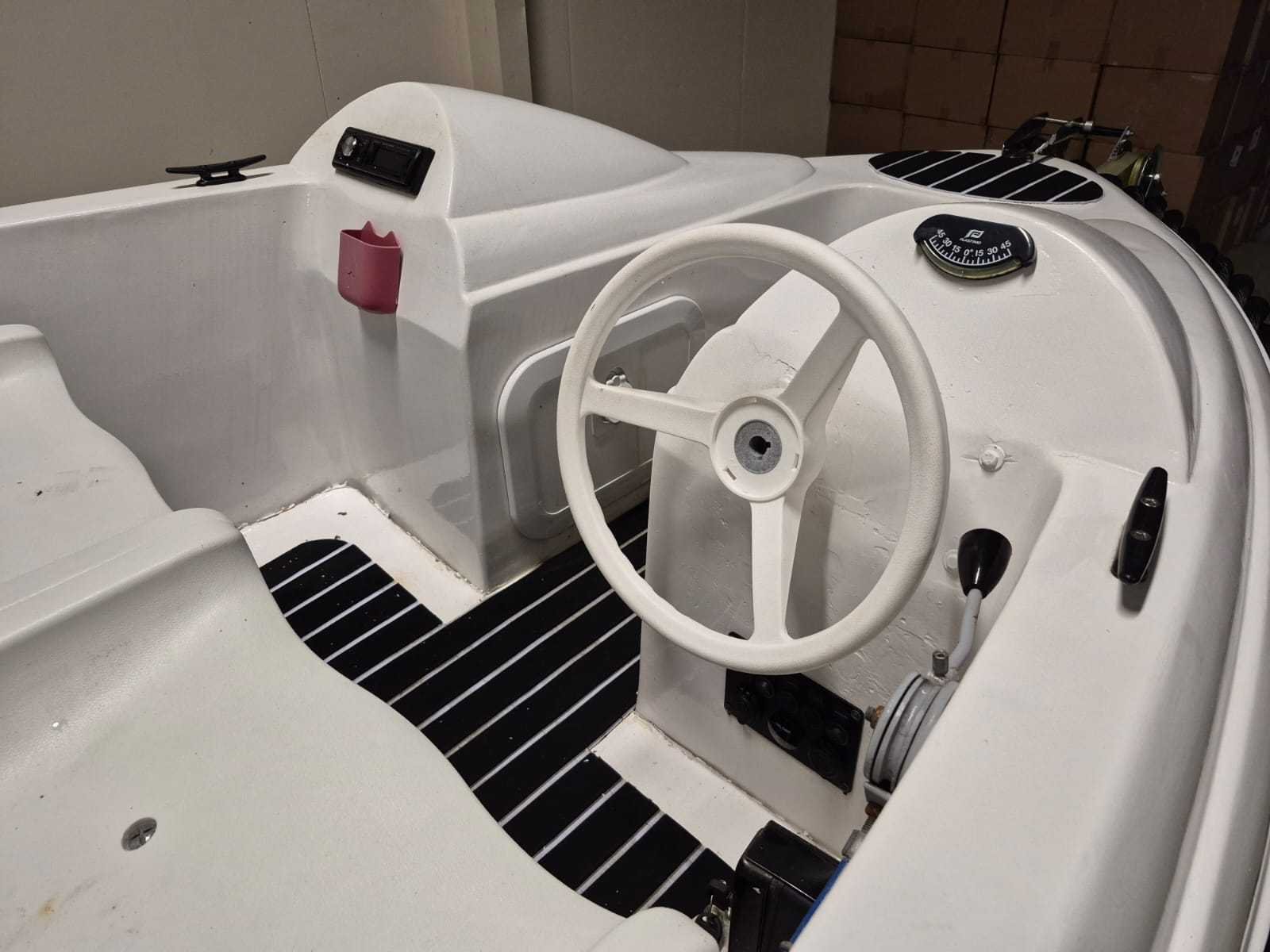 Console boot lengte 3,90 mtr. Breedte 1,60 mtr. Motor: Loncin 389cc Benzine inclusief Kanteltrailer Robuuste, zwarte stootrand rondom Elektrische start Autoradio Schakelpaneel heeft meerdere tuimelschakelaars met ledindicatie. Er zijn aansluitingen voor 12V sigarettenaansteker en USB. Een ingebouwde voltmeter toont de DC-spanning. Het paneel is ontworpen om functies zoals claxon, verlichting en elektronica te bedienen. Rompmateriaal: Polyester Brandstof: Benzine Binnenboord: true