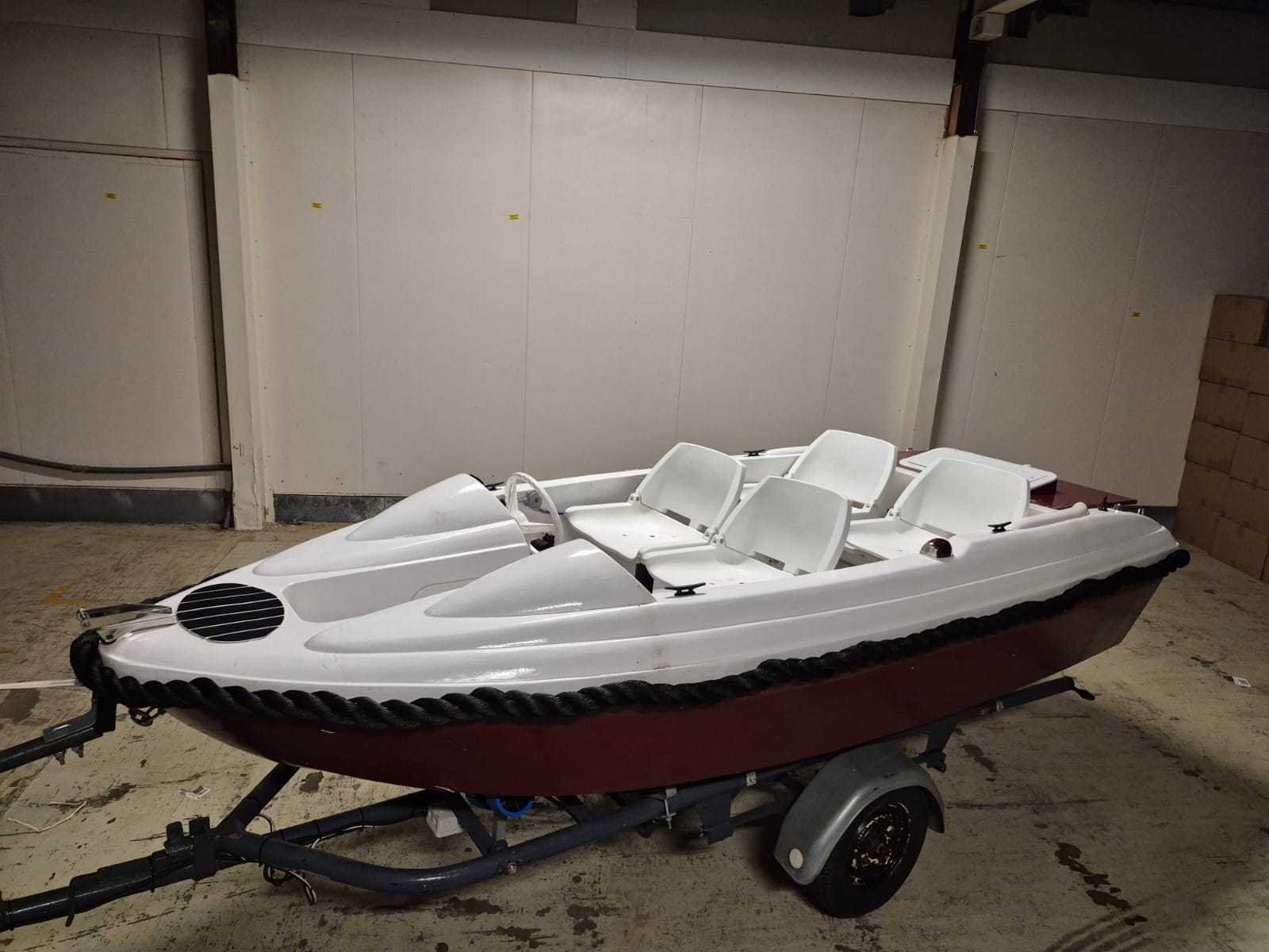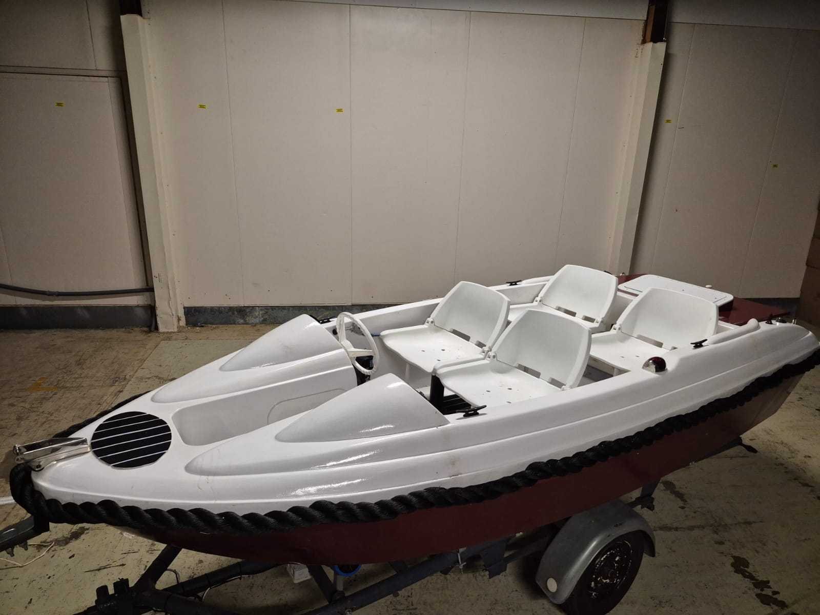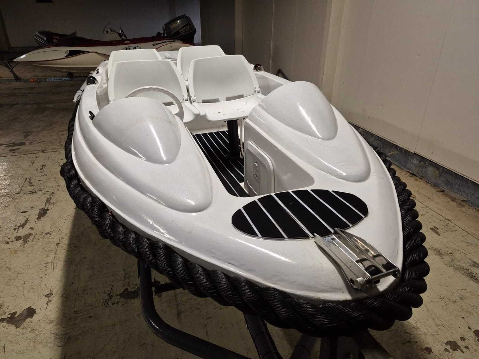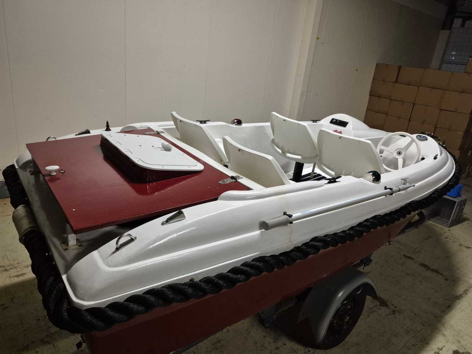 Console boot lengte 3,90 mtr. Breedte 1,60 mtr. Motor: Loncin 389cc Benzine inclusief Kanteltrailer Robuuste, zwarte stootrand rondom Elektrische start Autoradio Schakelpaneel heeft meerdere tuimelschakelaars met ledindicatie. Er zijn aansluitingen voor 12V sigarettenaansteker en USB. Een ingebouwde voltmeter toont de DC-spanning. Het paneel is ontworpen om functies zoals claxon, verlichting en elektronica te bedienen. Rompmateriaal: Polyester Brandstof: Benzine Binnenboord: true