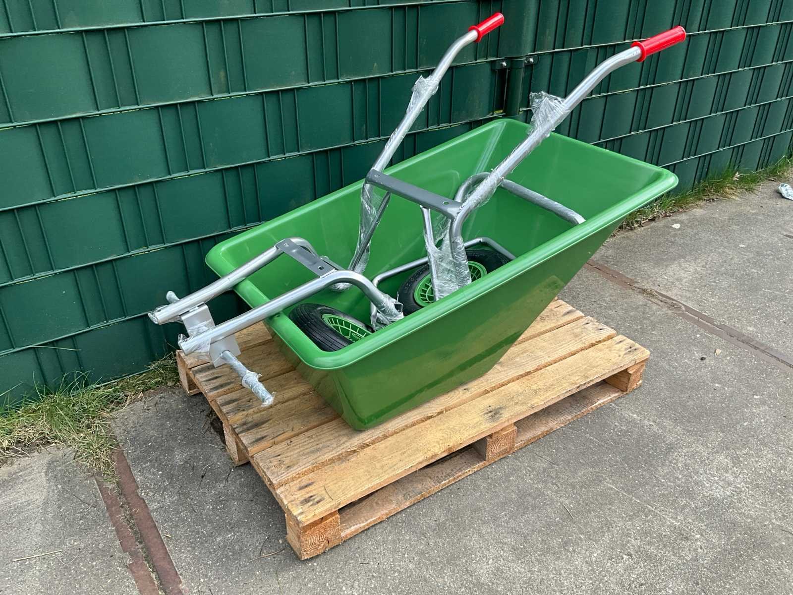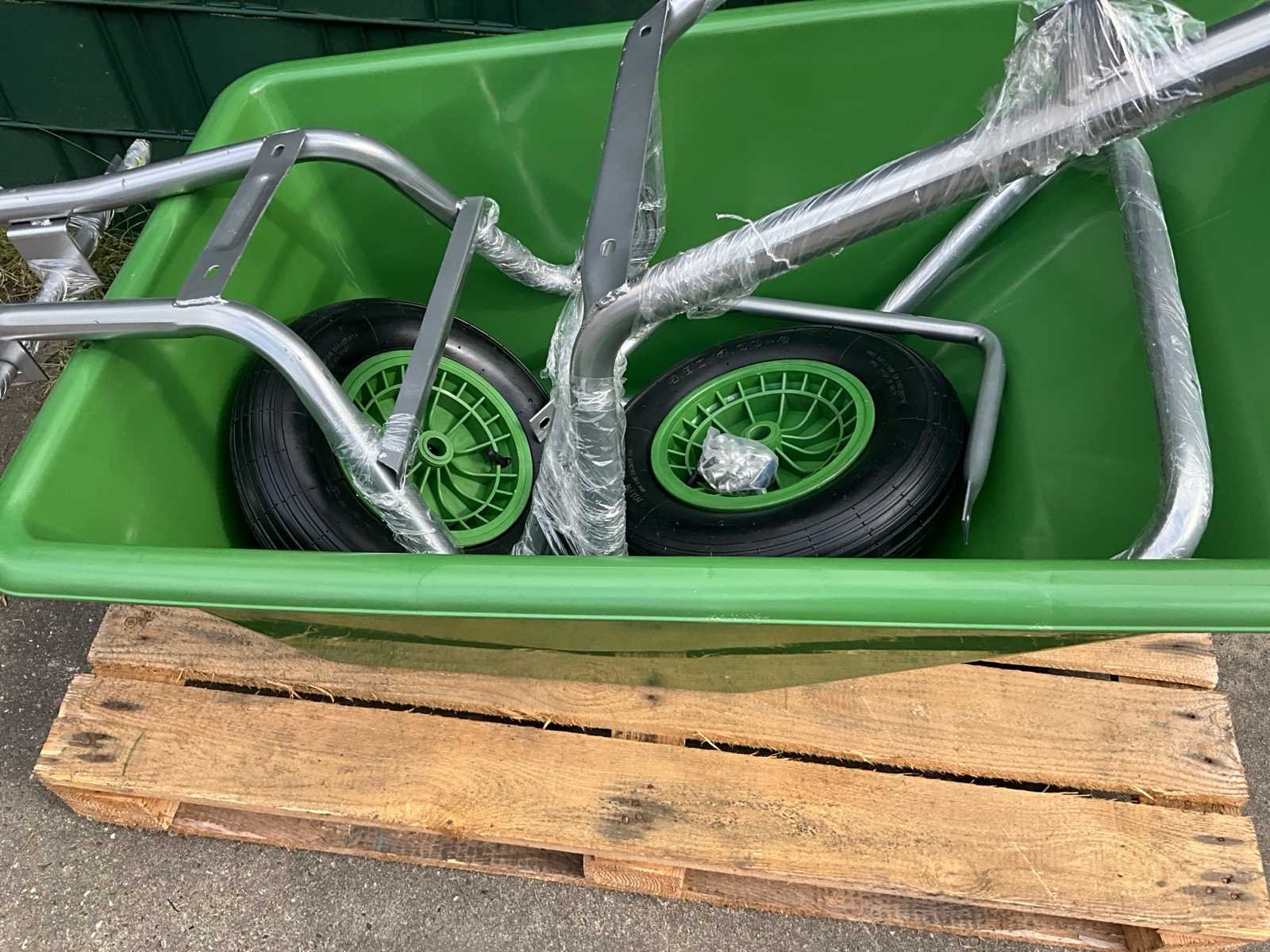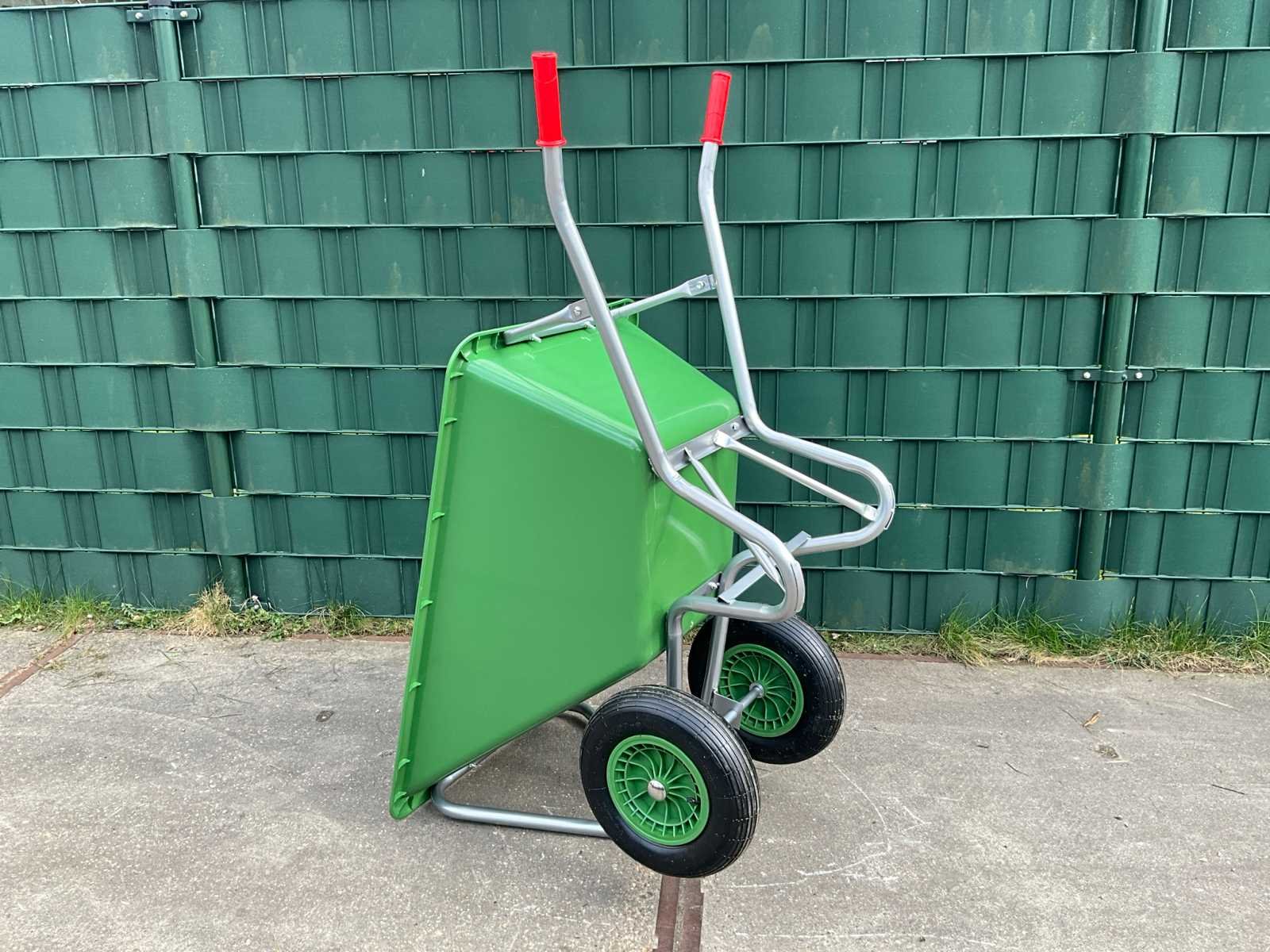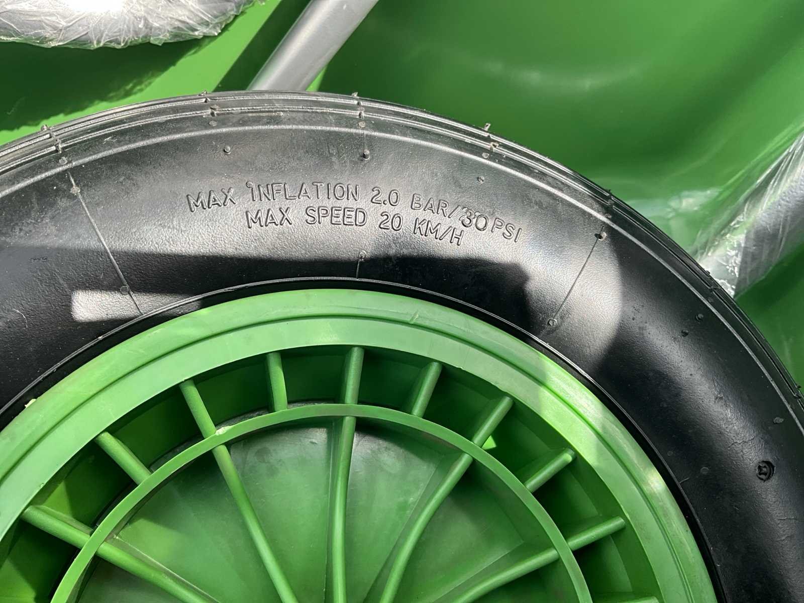Stevige kruiwagen met grote 160 liter bak en dubbel wiel voor extra stabiliteit; Verzinkt frame; Kunststof wielen met rollager en luchtbanden; 4.80/4.00-8; nylon tube; max inflation 2.0 bar maz snelheid 20 KM/H; Extra stevige kunststof bak; De maximum laadcapaciteit is 200 kg; Geleverd als bouwpakket zie laatste foto's Merk: HH Model: Poly 160 liter 2 wielen Kleur: Groen Gewicht: 18kg Lengte: 165cm Breedte: 71cm Hoogte: 80cm Materiaal: Kunststof / metaal