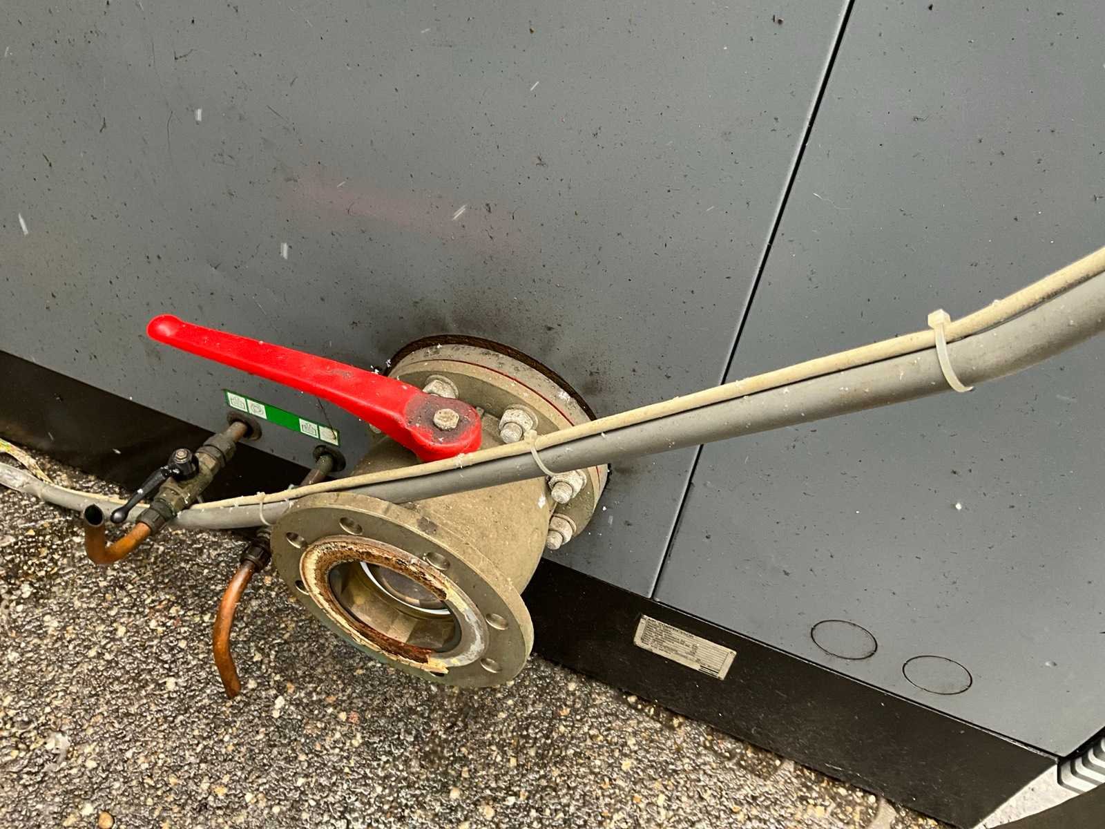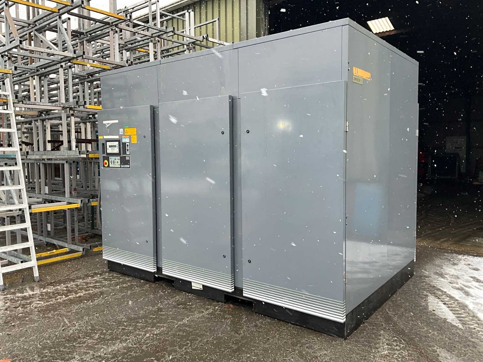 Merk: Atlas Copco Type: GA 200 W Bouwjaar: 1993 Serienummer: AIF 010554 Capaciteit.: 10bar Luchtstroom: 28860l/min Vermogen: 200kW Aansluiting: 400V Totale afmeting L: 2300mm Totale afmeting Breedte: 2130mm Totale afmeting Hoogte: 2490mm