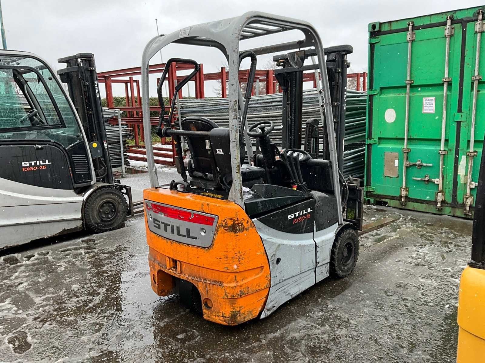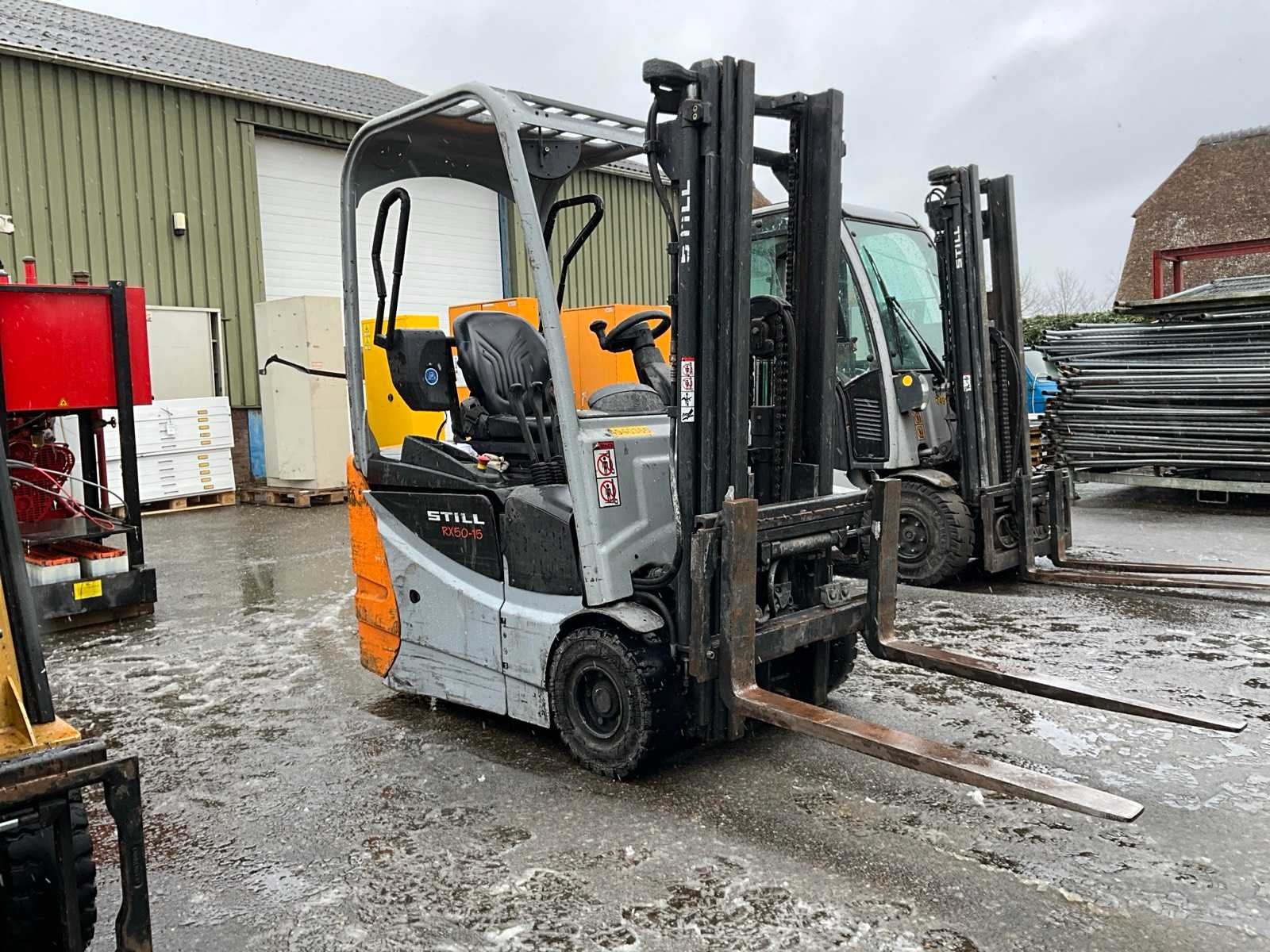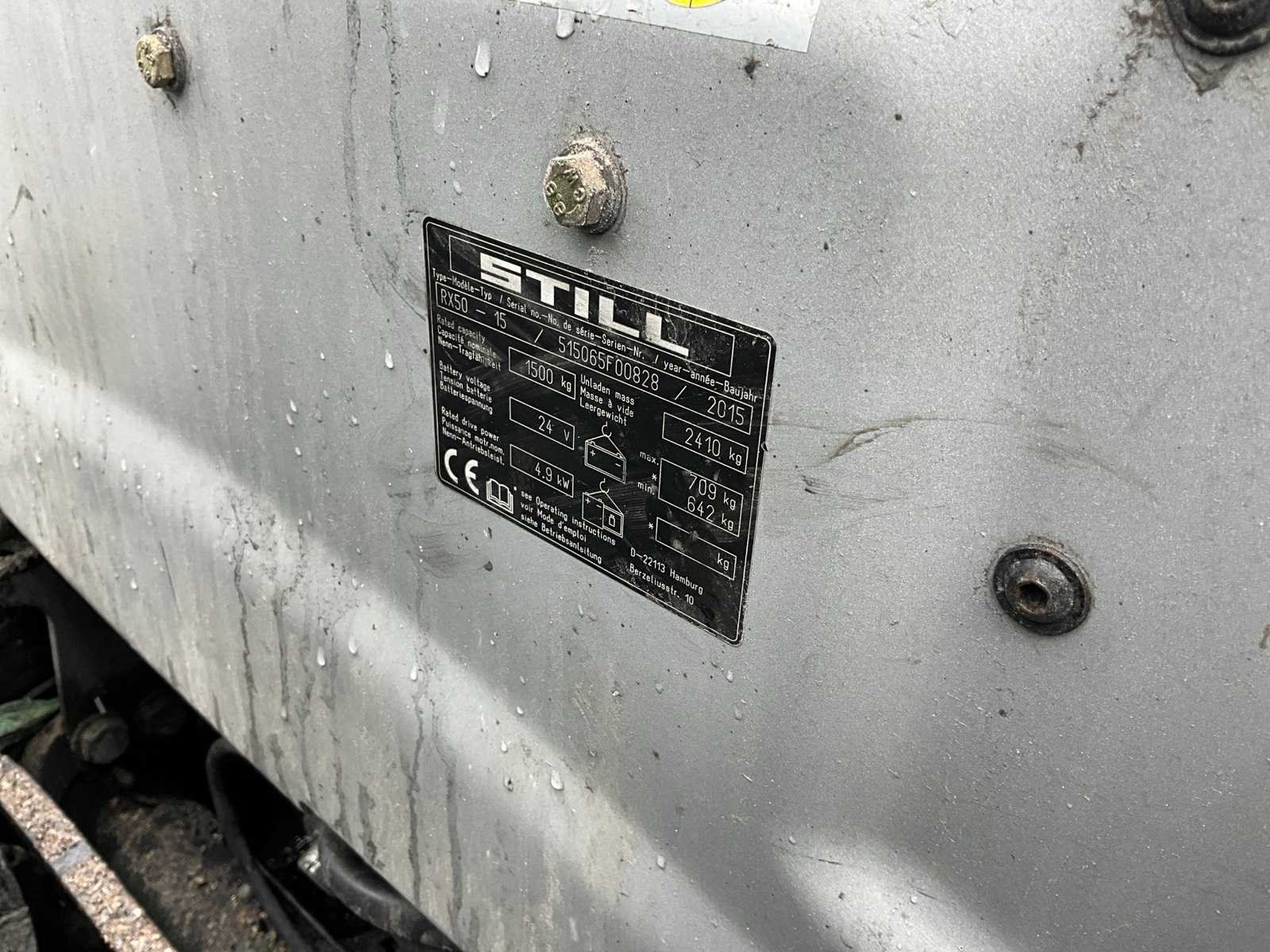 Merk: Still Type: RX50-15 Bouwjaar: 2015 Serienummer: 515060F00828 Brandstof: Elektrisch Mast: Duplex Soort band: Volrubber banden Aantal wielen: 3 Accu lader: true Side-shift: true Eigen gewicht: 3119kg Hefvermogen: 1500kg Lepellengte: 1000mm Max. hefhoogte: 6520mm Minimale doorrijhoogte: 2030mm Totale afmeting L: 2880mm Totale afmeting Breedte: 1000mm Totale afmeting Hoogte: 2030mm