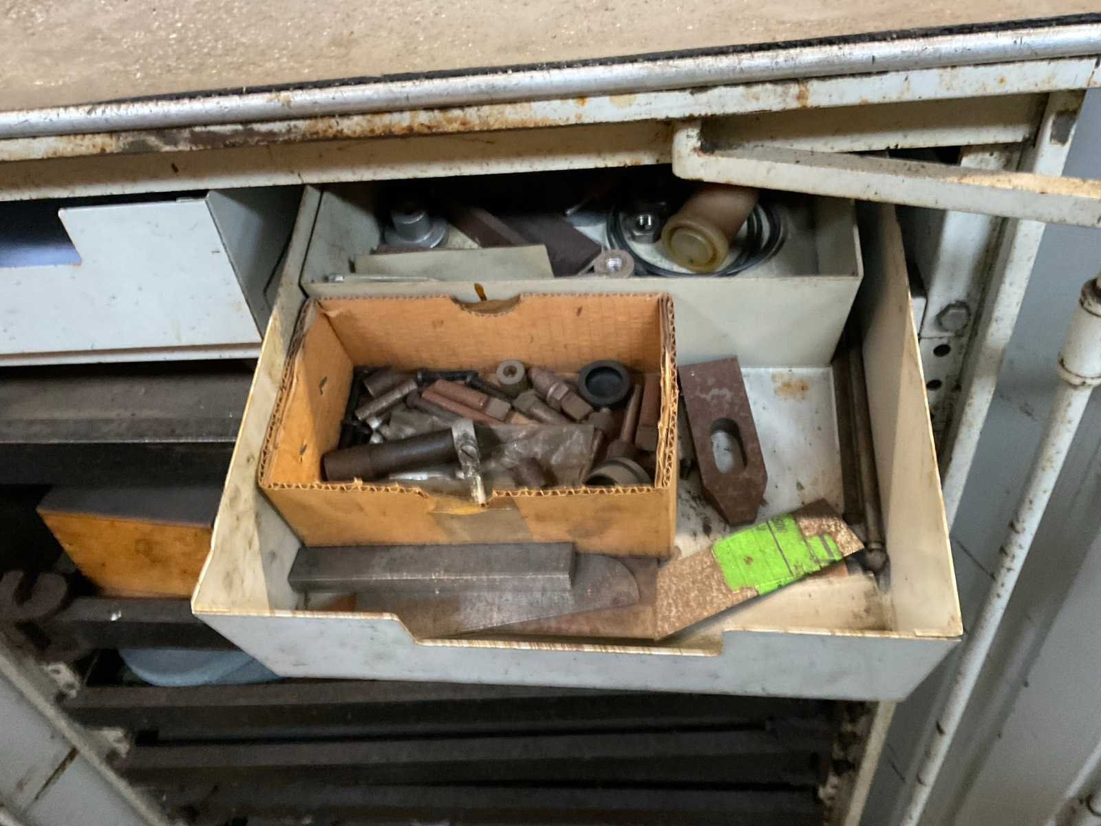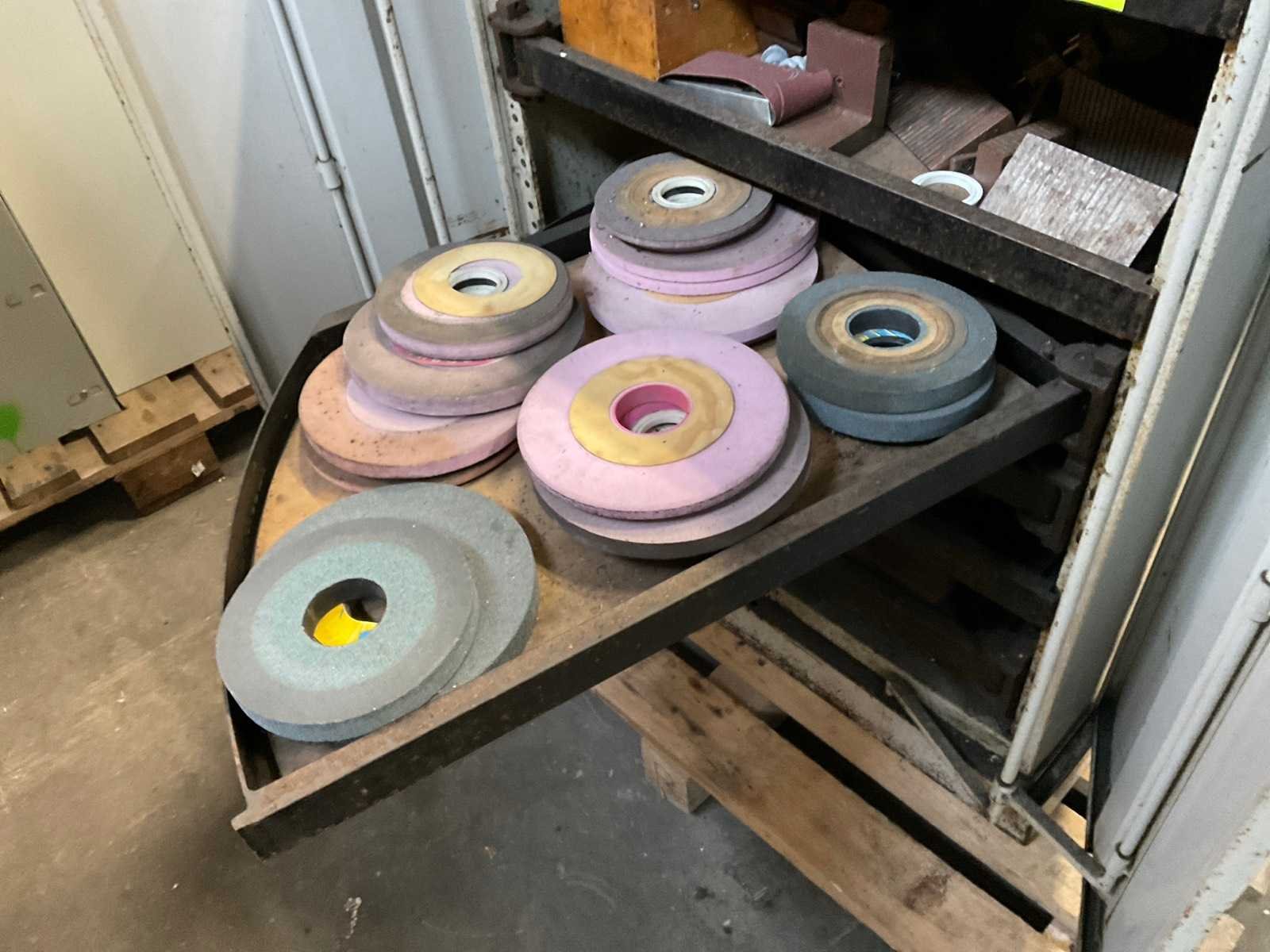 Inclusief: (1x) kast met toebehoren: slijpschijfhouders, aanspanbouten, opspanblokken, slijpschijven in diverse soorten en maten. Merk: Jung Type: HF50-180B Slijpbereik: 500mm Tafel afmeting b: 180mm Slijpsteen Ø: 180mm Slijpsteen dikte: 20mm Snelheid van n =: 2800rpm Magnetische opspantafel afm.: 500mm Aansluiting: 400V Afmeting l: 1850mm Afmeting b: 1500mm Afmeting h: 1700mm
