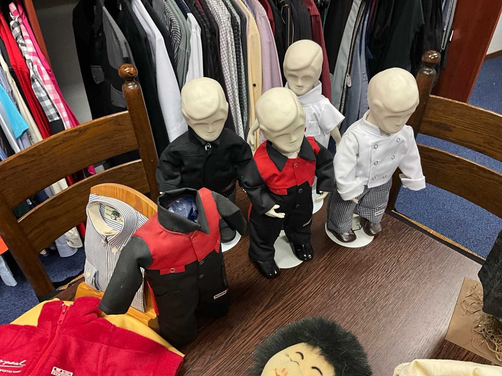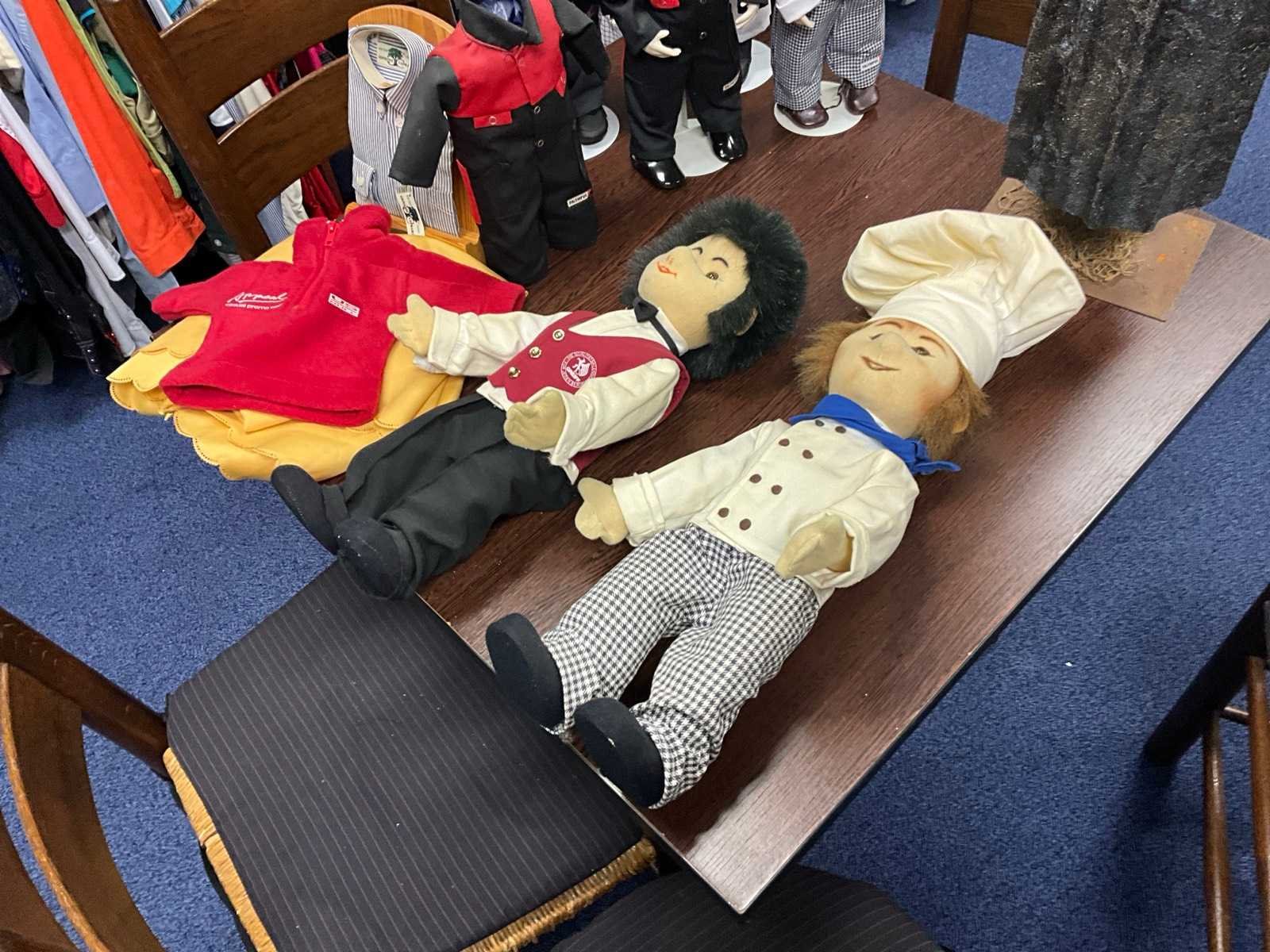 Tafel met 4x stoel, kruk, diverse knuffels, mini paspoppen met kleding, spiegel