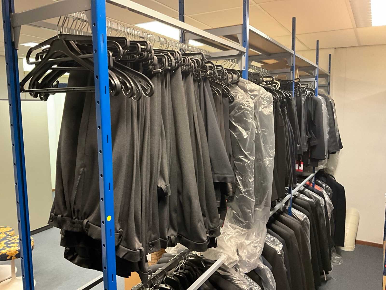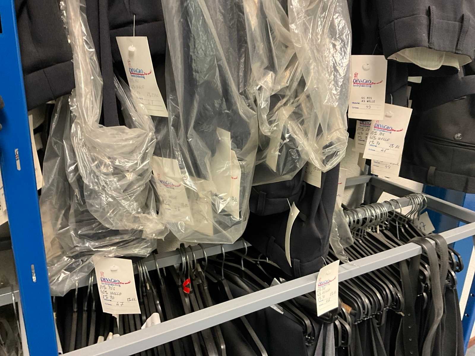 Bestaande uit circa: 235x Gilet, 190x Rok, 194x colbert, 702x pantalon. Enkele andere merken, diverse maten en kleuren, exclusief rekken en stellingen Merk: Devagro