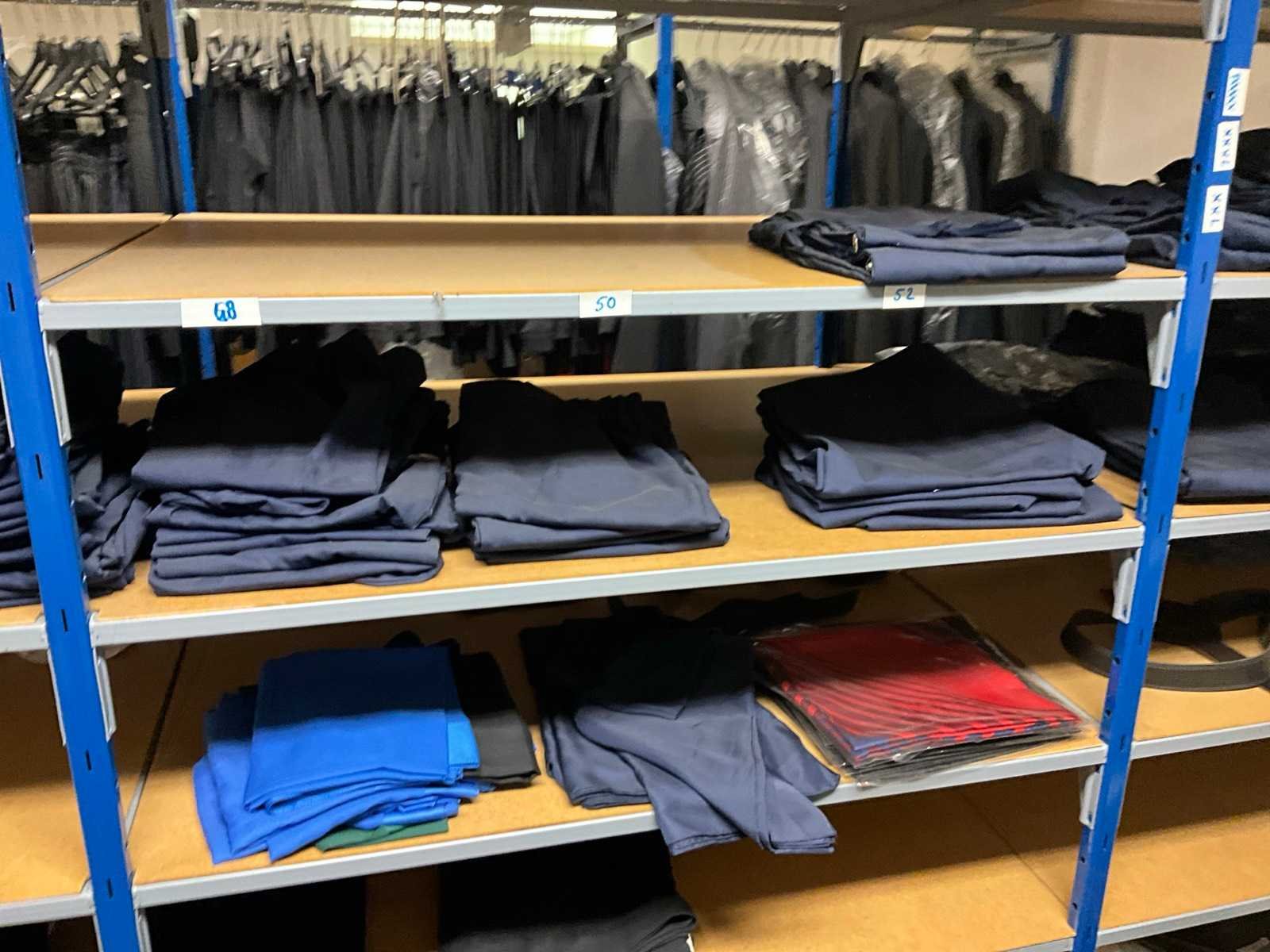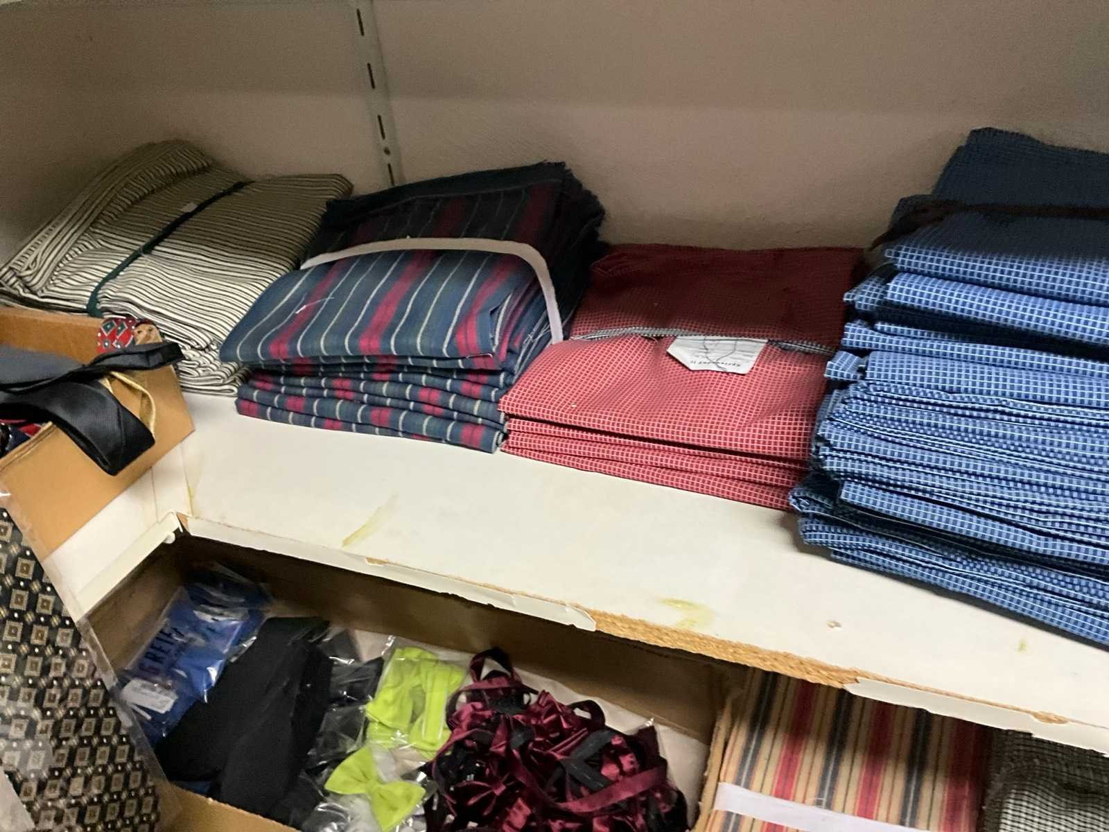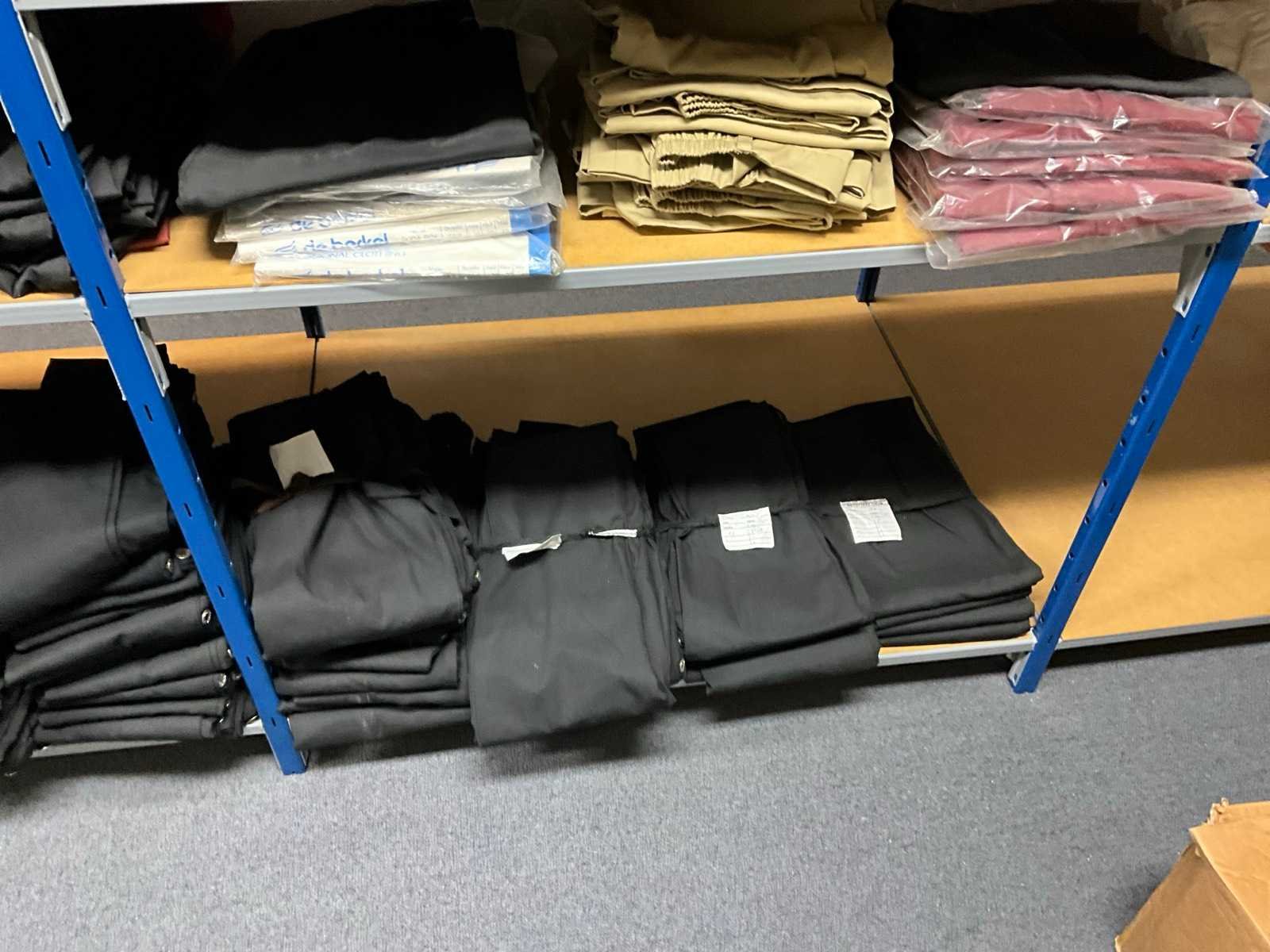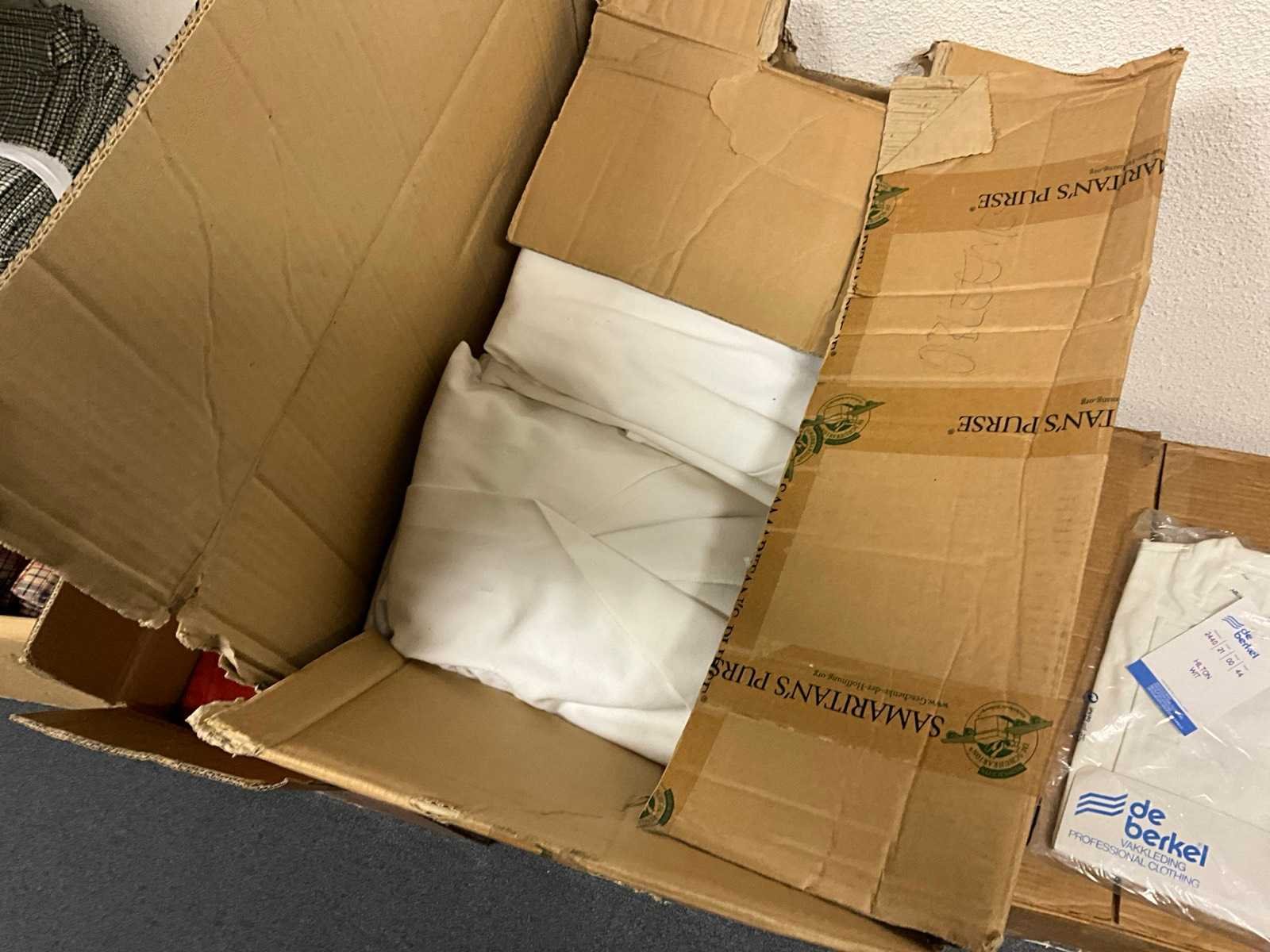 Bestaande uit circa: 65x bakkersbroek, 36x koksjas, 20x hilton, 110x foodjas, 336x werkbroek, 275x sloof en 150x stropdas/strik. Enkele andere merken, diverse maten en kleuren, exclusief stellingen Merk: Devagro