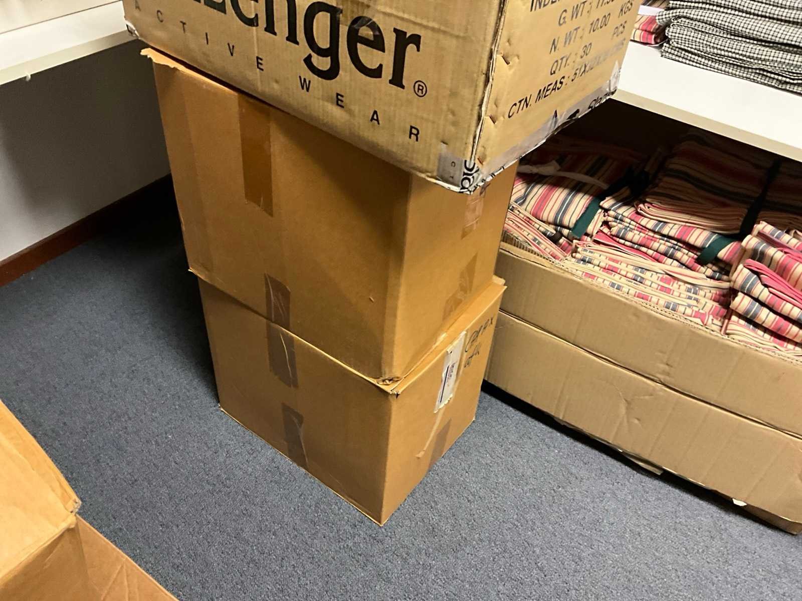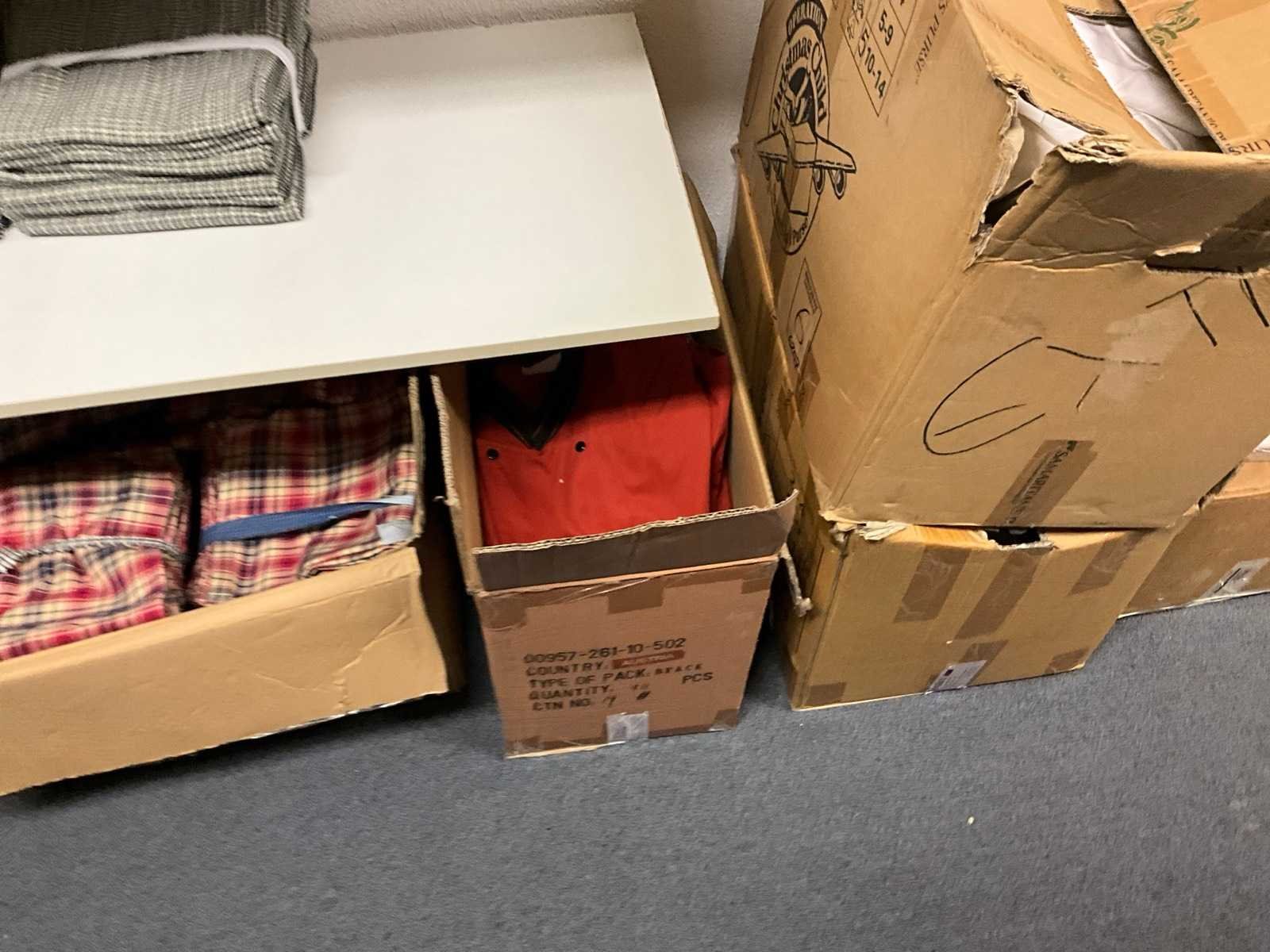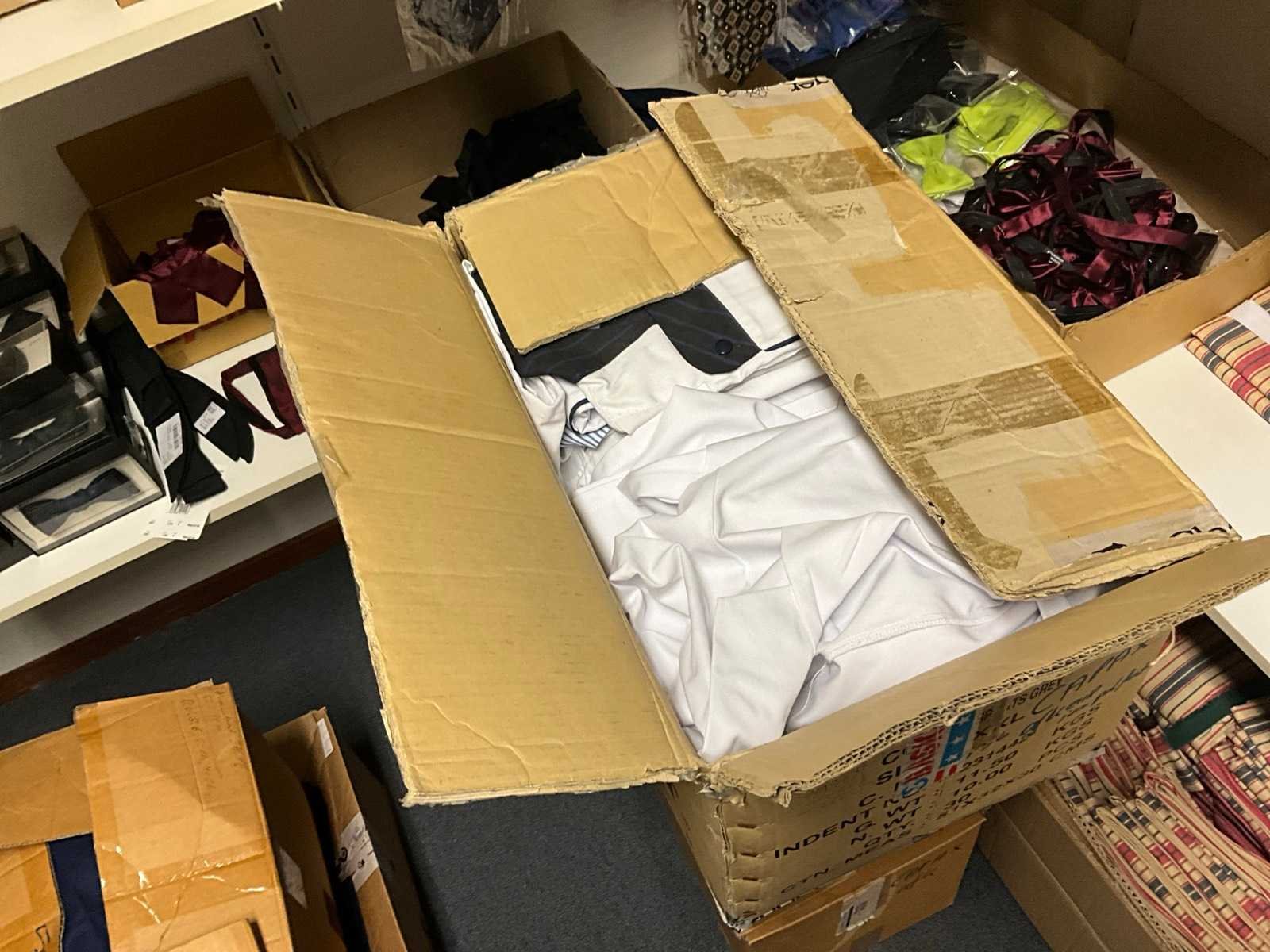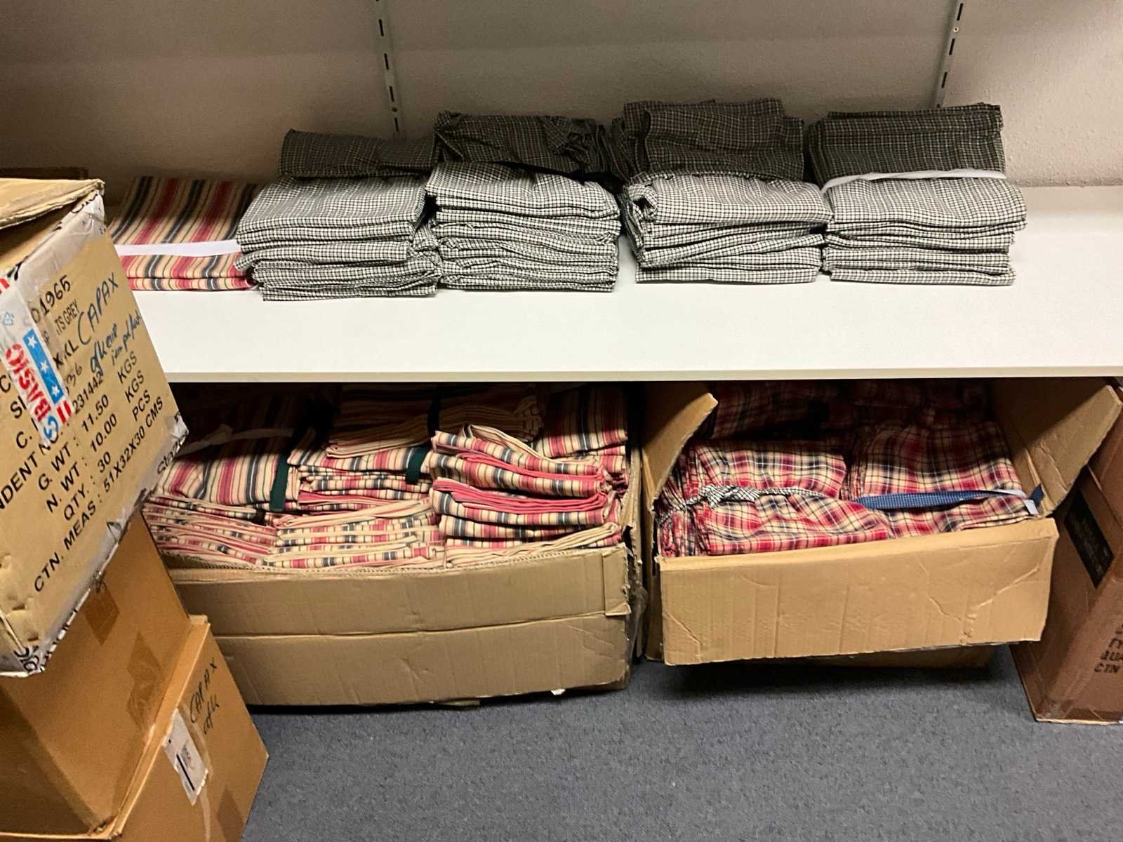 Bestaande uit circa: 65x bakkersbroek, 36x koksjas, 20x hilton, 110x foodjas, 336x werkbroek, 275x sloof en 150x stropdas/strik. Enkele andere merken, diverse maten en kleuren, exclusief stellingen Merk: Devagro
