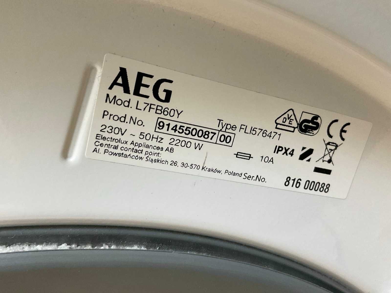 Merk: AEG Model: L7FB60Y Lavamat 7000 Spanning: 230V Vermogen: 2200W Serienummer: 816 00088