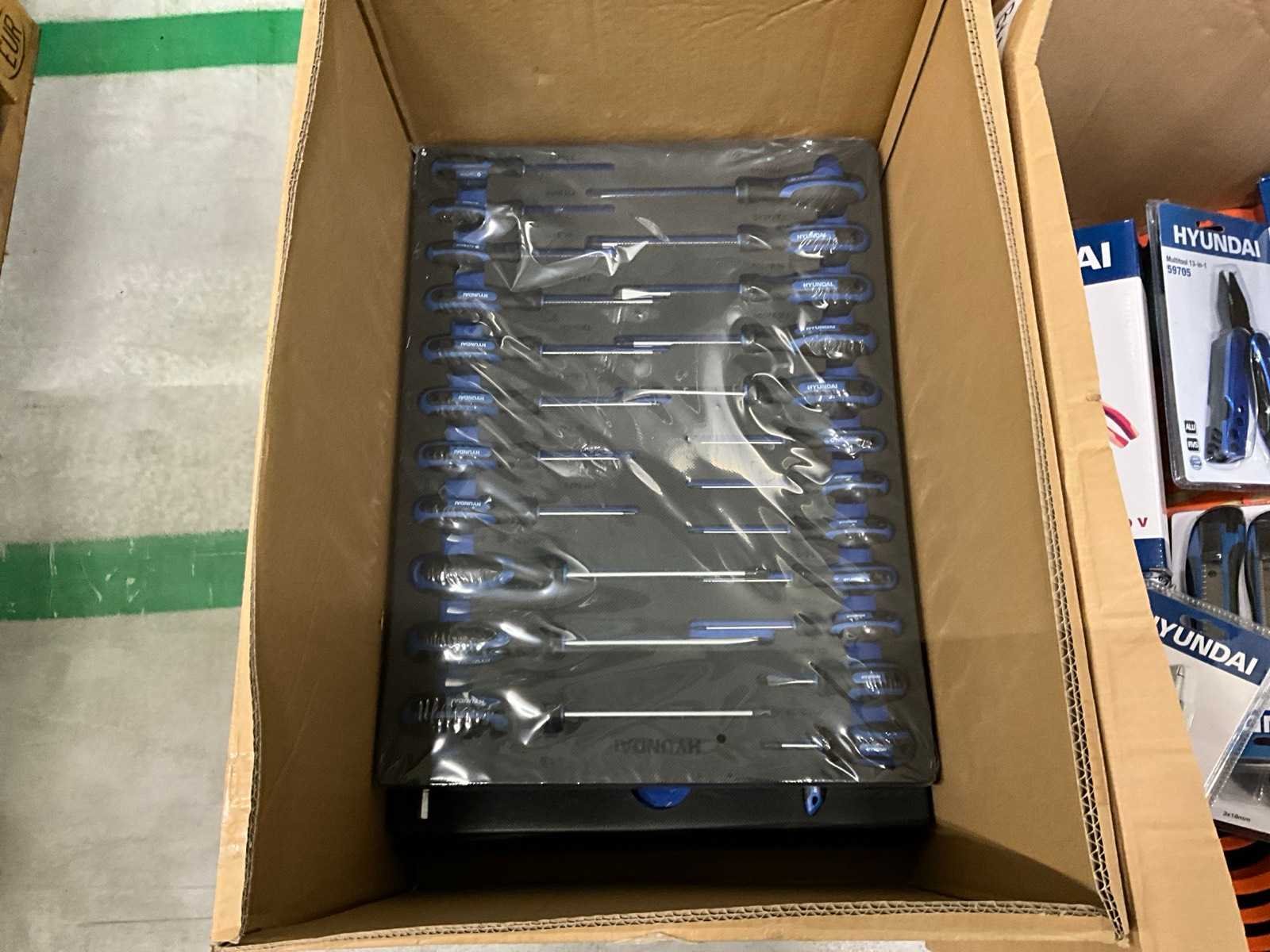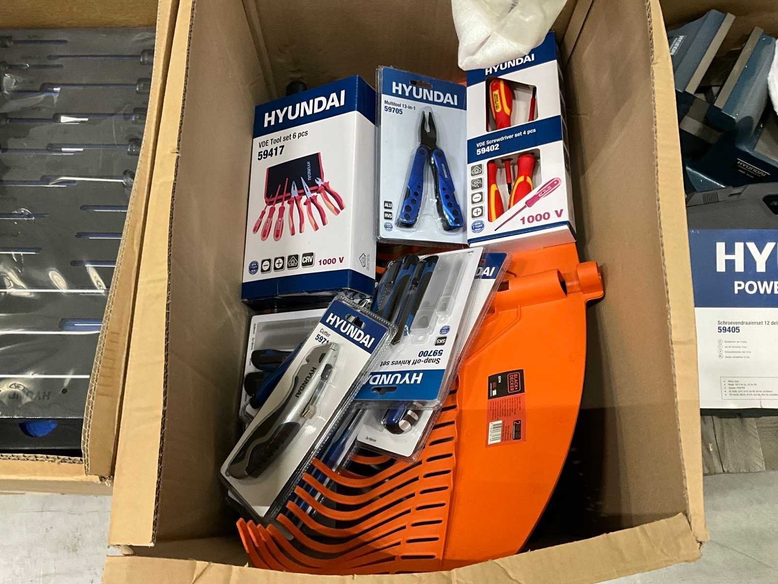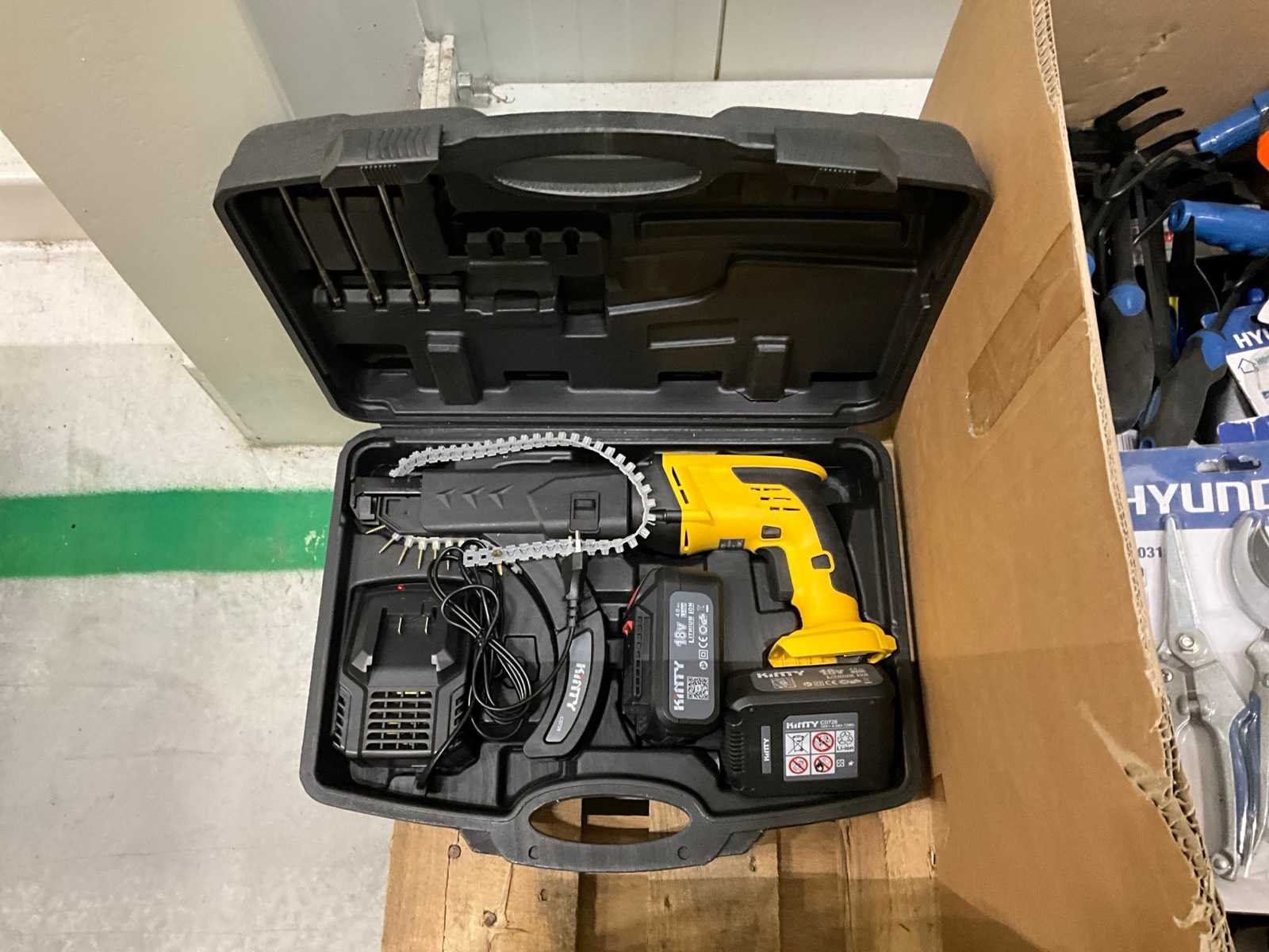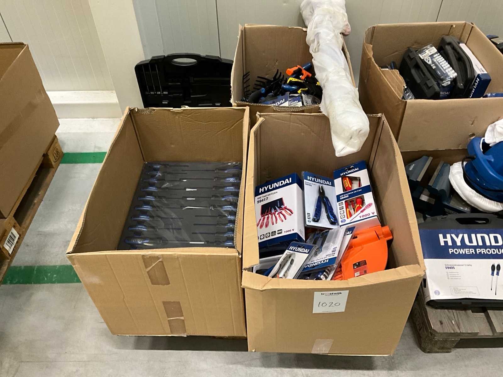 Bestaande uit: Op 1 pallet 1e: Inleglades gereedschapswagen met inhoud 2e: Harkjes 3e: Snoeischaren 4e: Bloemenschaar 5e: Accu schroefautomaat 6e: Etc