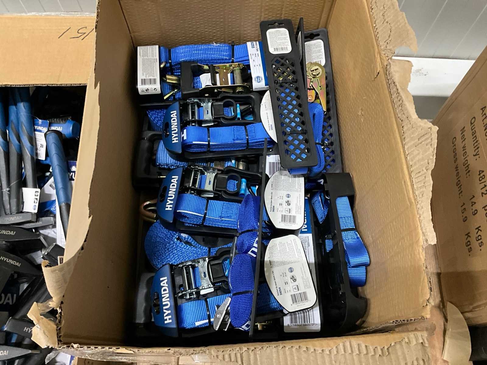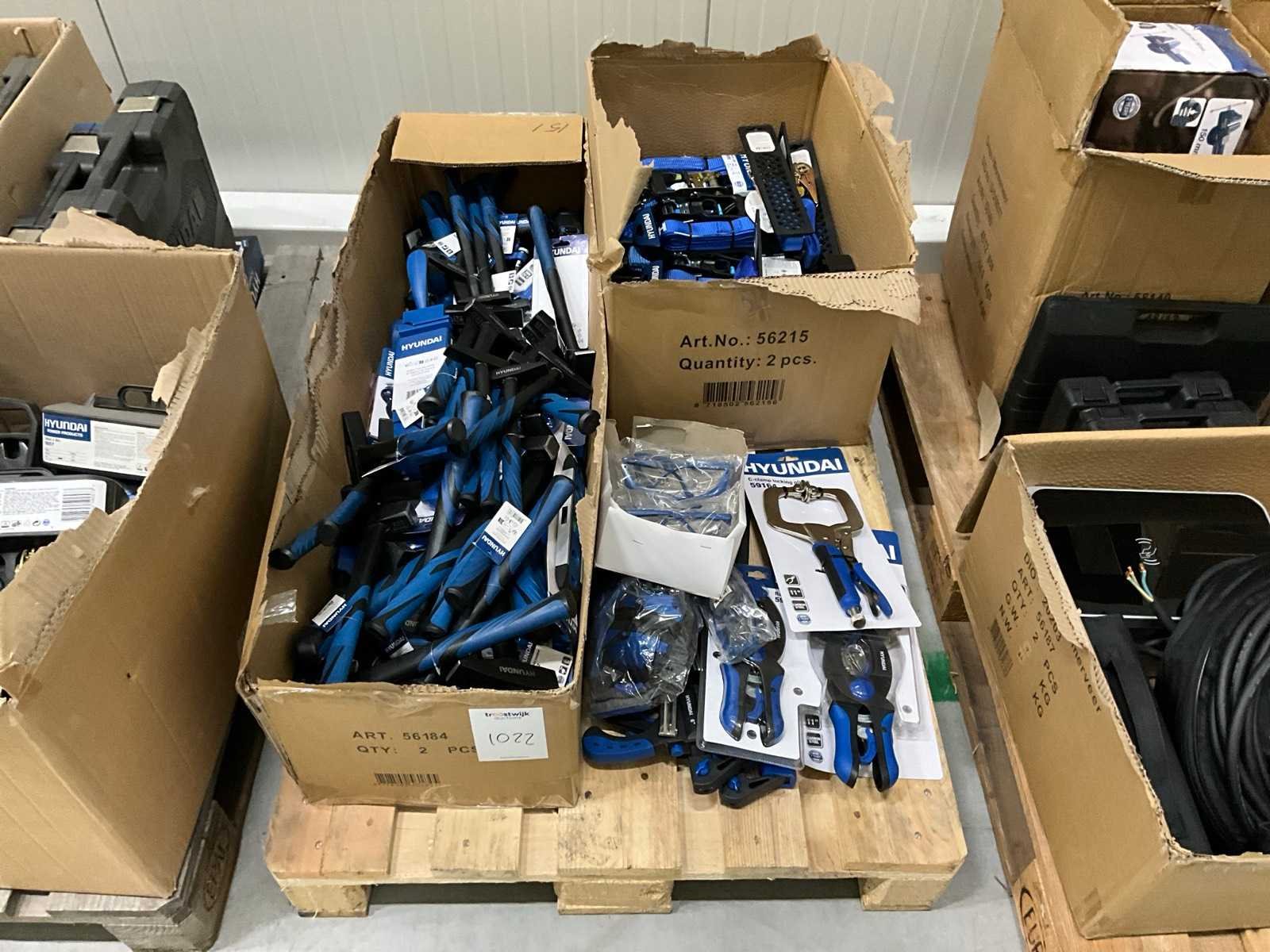 Bestaande uit: Op 1 pallet 1e: Spanbanden 2e: Hamers 3e: Veiligheidsmiddelen 4e: Etc