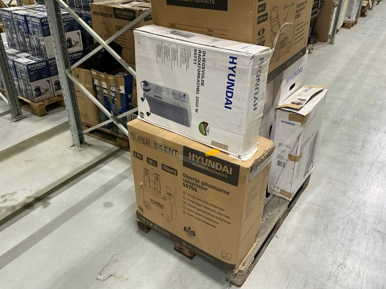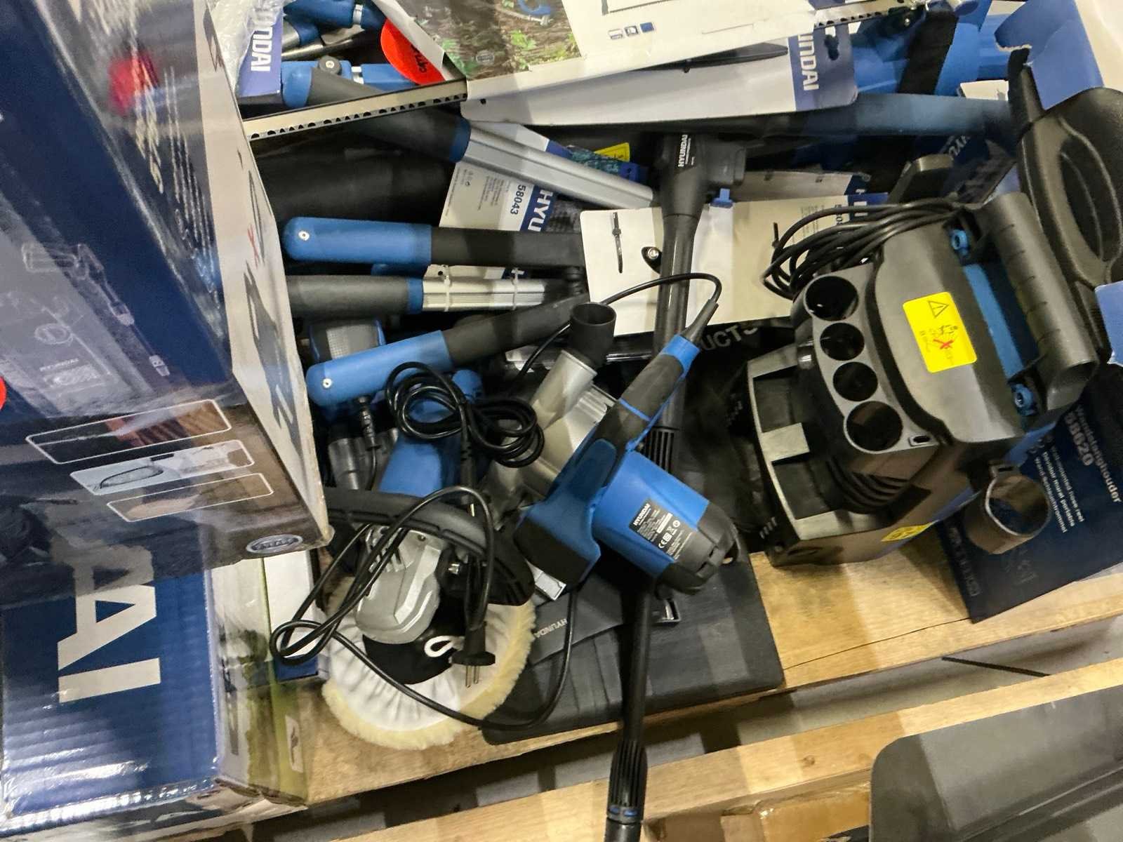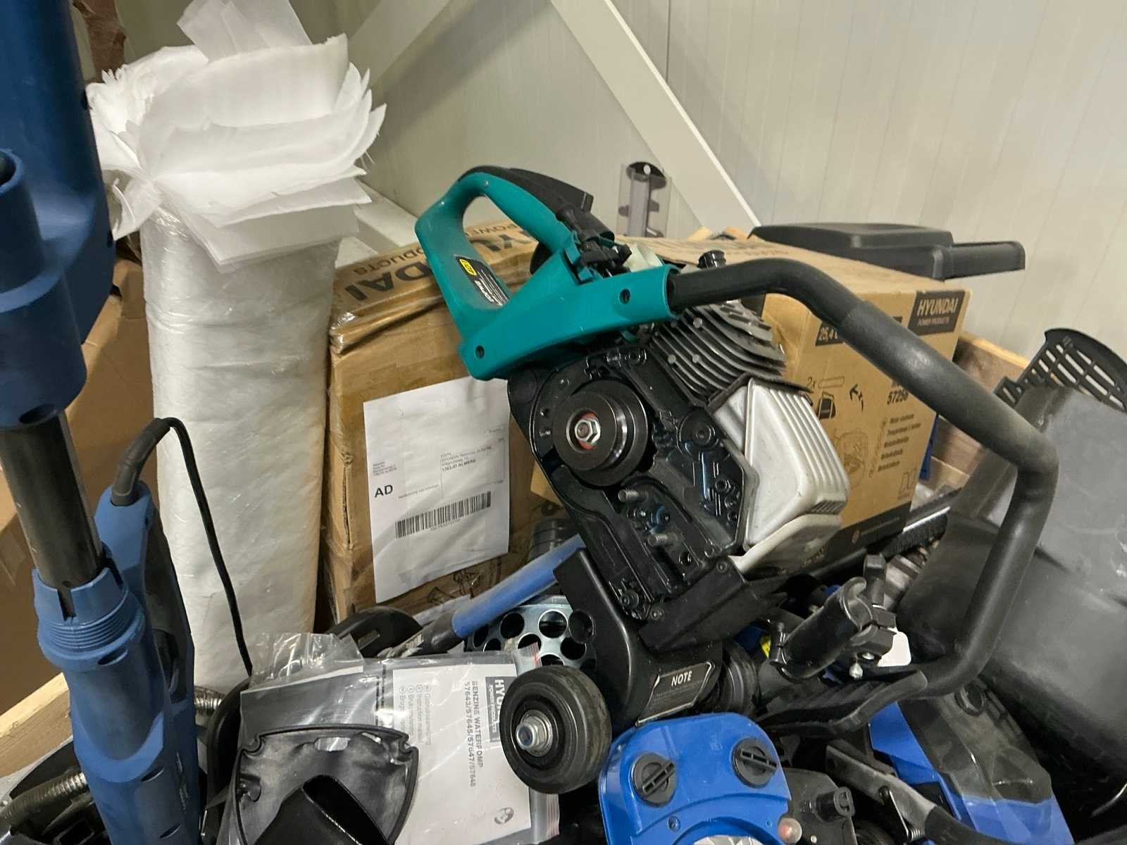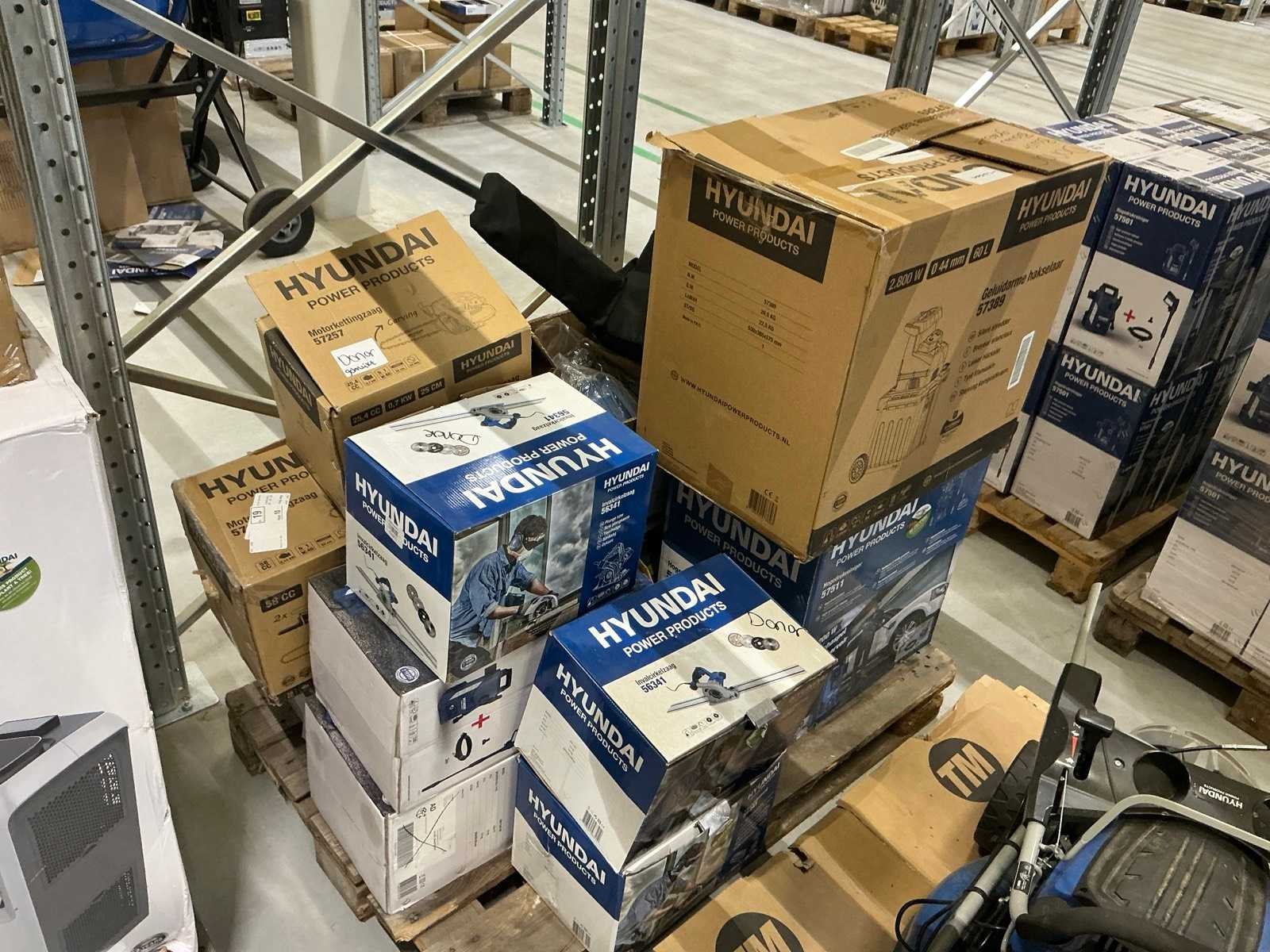 Alles op 30 pallets, diverse gereedschappen, tuin en parkmachines, airco/koeling, huishoudelijk, etc. Dit zijn ongecontroleerde retourgoederen, werking en compleetheid onbekend. Merk: Hyundai