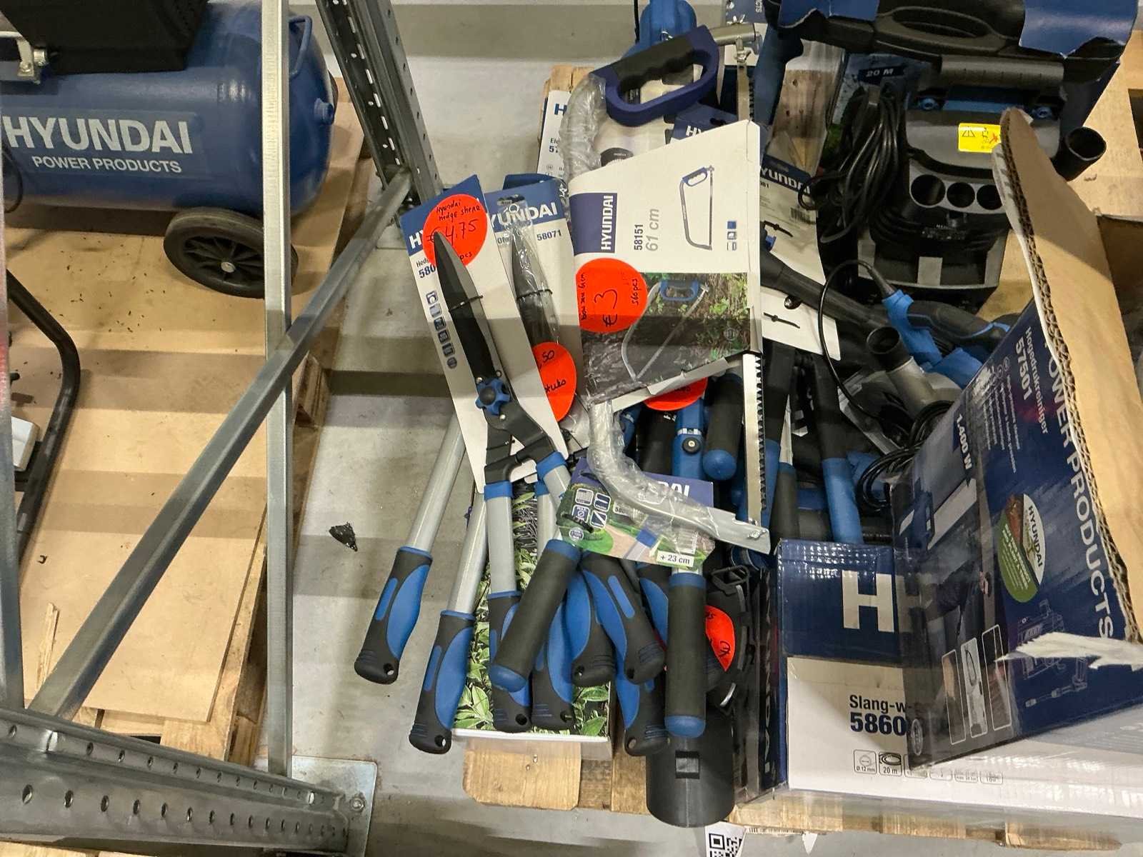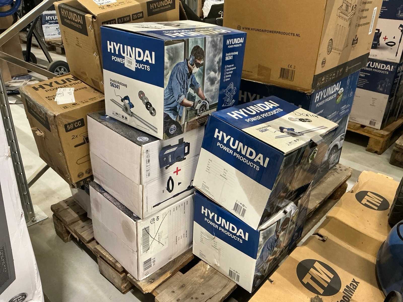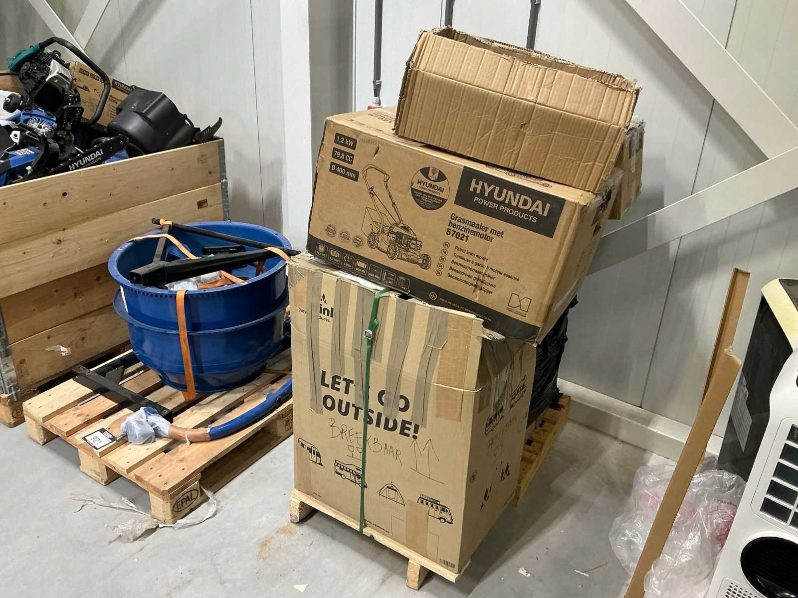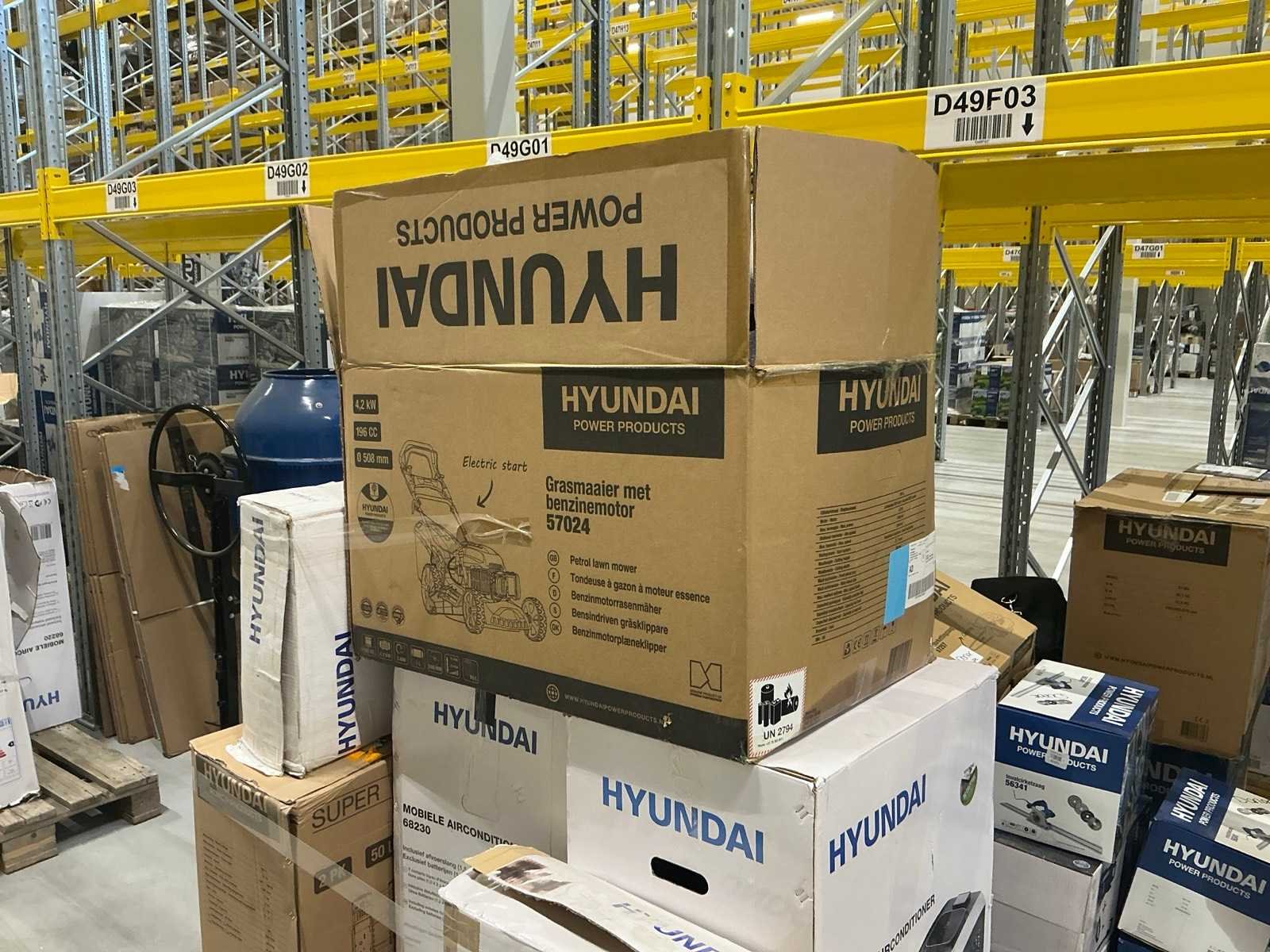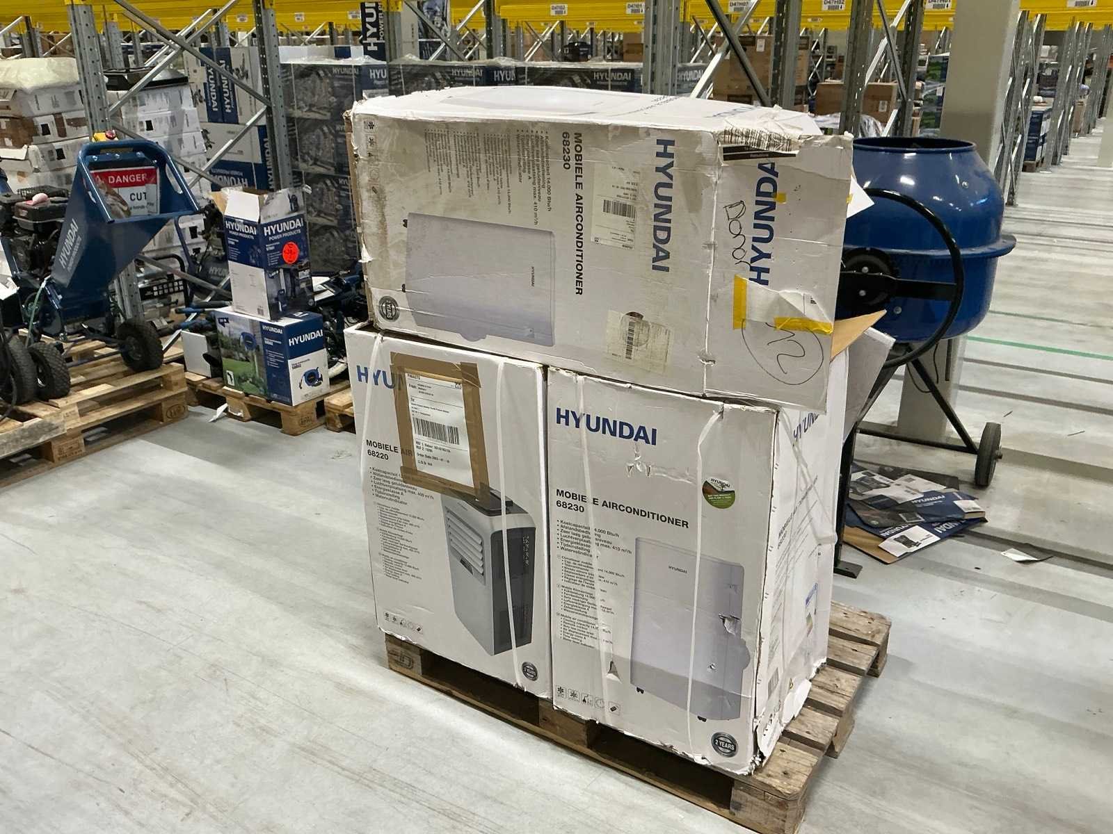 Alles op 30 pallets, diverse gereedschappen, tuin en parkmachines, airco/koeling, huishoudelijk, etc. Dit zijn ongecontroleerde retourgoederen, werking en compleetheid onbekend. Merk: Hyundai