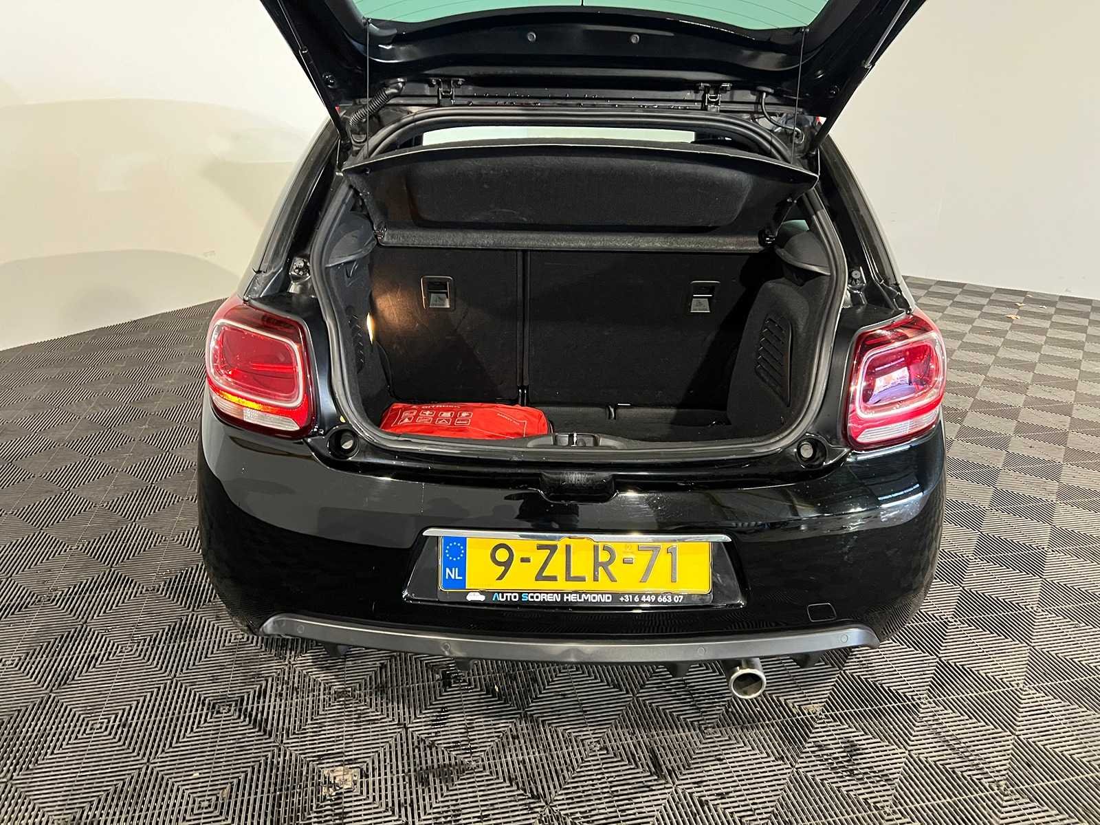 Kenteken: 9-ZLR-71 Merk: Citroen Model: DS3 Type: 1.2 PureT So Red Afgelezen kilometerstand: 99489km Cilinderinhoud: 1199cc Vermogen (kW): 81kW Brandstof: Benzine Chassisnummer: VF7SAHNZ6EW690254 NAP status: Logisch Datum eerste toelating: 2015-01-29 Datum eerste toelating (NL): 2015-01-29 APK vervaldatum: 2025-02-17 Vermogen (pk): 109hp Aantal zitplaatsen: 5 Maximaal trekgewicht ongeremd: 1150kg Maximaal trekgewicht geremd: 570kg Kleur: zwart Transmissie: H5 Stuurwiel: links Emissieklasse: 6 Aantal deuren: 2 Aantal sleutels: 2 Ledig gewicht: 1045kg Bruto BPM (NL): 2392€ Rest BPM: 370€ Aantal cilinders: 3 Carrosserie: Hatchback Onderhoudshistorie: gedeeltelijk aanwezig Carfax Link: https://was.carfax.eu/v0/api/ccdid/5100016408/svc/201/vinreg/9ZLR71/checksum/eyJhbGciOiJIUzI1NiIsInR5cCI6IkpXVCJ9.eyJleHAiOjE3NzUyOTQ3ODJ9.jRT3XVpcO9JgkwWyNpFhLSV4_6U-Jogl7y5VUP6Imxw