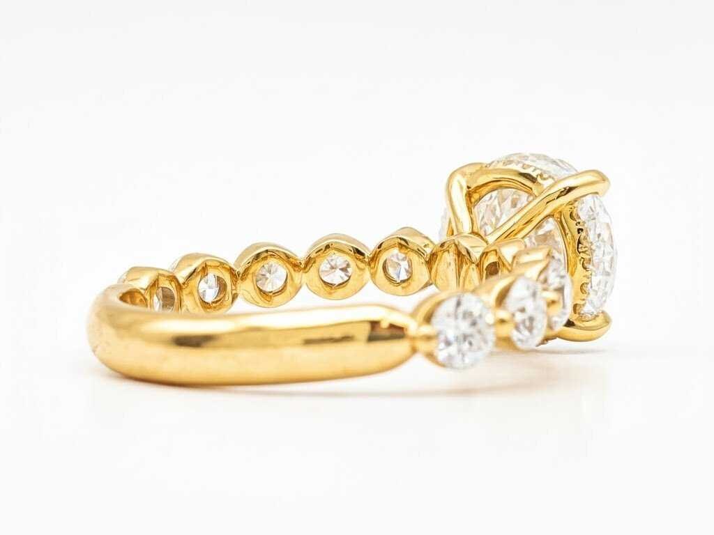 Ringmaat: 54 (EU) / 7 (VS) Metaal: 14 karaat geelgoud Gewicht: 3,02 gram Hoofdsteen: 2,05 ct. Snede: Round Brilliant Kleur: E Helderheid: VS1 IGI-certificaat: LG749537488 Zijstenen: Snede: Round Brilliant Hoeveelheid: 30 Ct.: 0,96 Bezichtiging op afspraak Materiaal: Geelgoud Ringmaat : 54 Certificaat: Ja Lage schatting: 4300€