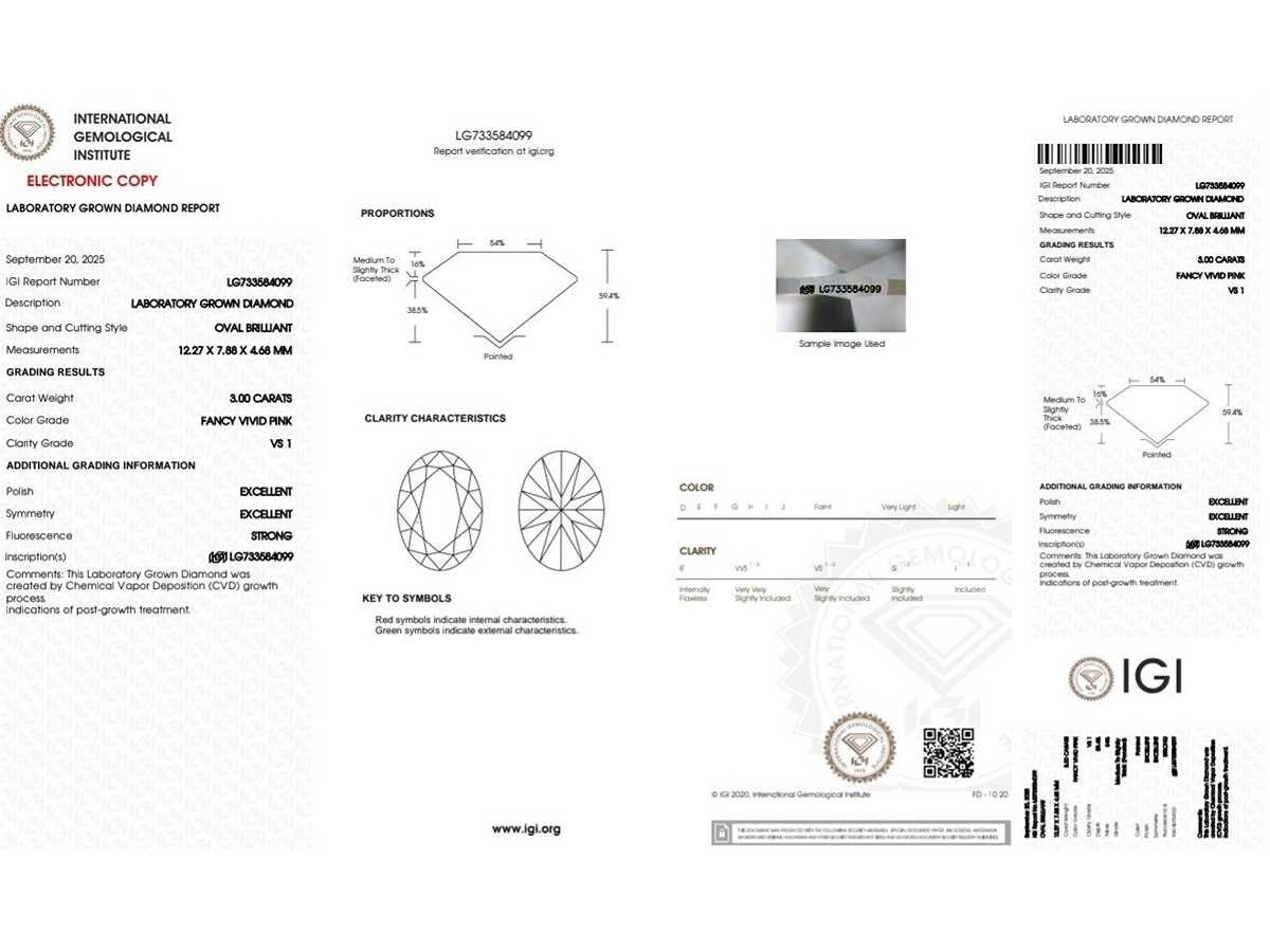 Exclusieve 18K witgouden ring Ringmaat - 55 EU / 15 IT / 7.25 US Rapportnummer IGI: LG733584099 Totaal Carat - 3,29 Ct. Vorm: Ovaal Brilliant Gewicht van de hoofdsteen: 3,00 Ct. Kleur: Fancy Vivid Pink Helderheid: VS1 Symmetrie: uitstekend Omringende stenen - 0,29 (19 stuks) Bezichtiging op afspraak Materiaal: Witgoud Ringmaat : 55 Certificaat: Ja Lage schatting: 7900€