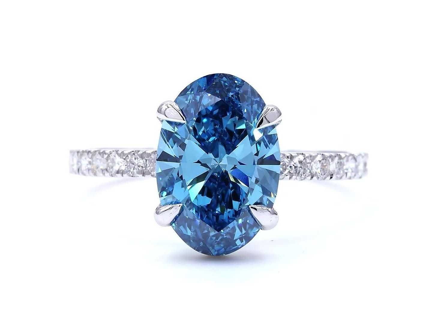 Exclusieve 18K witgouden ring Ringmaat - 56 EU / 16 IT / 7.5 US De ringmaat kan gratis worden aangepast. Rapportnummer IGI: LG722567988 Vorm: Ovaal Brilliant Cut Karaatgewicht van de hoofdsteen: 3,00 Kleur: Fancy levendig blauw Helderheid: VS1 Symmetrie: uitstekend Zijstenen - 0.28 Totaal karaat - 3,28 Bezichtiging op afspraak Materiaal: Witgoud Ringmaat : 56 Certificaat: Ja Lage schatting: 6700€