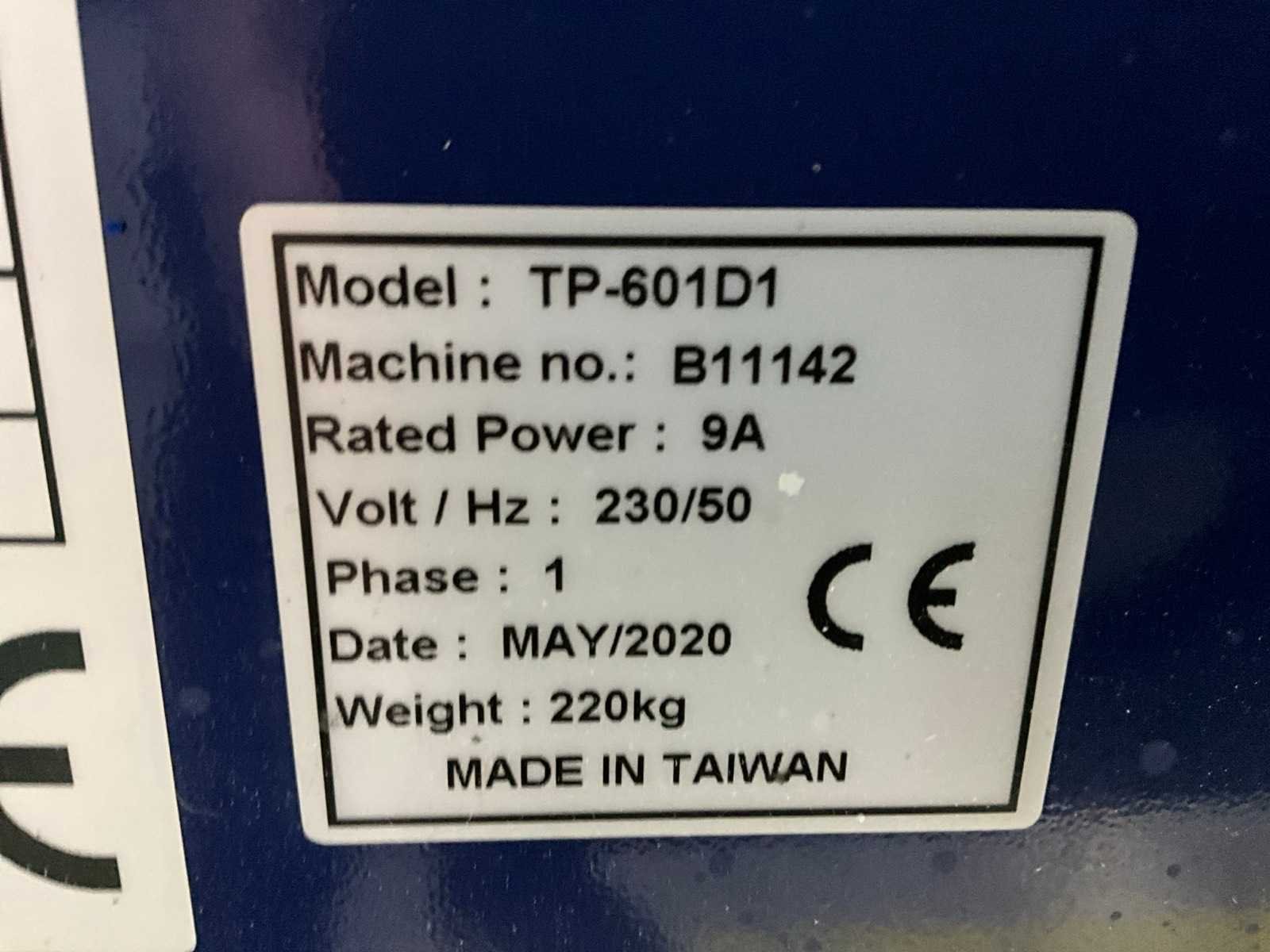 Boog formaat: 850x600mm, Voorzien van: voet bediening, Inclusief: (1x) extra rol omsnoeringsband Merk: Contimeta Type: TP-601D1 Bouwjaar: 2020 Serienummer: B11142 Aansluiting: 230V Eigen gewicht: 220kg Totale afmeting L: 650mm Totale afmeting Breedte: 1400mm Totale afmeting Hoogte: 1550mm
