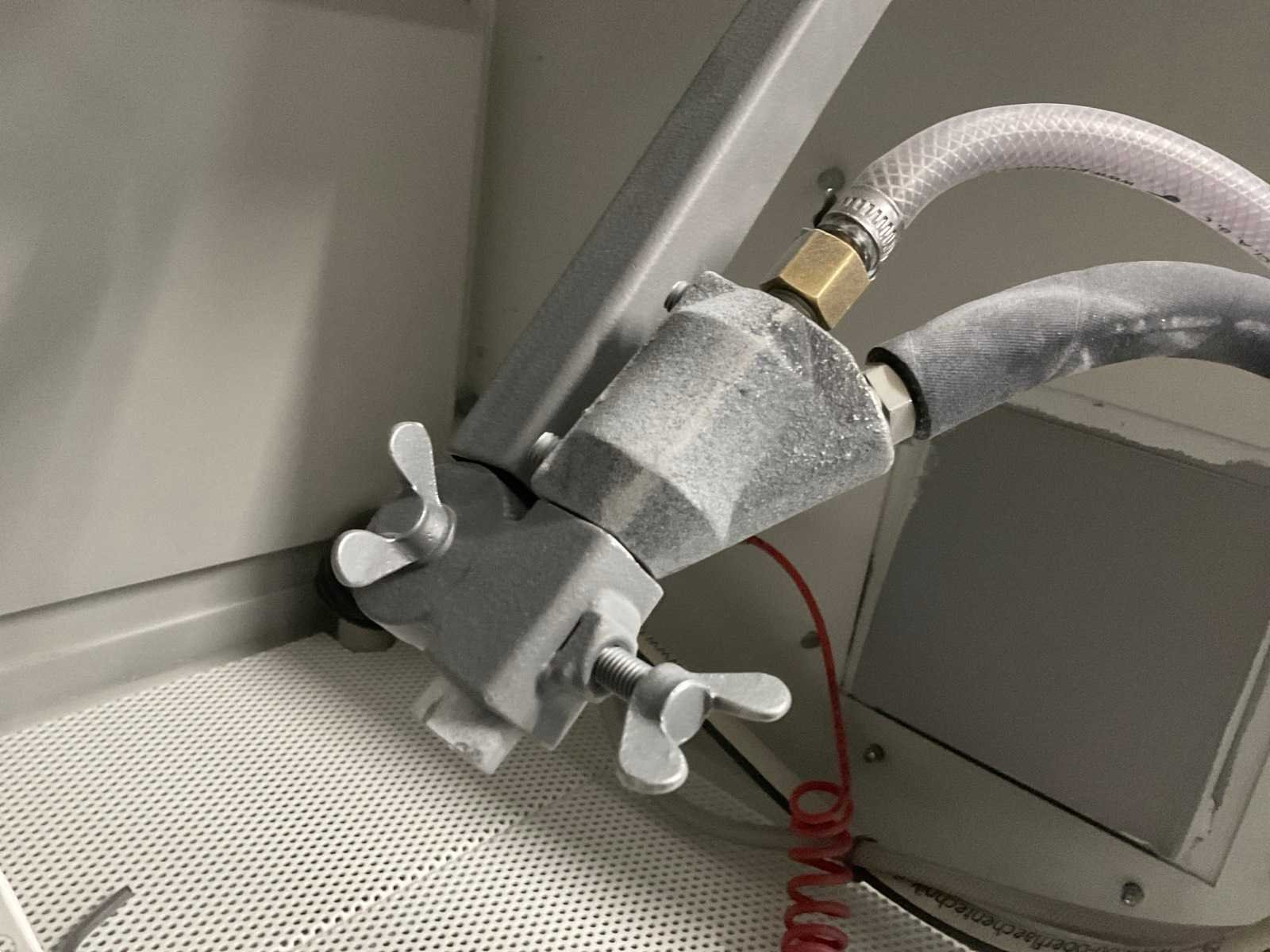 2740 toeren per minuut. Inclusief: (2x) zakken grit 100-200, a’ 25kg per zak. Merk: OTI Oberflachtechnik Type: IG-S 92 Bouwjaar: 2014 Serienummer: 0781-1192 Grit: true Kamer afmeting l: 900mm Kamer afmeting b: 850mm Kamer afmeting h: 740mm Motorvermogen (kW): 0.55kW Aansluiting: 400V Afmeting l: 1400mm Afmeting b: 1250mm Afmeting h: 1800mm