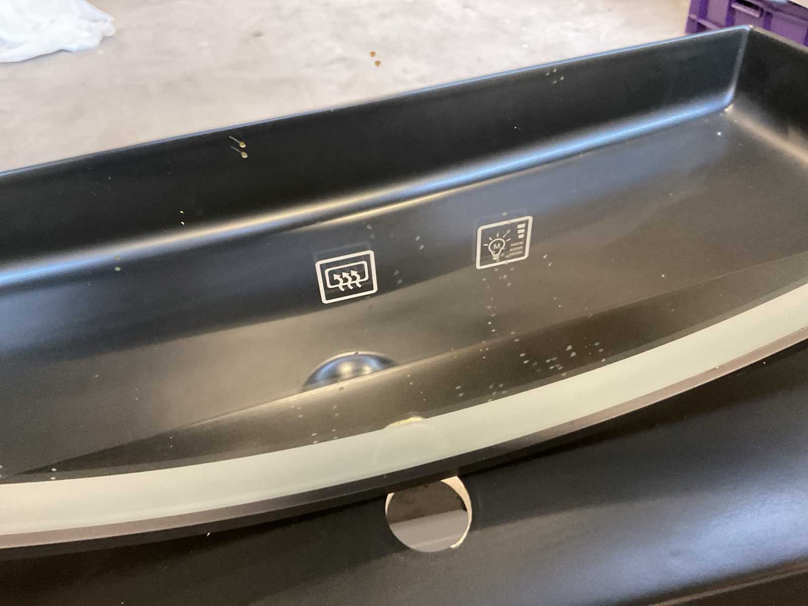 Bestaande uit: 1x wastafel met kraangat en overloop, matzwart, L100xB46cm, 1x onderkast met 1x soft-close lade en 1x schap en 1x ronde spiegel met verwarming + verlichting, D100xB3.5cm. Model: 100cm Hoogte: 63cm Lengte: 100cm Breedte: 46cm Spiegel met verlichting: Ja Onderkast: Ja Lades: 1 Softclose: true