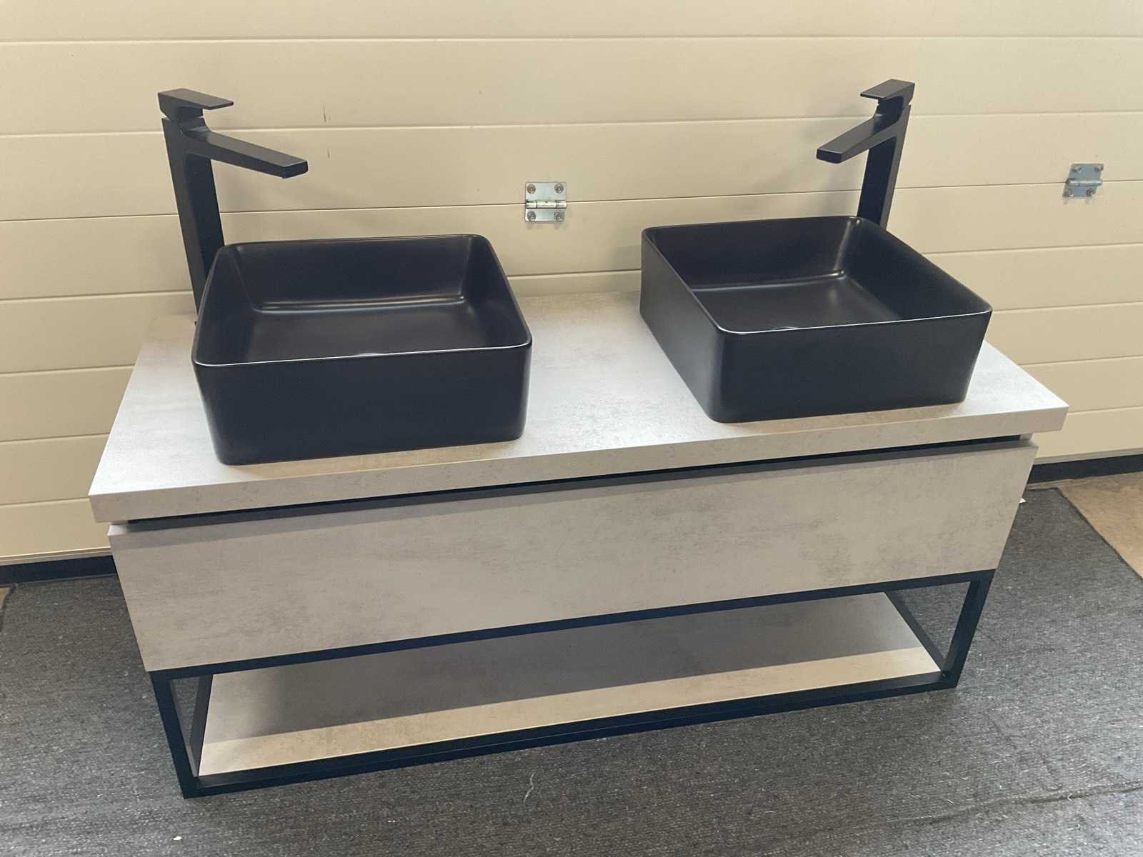 Bestaande uit: 2x opzet waskom, matzwart, 38x37x13cm, 1x onderkast met 1x soft-close lade en 1x schap, 1x spiegel met verlichting + verwarming, L120xB70xD3.5cm en 2x Hansgrohe eenhendel wastafelmengkraan, matzwart, model Metropol, type P-IX 7295/IO. Model: 120cm Hoogte: 68cm Lengte: 121cm Breedte: 46cm Spiegel met verlichting: Ja Onderkast: Ja Lades: 1 Softclose: true