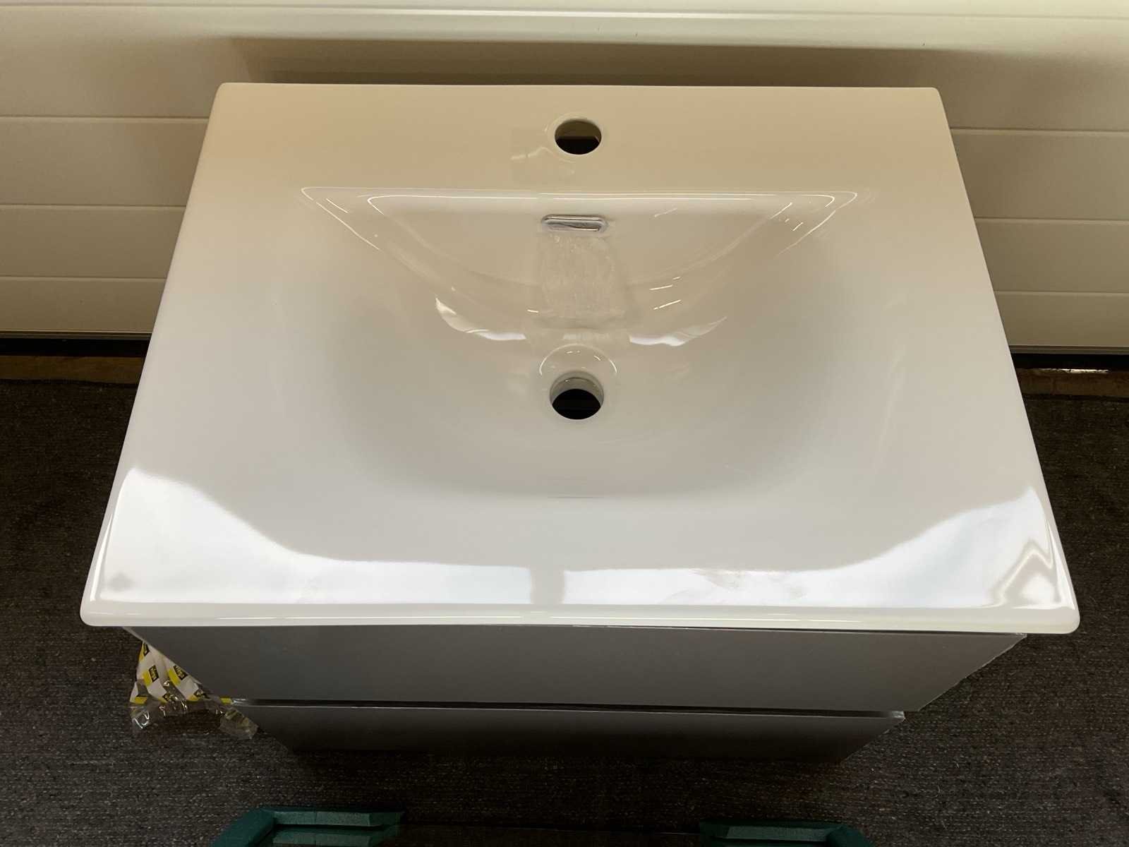 Bestaande uit: 1x wastafel met kraangat en overloop, wit, L61xB46.5cm, 1x onderkast met 2x soft-close lade, 1x hoge kast met 2x soft-close deur en glazen schappen, 1x spiegel met verlichting, L60xH70cm en 1x Viega sifon, type 120 337. Model: 60cm Hoogte: 52cm Lengte: 61cm Breedte: 47cm Spiegel met verlichting: Ja Onderkast: Ja Lades: 2 Softclose: true Zijkast: Ja Afmeting hangkast: H165xB35xD30cm
