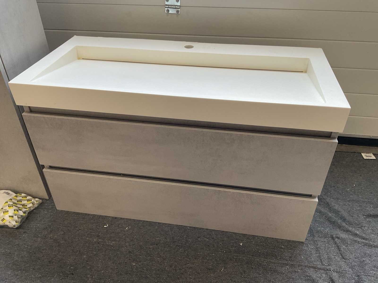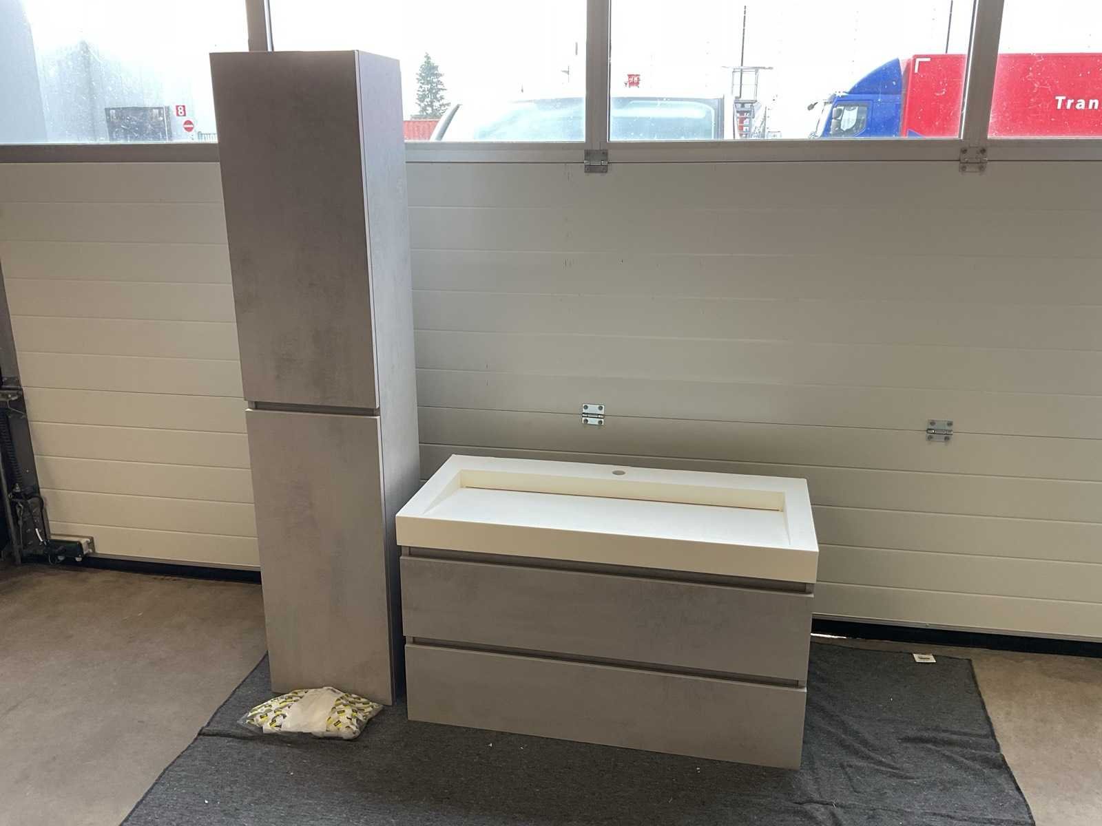 Bestaande uit: 1x wastafel met kraangat, mat, L100xB45.5cm, 1x onderkast met 2x soft-close lade, 1x spiegel met verlichting, L100xB70xD3.5cm en 1x hoge hangkast met 2x soft-close deur en glazen schappen, H165xB35xD29cm. Model: 100cm Hoogte: 58cm Lengte: 100cm Breedte: 46cm Spiegel met verlichting: Ja Onderkast: Ja Lades: 2 Softclose: true Zijkast: Ja Afmeting hangkast: H165xB35xD29cm